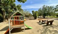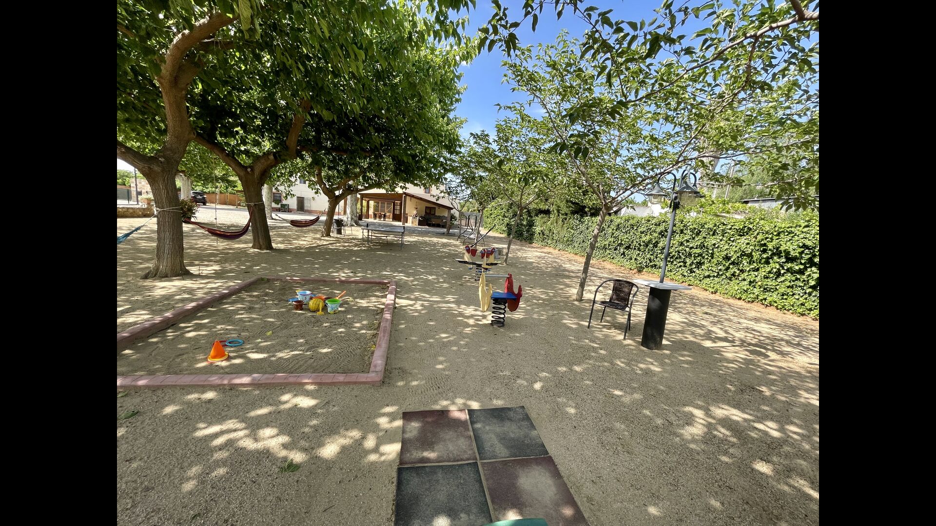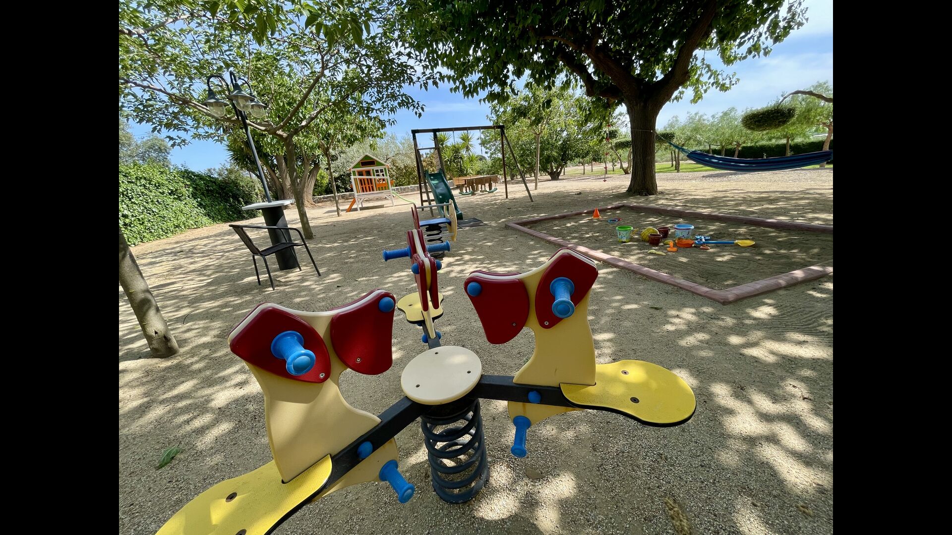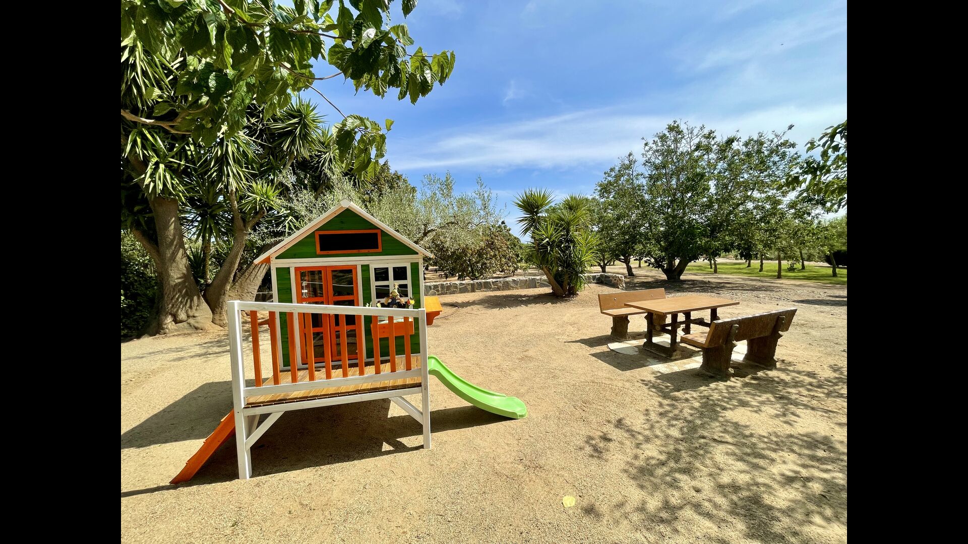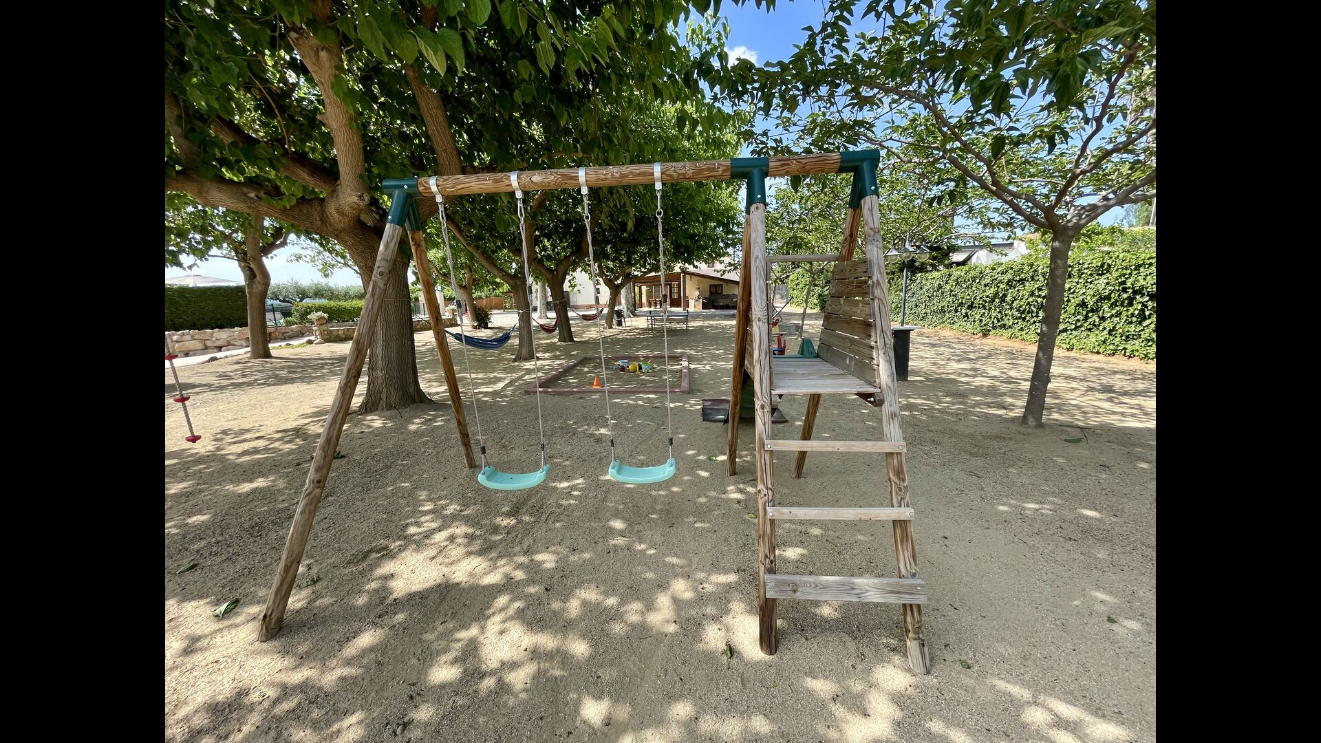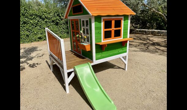Legepladsen dækker den sidste store del af haven, dedikeret til børnene. Nyd livet i en hængekøje, mens børnene bruger gynger, sandkasse eller legehuset med rutsjebane. Ejendommen er ideel, hvis du rejser med små børn.