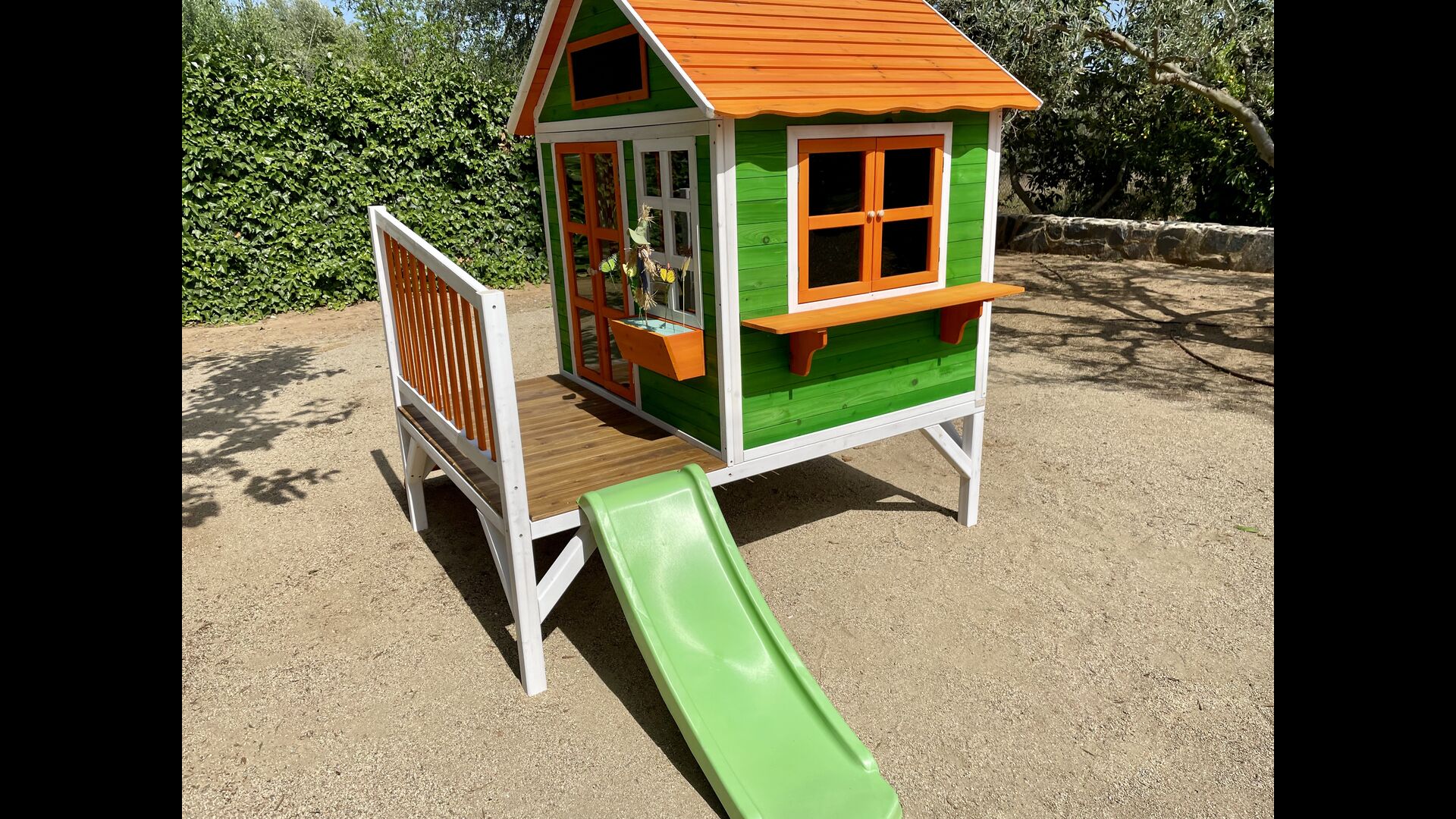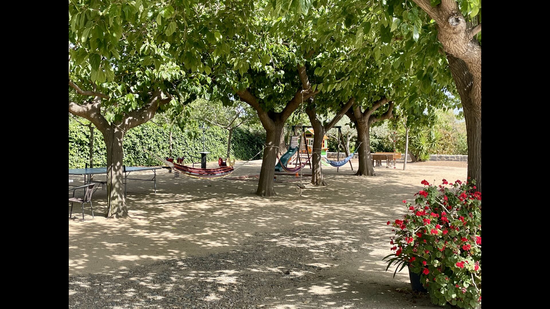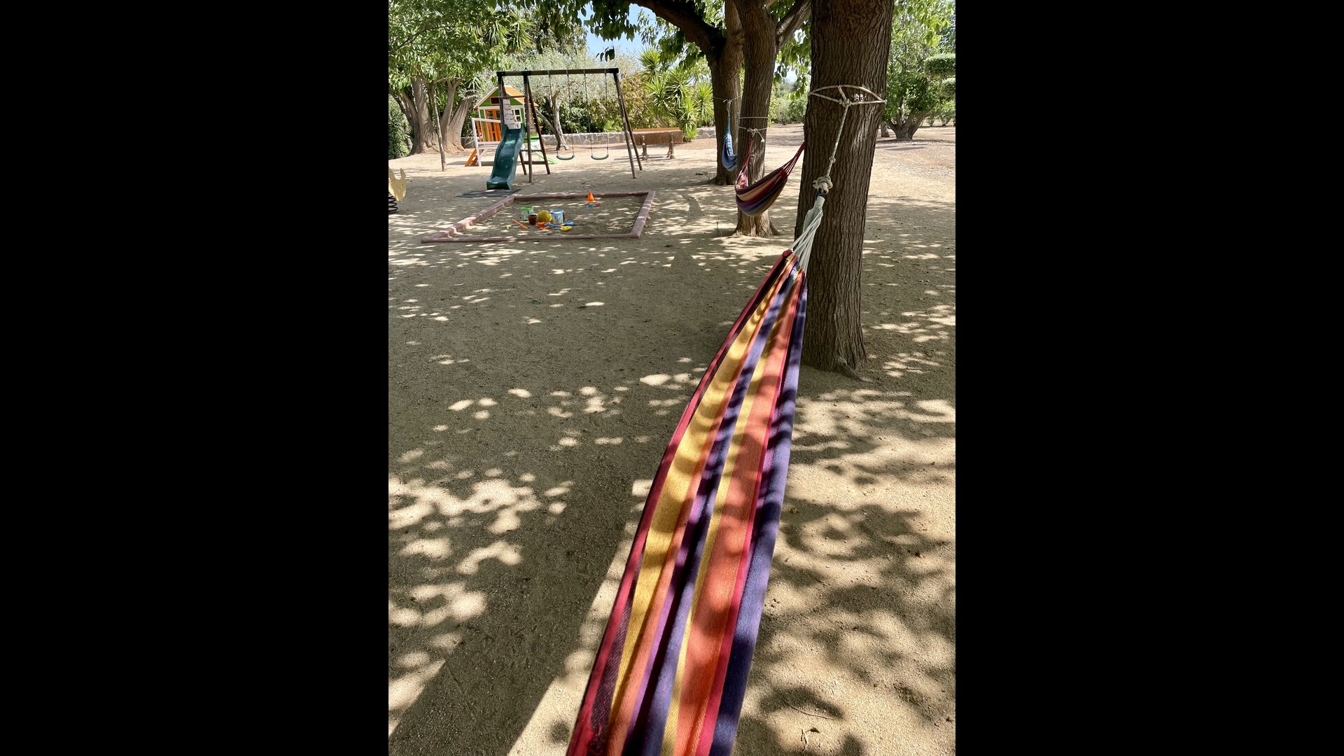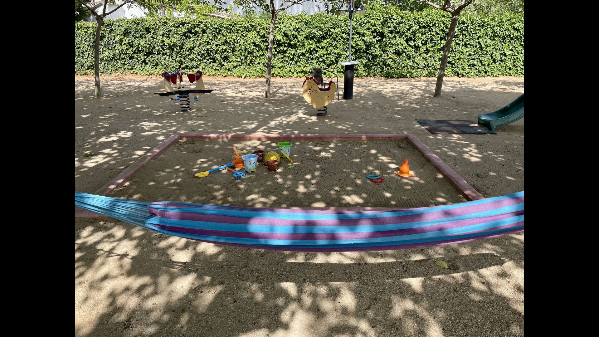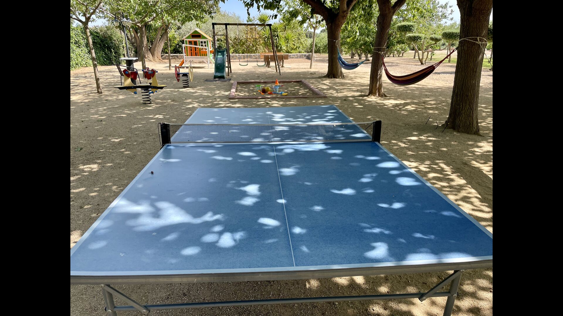 Legepladsen dækker den sidste store del af haven, dedikeret til børnene. Nyd livet i en hængekøje, mens børnene bruger gynger, sandkasse eller legehuset med rutsjebane. Ejendommen er ideel, hvis du rejser med små børn.