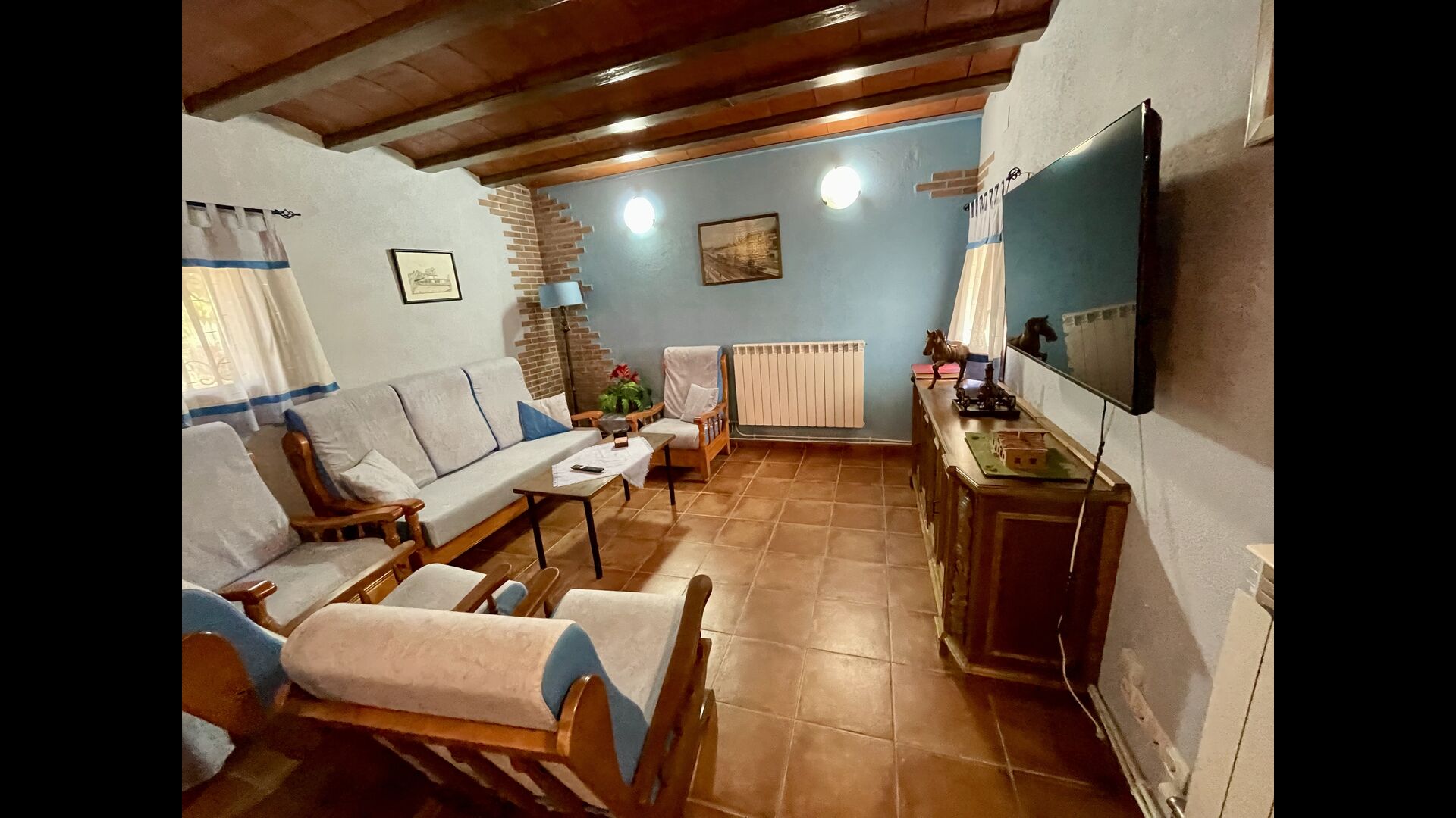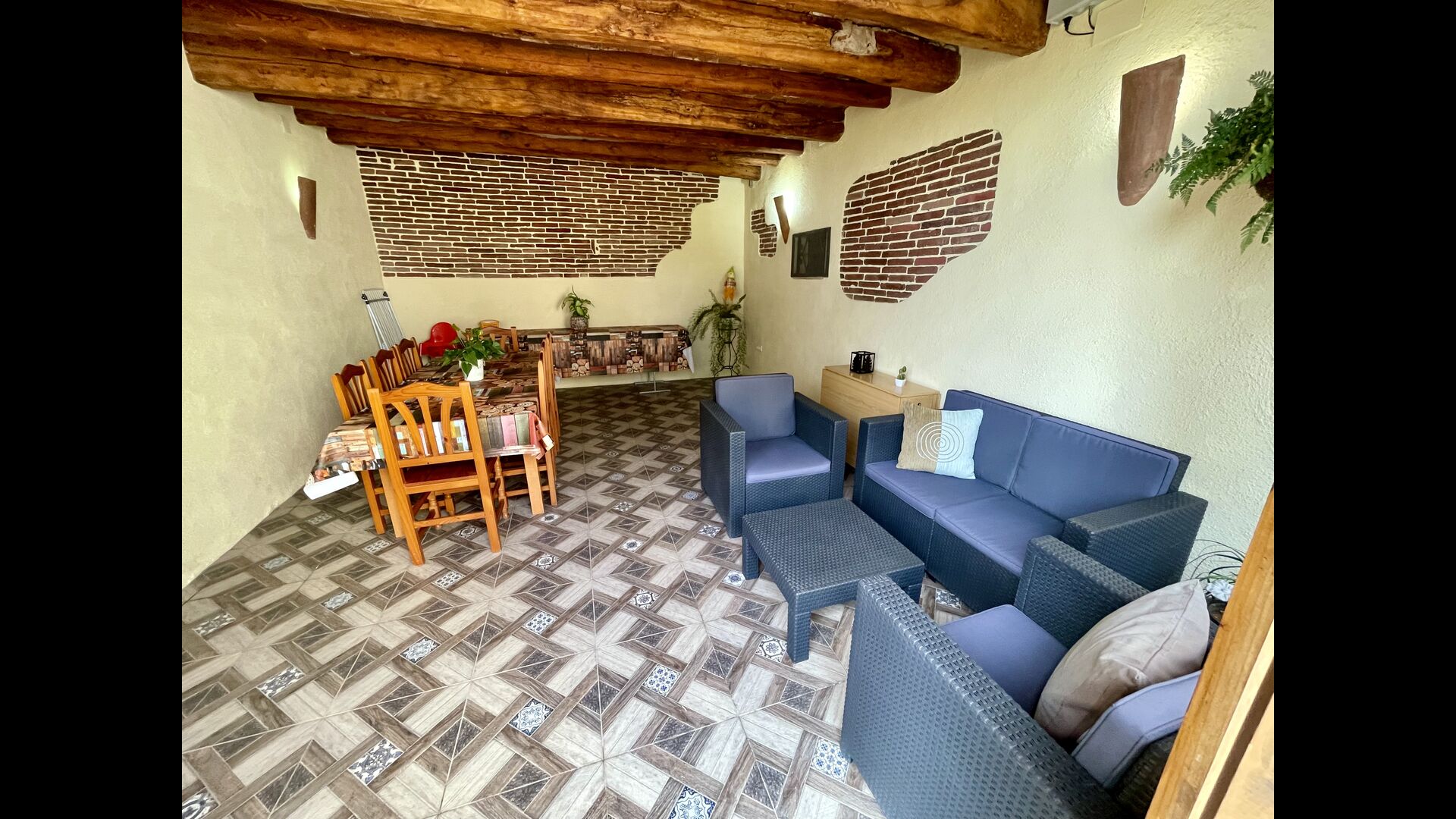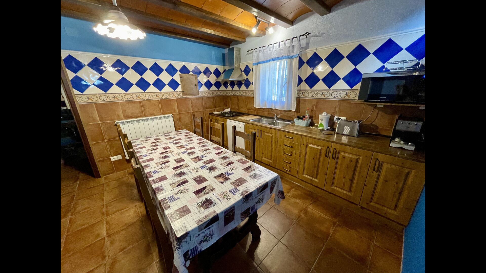 Indvendigt finder du et catalansk feriehus i klassisk stil, med de tykke vægge, der holder det friskt. Derudover er der Aircondition i alle rum til særligt varme dage.