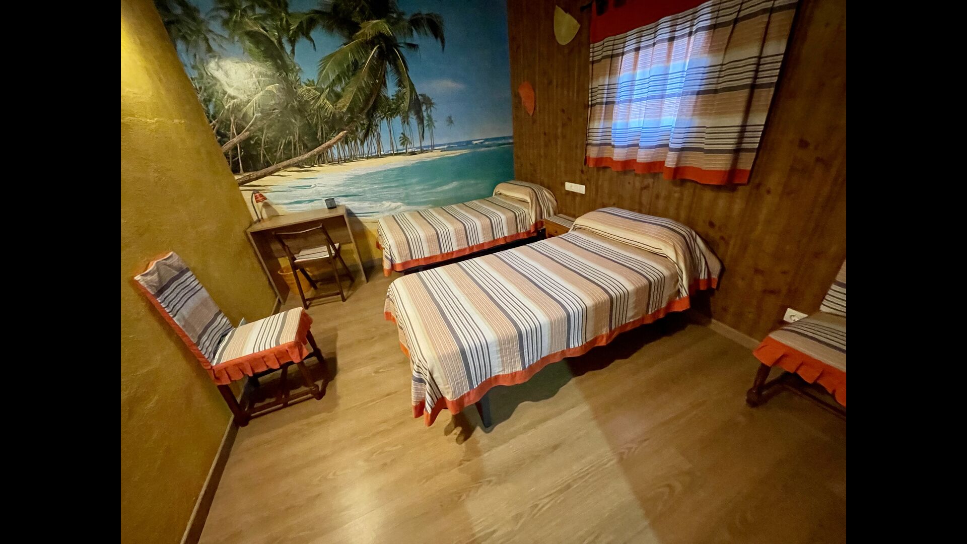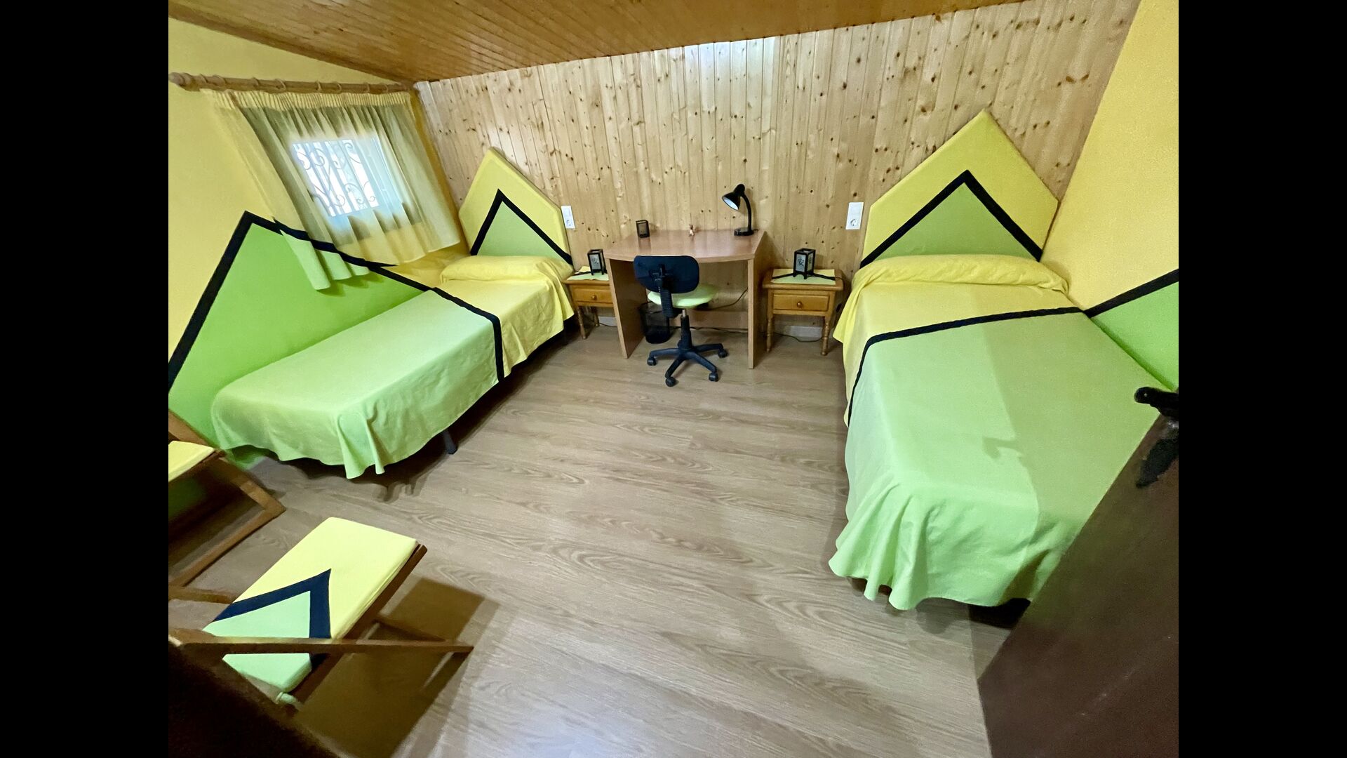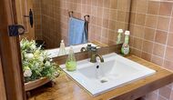 På første sal finder du de 4 soveværelser – To af dem har 1 dobbeltsenge og to andre har to enkeltsenge hver. Der er mulighed for at tilføje yderligere to enkeltsenge (mod tillæg). Desuden er husets 2. badeværelse på første sal.