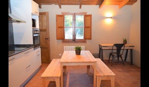 Det er svært at forestille sig et mere unikt feriehus; her bor man i et storslået slot på et bjerg - kun omgivet af andre bjerge, skove og fantastisk, uberørt natur. Fra det flotte feriehus har man 360-graders udsigt ud over alverdens dale og enestående landskaber; man kan således endda tage et kig mod den kystlige Costa Brava-strækning. Du finder ikke et hus, der egner sig bedre til et get-away fra byens larm og travlhed. Her skal du blot læne dig tilbage i liggestolen med en kold drink og nyde varmen og den friske bjergluft. Og dog, har husejeren tilskrevet huset sloganet In the middle of nowhere, connected to everywhere, hvilket er så sandt som sagt - fra dit helt privatliggende slot er der blot en halv time til Costa Brava-kysten og ca. 12 minutter til nærmeste landsby med supermarked, restaurant, etc.
