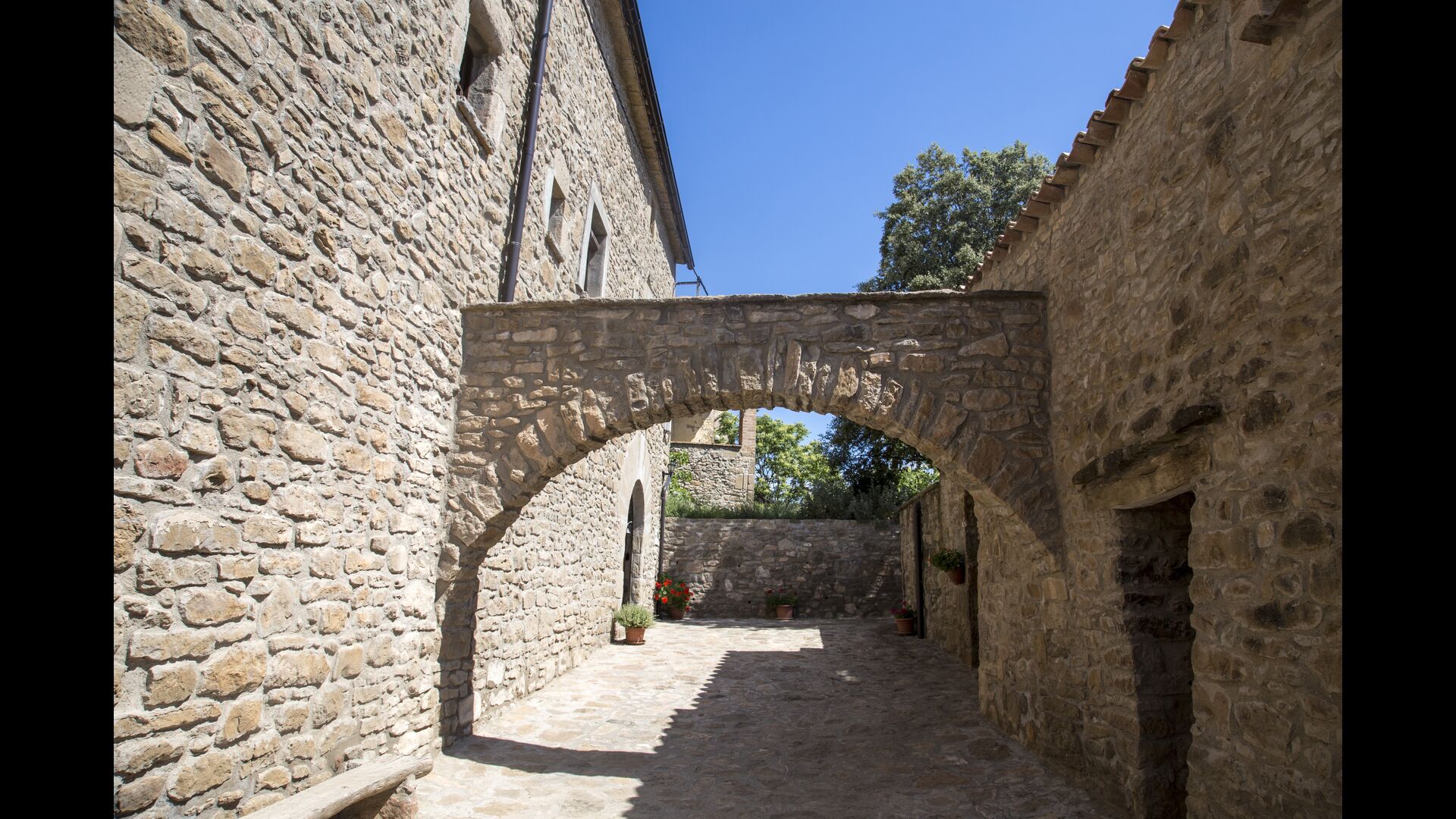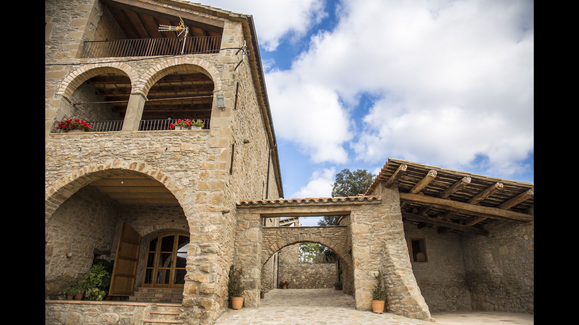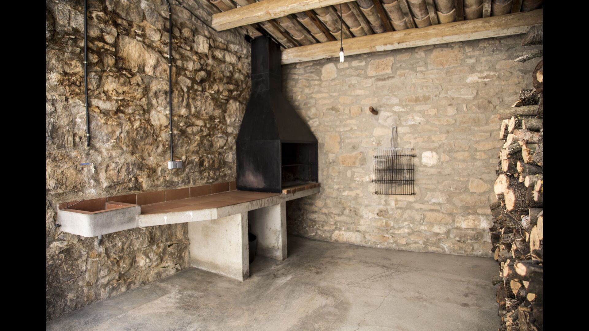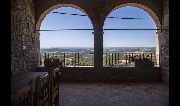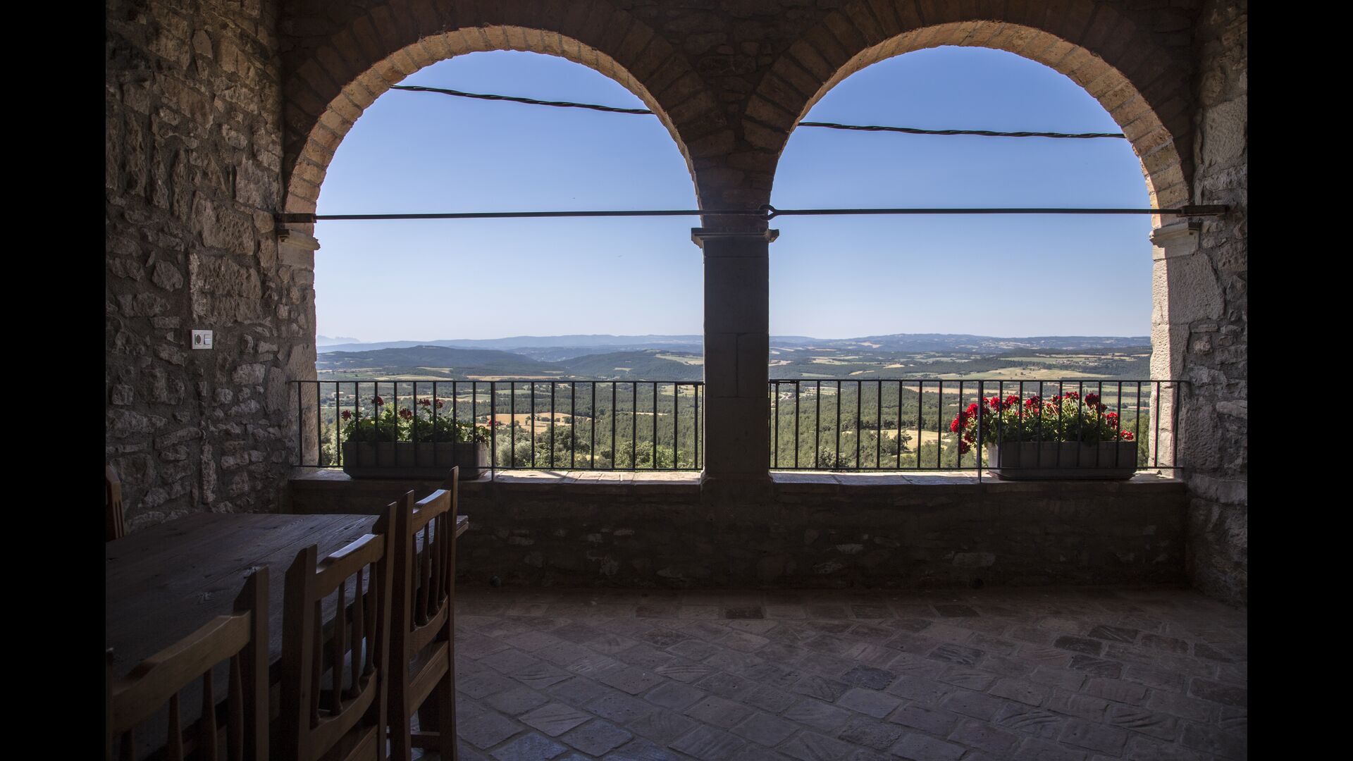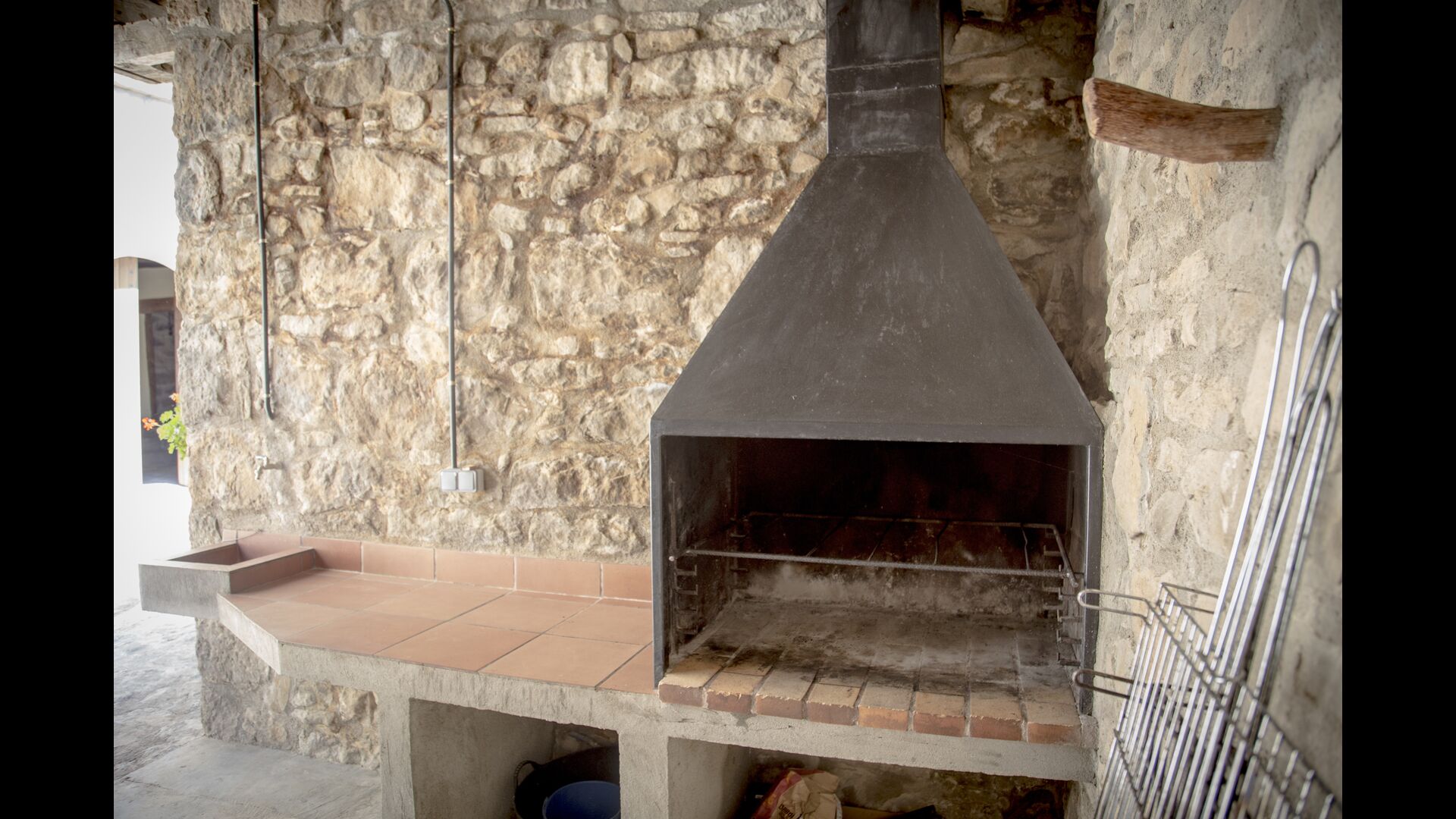 Den store overdækkede terrasse med catalanske kalkstensbuer har også en fænomenal udsigt! Et vidunderligt sted at nyde udendørs måltider - enten lavet ved BBQ området, eller i det rustikke, charmerende køkken, som er fuldt udstyret.