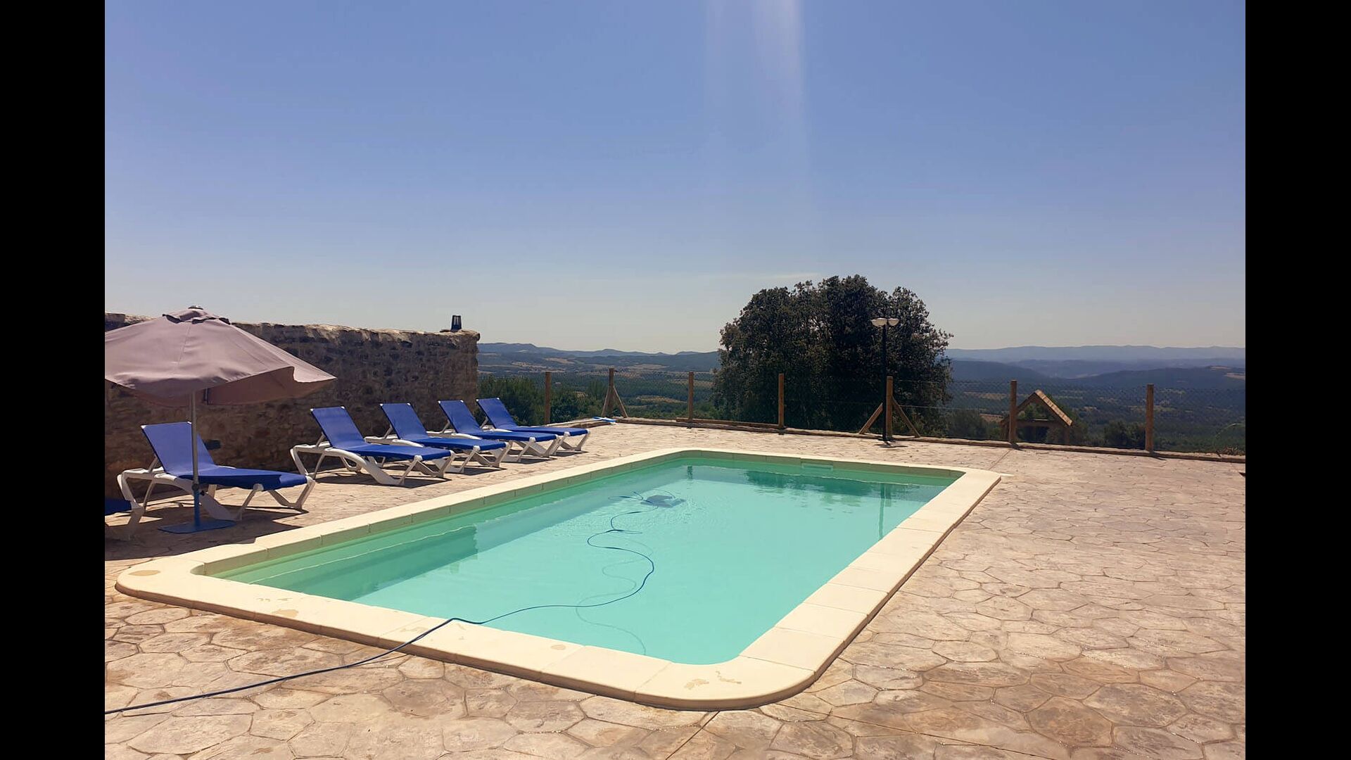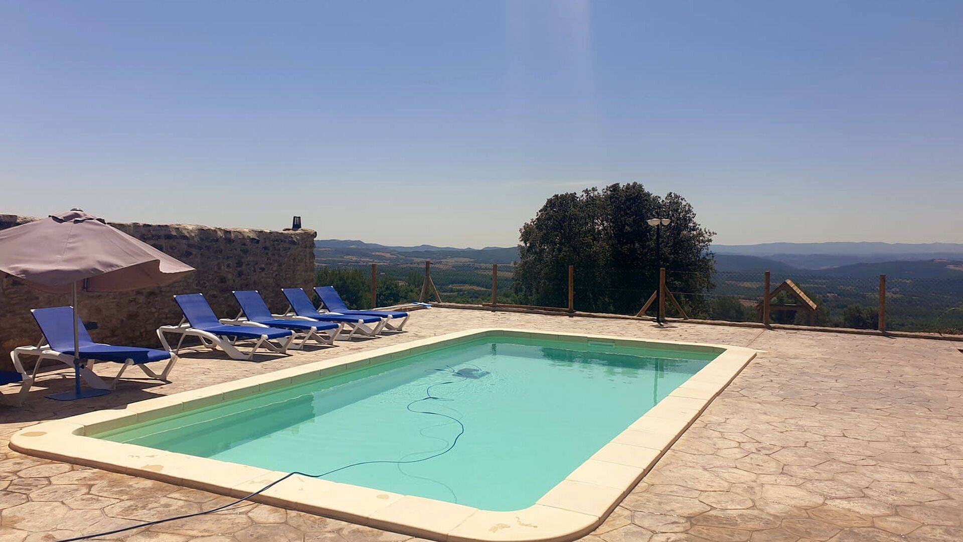 Poolområdet er placeret ved siden af huset, og det er helt sikkert her, at du kommer til bruge det meste af din ferie. Der er behagelige liggestole og en utrolig flot udsigt! Det perfekte sted at svømme, solbade, slappe af og alt andet, der kendetegner en sommer i det smukke Catalonien. For børnenes sikkerhed er poolområdet indhegnet, så du kan have en helt stressfri ferie. Der er også en have foran huset med en legeplads med gynger og en rutsjebane, hvor børnene kan lege.