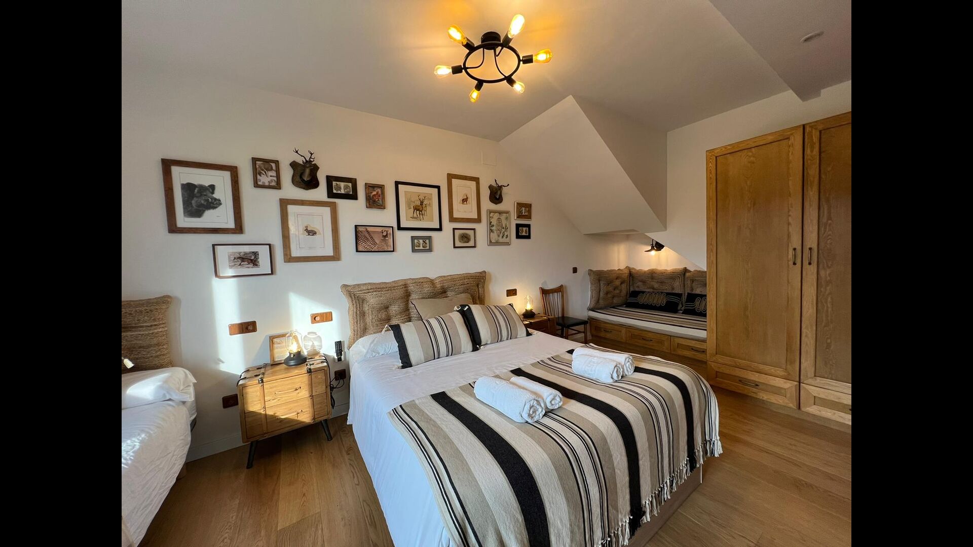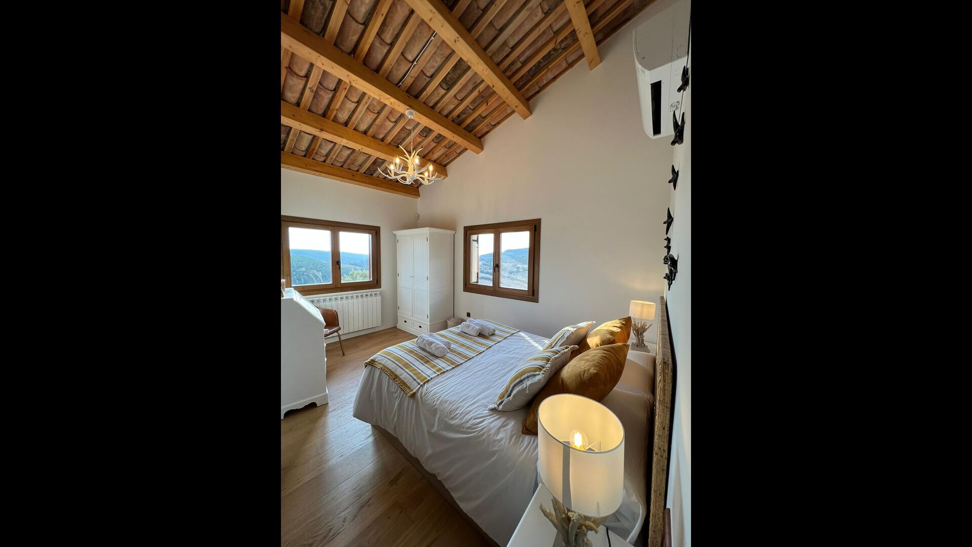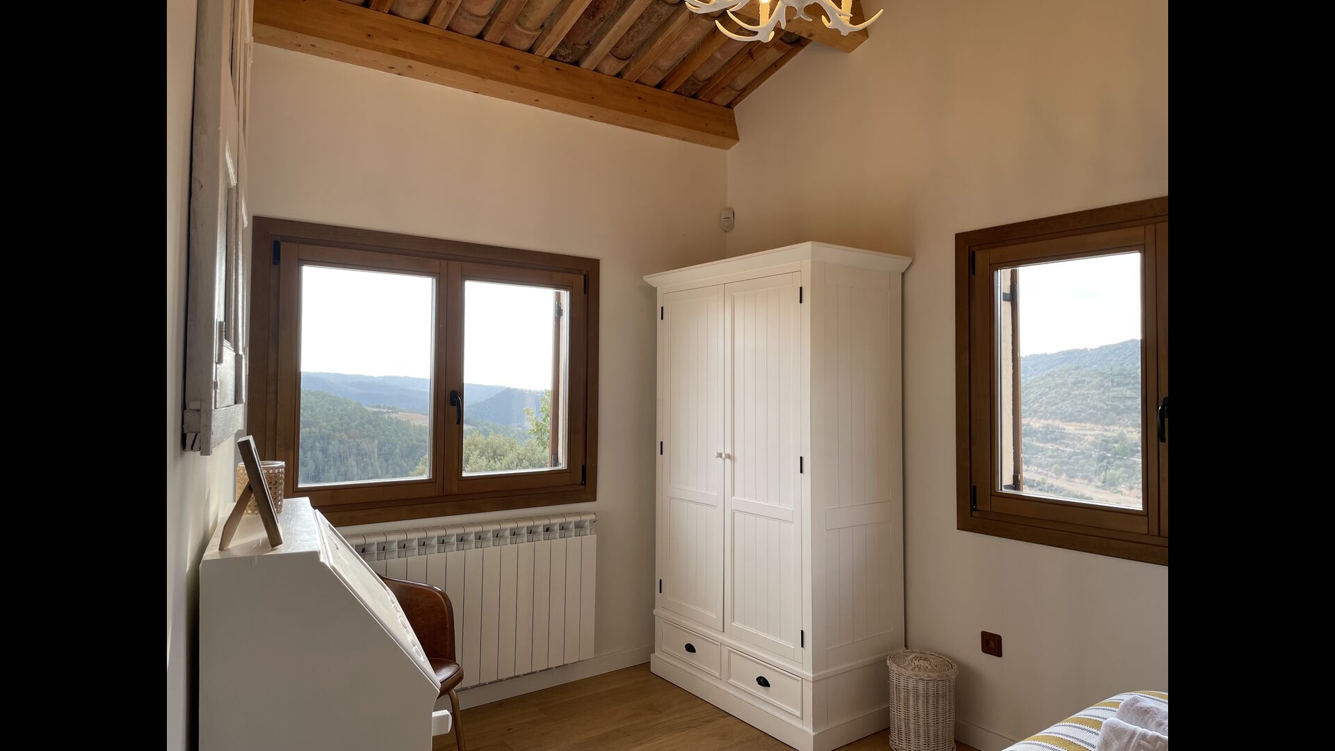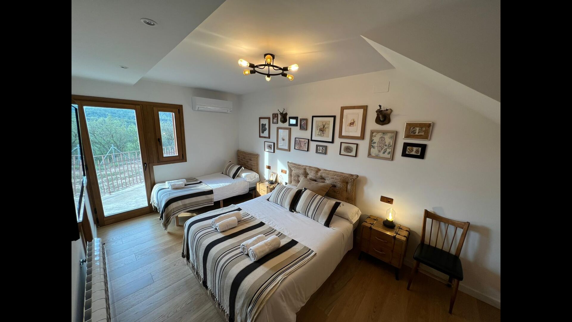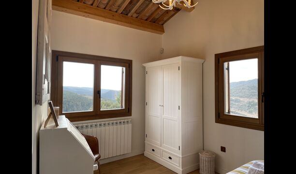 På samme etage finder du et andet soveværelse, som har en dobbeltseng og en enkeltseng. Sengene har direkte udsigt over dalen, og da bygningen ligger ud til bjergsiden, er der også en privat terrasse med direkte udgang fra værelset og den smukkeste udsigt. Ensuite, der er det store badeværelse med badekar i fuld størrelse.