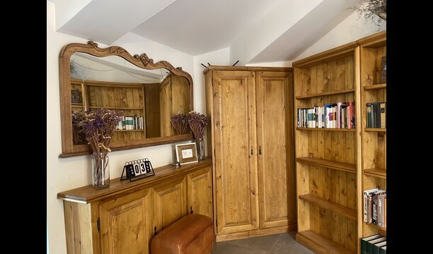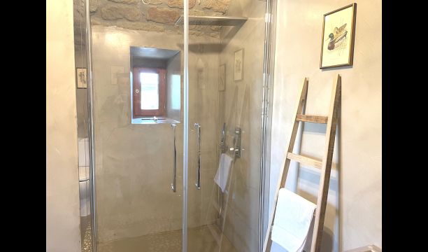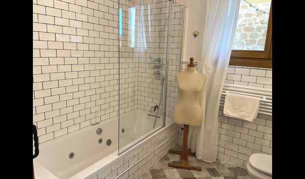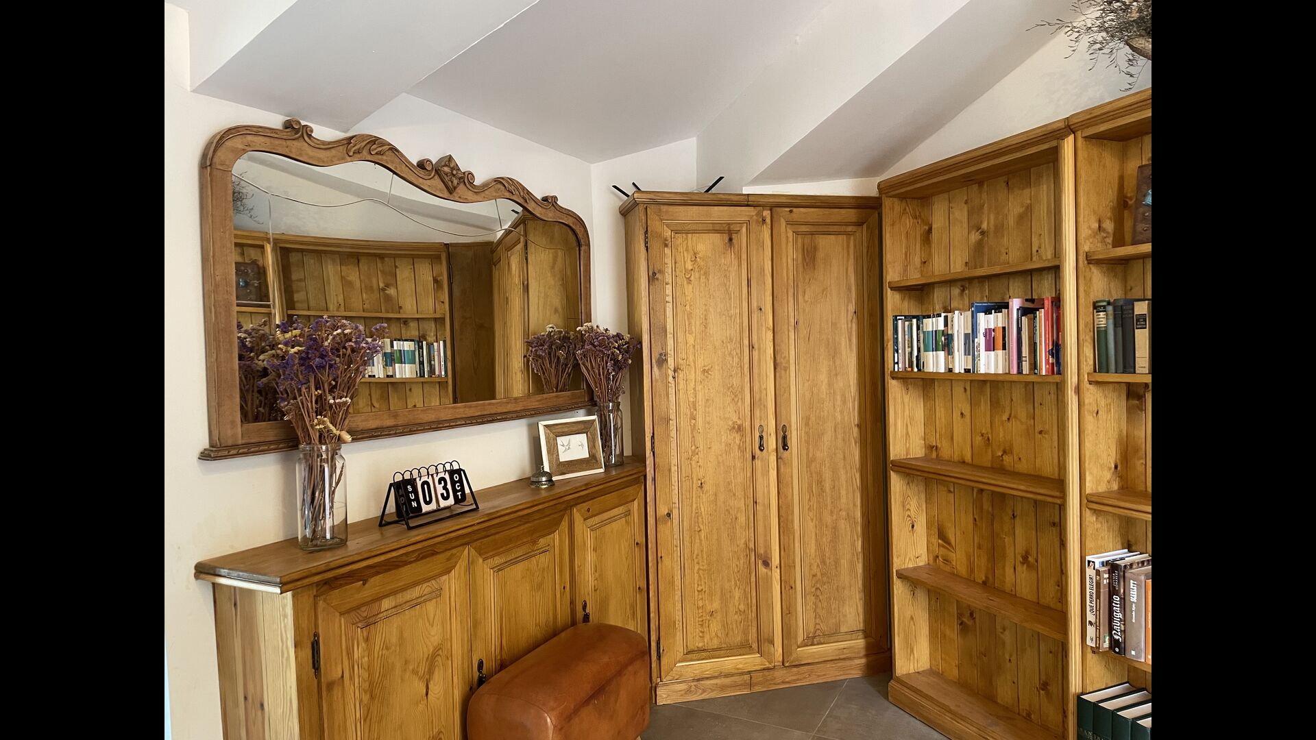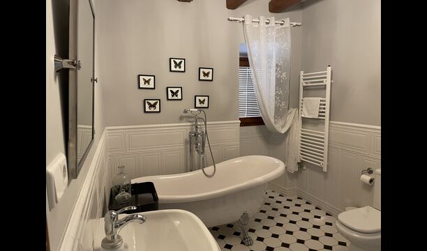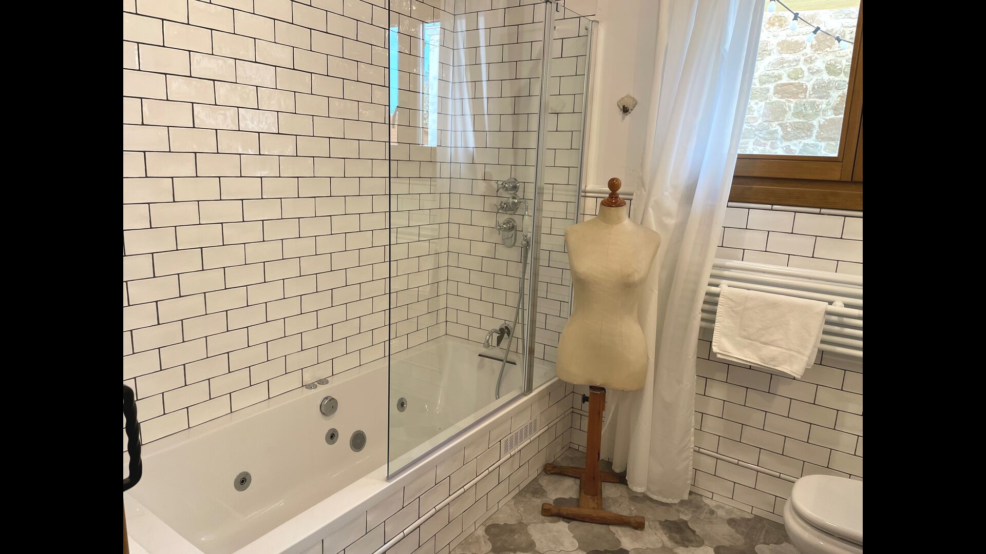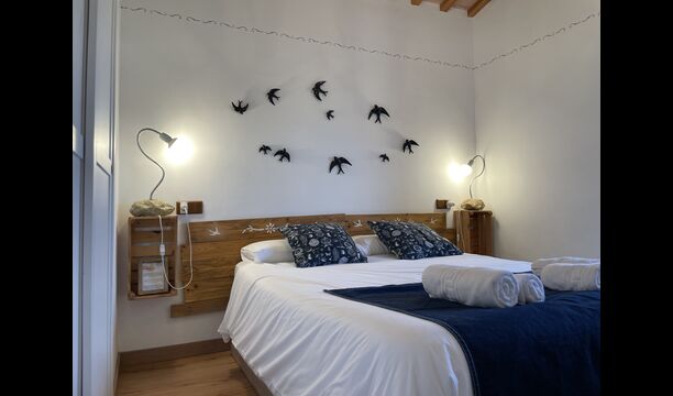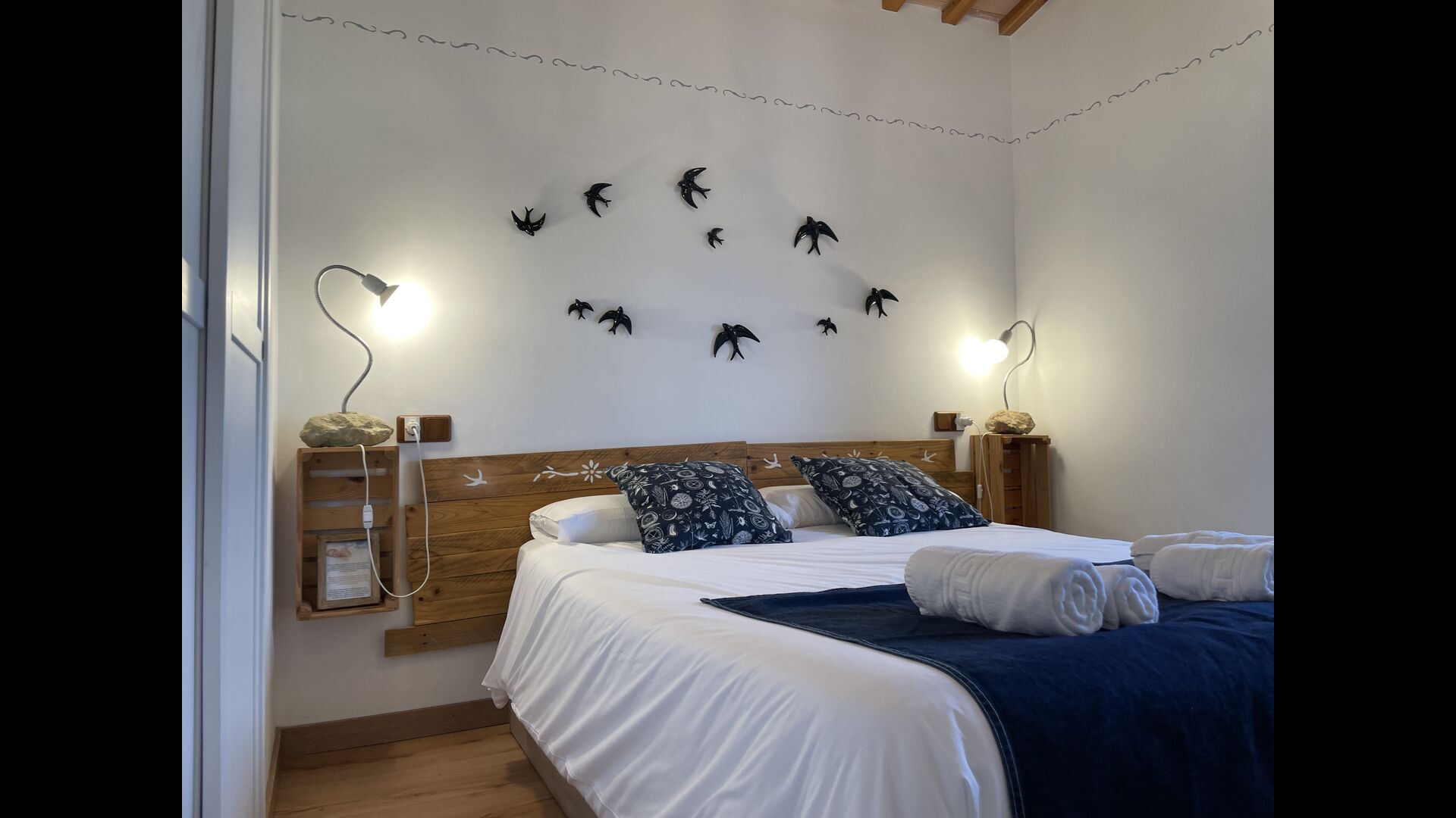 På samme etage finder du et andet soveværelse, som har en dobbeltseng og en enkeltseng. Sengene har direkte udsigt over dalen, og da bygningen ligger ud til bjergsiden, er der også en privat terrasse med direkte udgang fra værelset og den smukkeste udsigt. Ensuite, der er det store badeværelse med badekar i fuld størrelse.