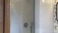 På første sal et hyggeligt soveværelse med dobbeltseng og udsigt til to sider. Der er også et skrivebord, hvis du skal trække dig tilbage for at skrive et par e-mails og endelig er der ensuite et hyggeligt badeværelse med bruser.