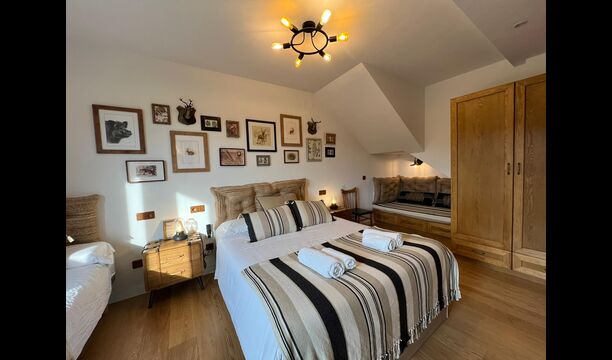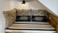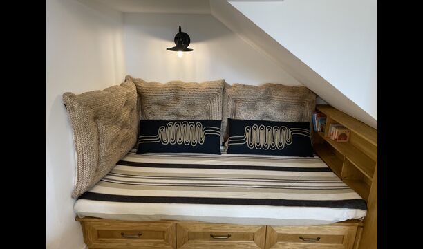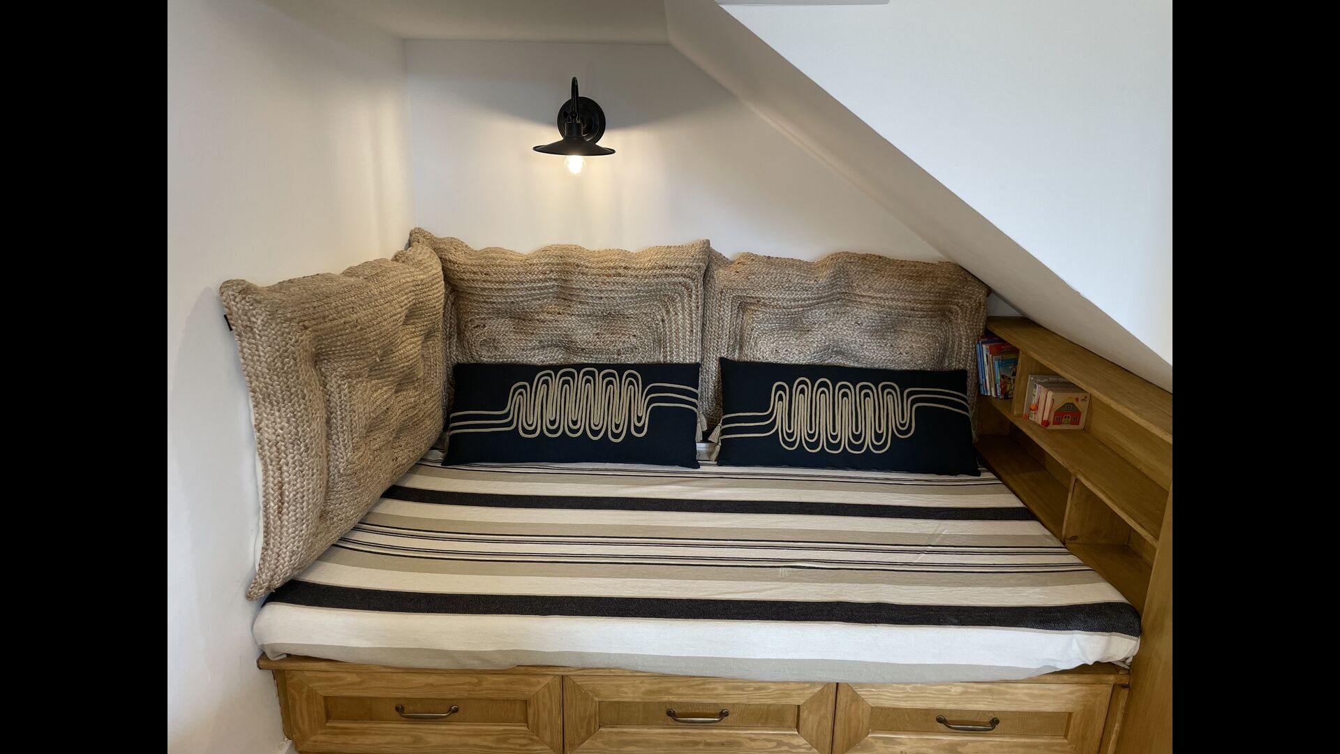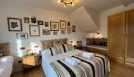 Også i stueetagen finder du det "hemmelige rum". Det er suite, som man kommer ind i ved at skubbe bogreolen væk, som taget ud af en krimi fra en engelsk mansion. Selve værelset er perfekt til en familie, da der er en stor dobbeltseng og så en alkove med en komfortabel indbygget sofa, dejlig til et eller to små børn eller til afslapning. Ensuite et smukt badeværelse med reainshower.