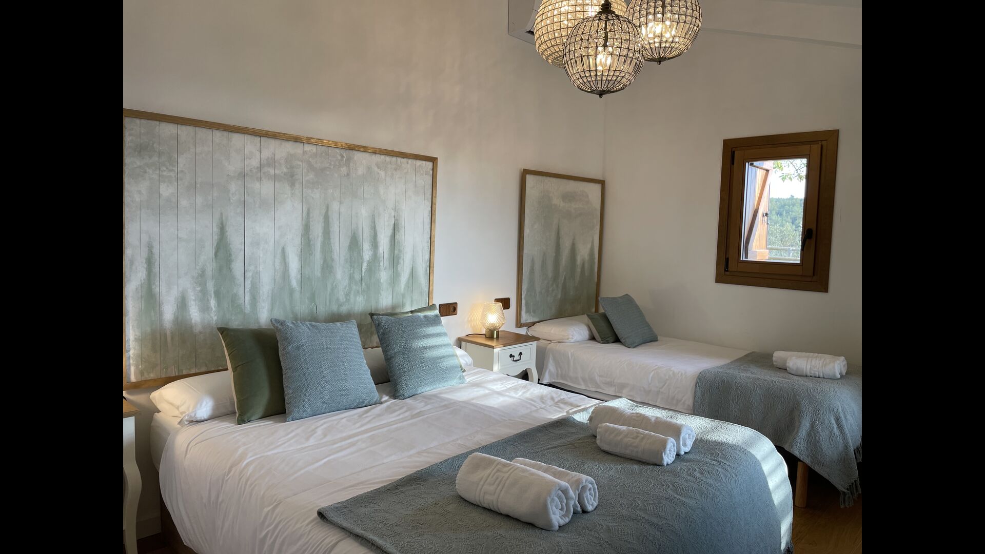 2. sal er indrettet med flere forskellige, smukke soveværelser med ensuite badeværelser. Husejeren er chefdesigner for et af de store spanske modemærker, og han har øje for dekorationer og lys, som reflekteres i hele huset. På 2. sal er der 3 værelser. To af dem er 3-personersværelser og ét af dem er et dobbeltværelse med dobbeltseng og med mulighed for en ekstra enkeltseng. Et af de 3 badeværelser på etagen har et eksklusivt badekar med sølvklofødder.