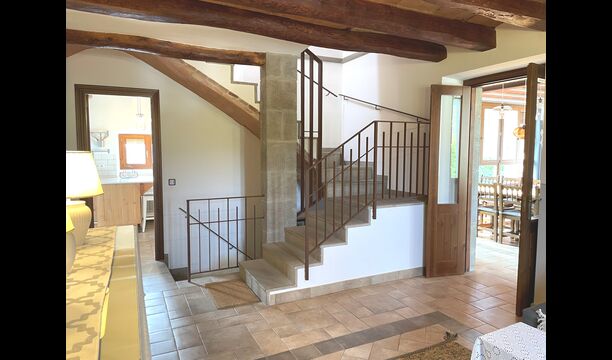 Oreña-bygningen er mere nyligt istandsat med henblik på at udvidde ejendommens kapacitet. (For mindre grupper kan hovedbygningen lejes til en lavere pris under navnet El Riberella). Her finder du i stueplan et langt fællesareal. I den ene ende et hyggeligt sofahjørne med TV, dernæst et fuldt udstyret køkken, og til sidst udgang til en hyggelig lille terrasse, hvor I kan slappe af og nyde udsigten.