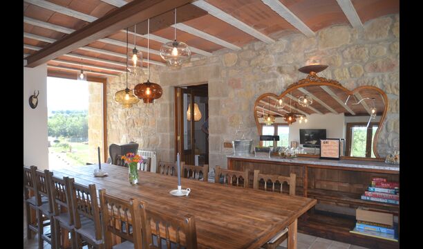 Fra terrassen kan du nyde den imponerende udsigt over de grønne catalanske bakker. De udendørs måltider kan nydes ved det lange spisebord på den store terrasse. Hjemmelavede måltider kan kun anbefales, da det hvide moderne indendørs køkken også suppleres af et overdækket udekøkken. El Oreña er desuden yderst familievenligt. I ferieboligen er der en lille legeplads med rutsjebane og gynger, og man kan holde øje med børnene, når de svømmer og leger i det indhegnede poolområde. Swimmingpoolen er ligeledes børnevenlig.