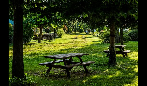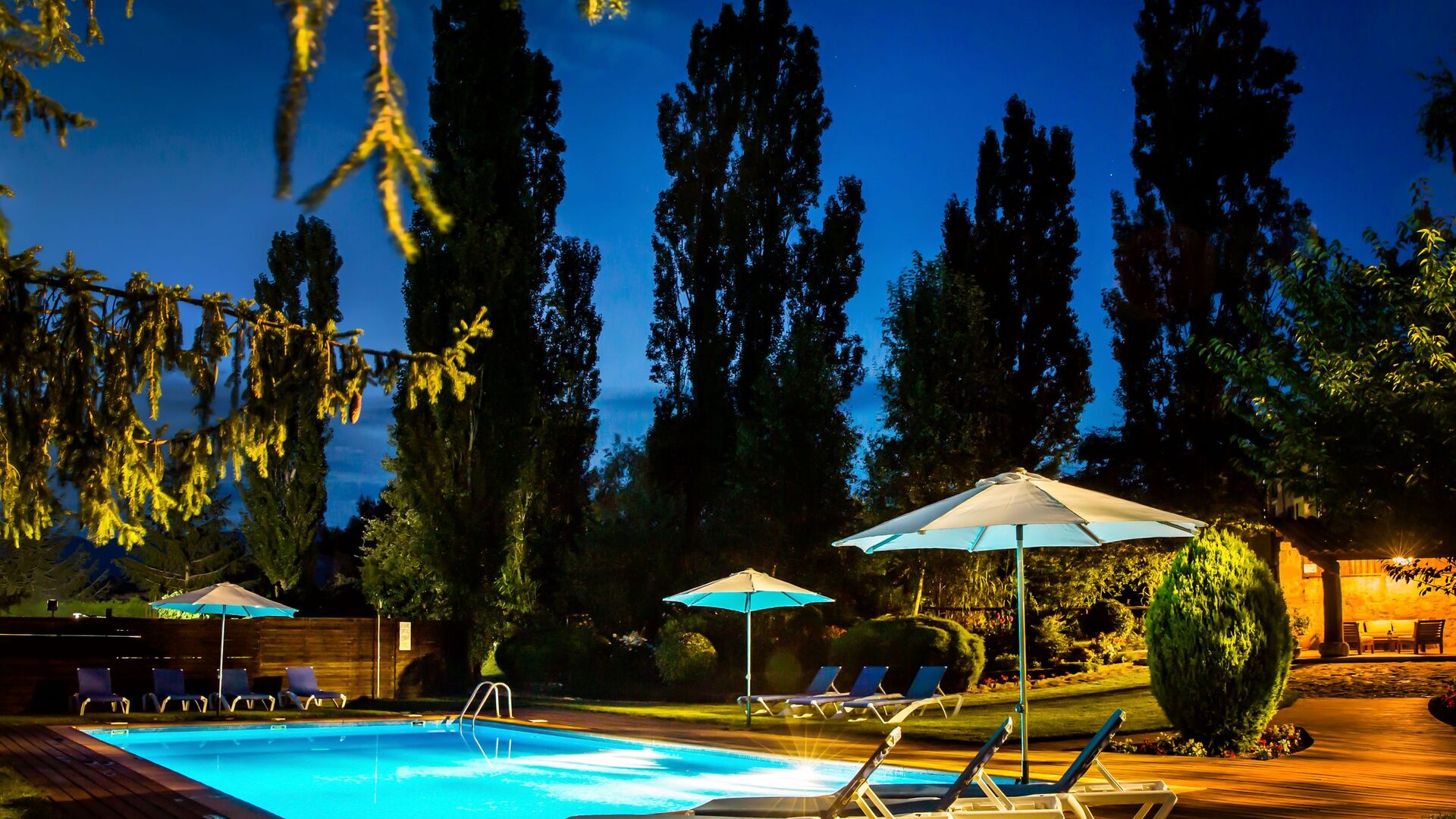 Det naturlige samlingssted er poolområdet. Den store swimmingpool på 12x6 meter er omgivet af terrasse med parasoller og liggestole, hvor man kan slappe af mens børnene leger i swimmingpoolen.