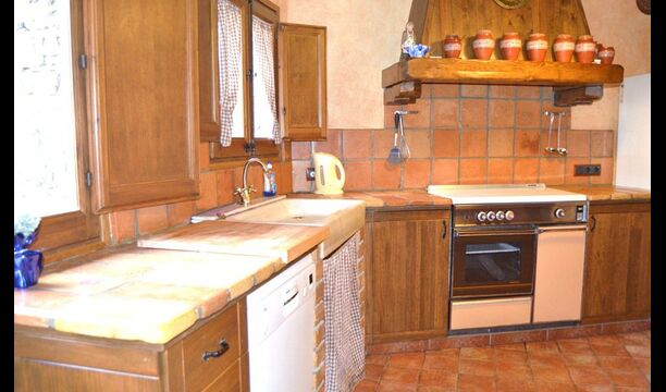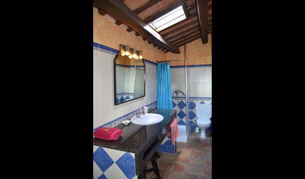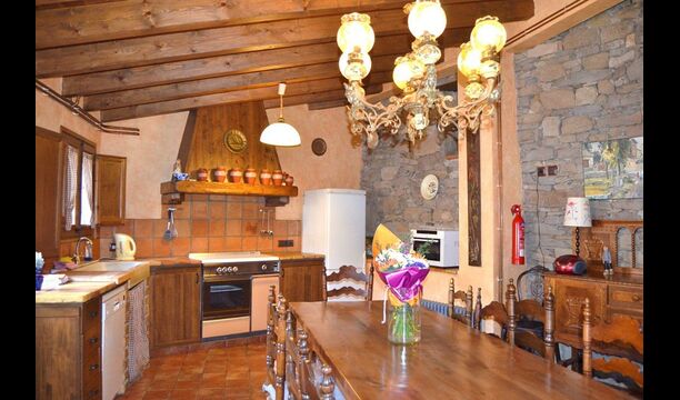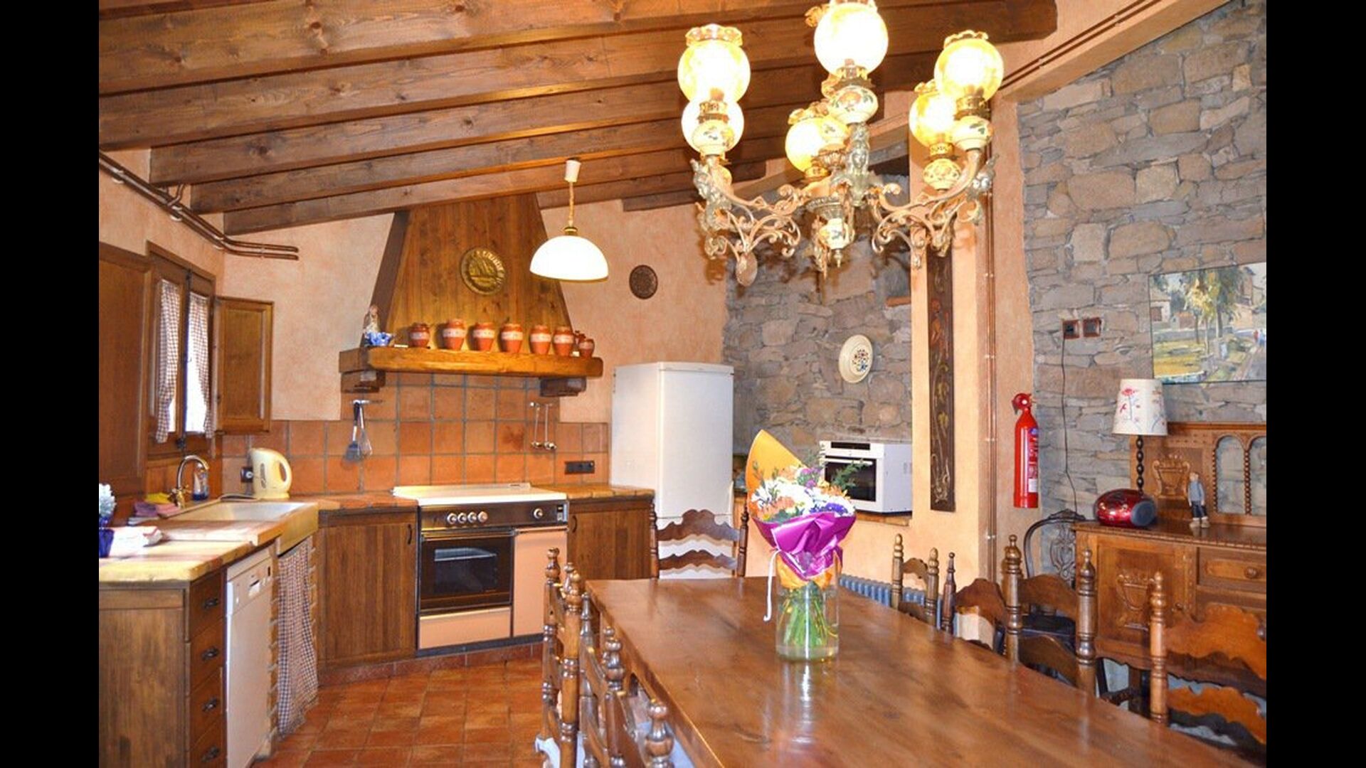 Selve feriehuset har et hyggeligt traditionelt spansk landkøkken med moderne bekvemmeligheder. Skulle i vælge at spise inde døre er der i køkkenet det klassiske spanske langbord, som det store samlingspunkt. Stuen har udsigt til haven og har pejs (såfremt der lejes om vinteren og ønsker lidt ekstra varme og hygge). I huset er der 4 soveværelser, hvoraf to er dobbelt, ét er triple og desuden er der et 4. personers værelse. Samlet er der plads til 11 gæster i det 250m2 store feriehus. I huset er der 2 badeværelser.