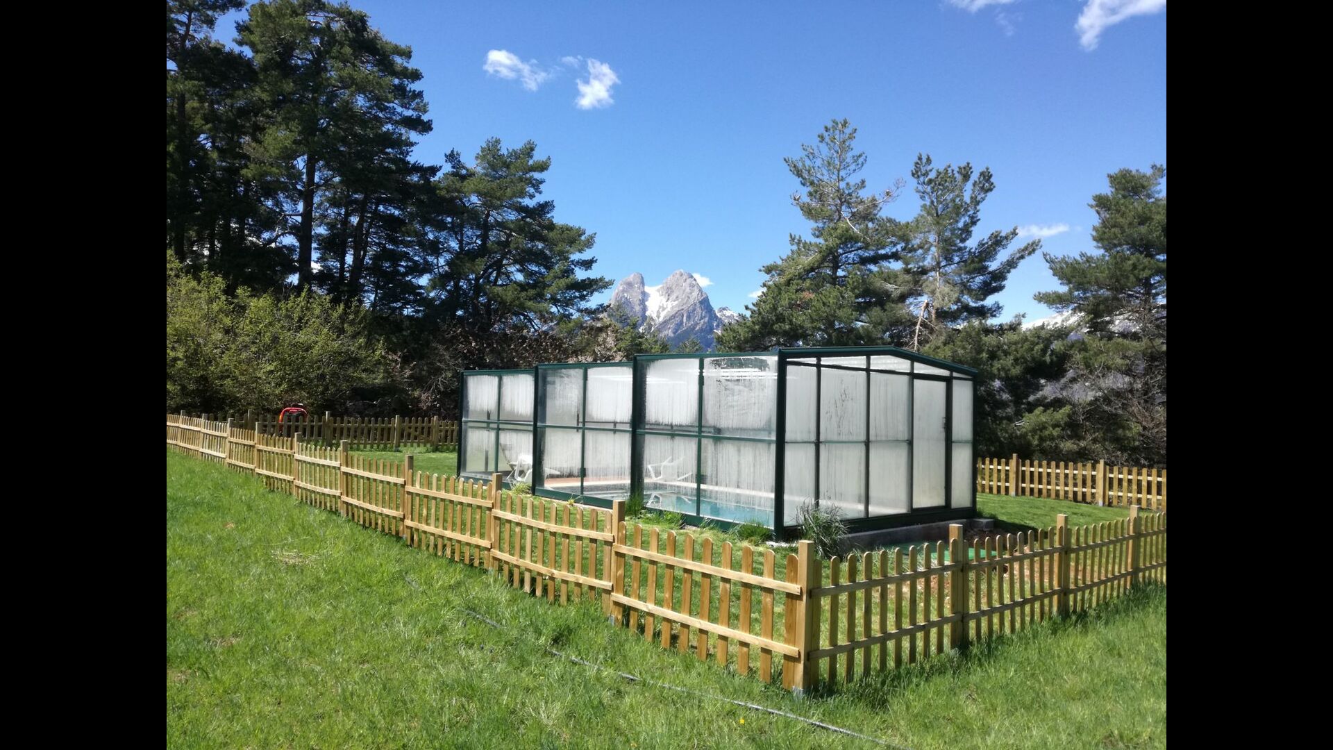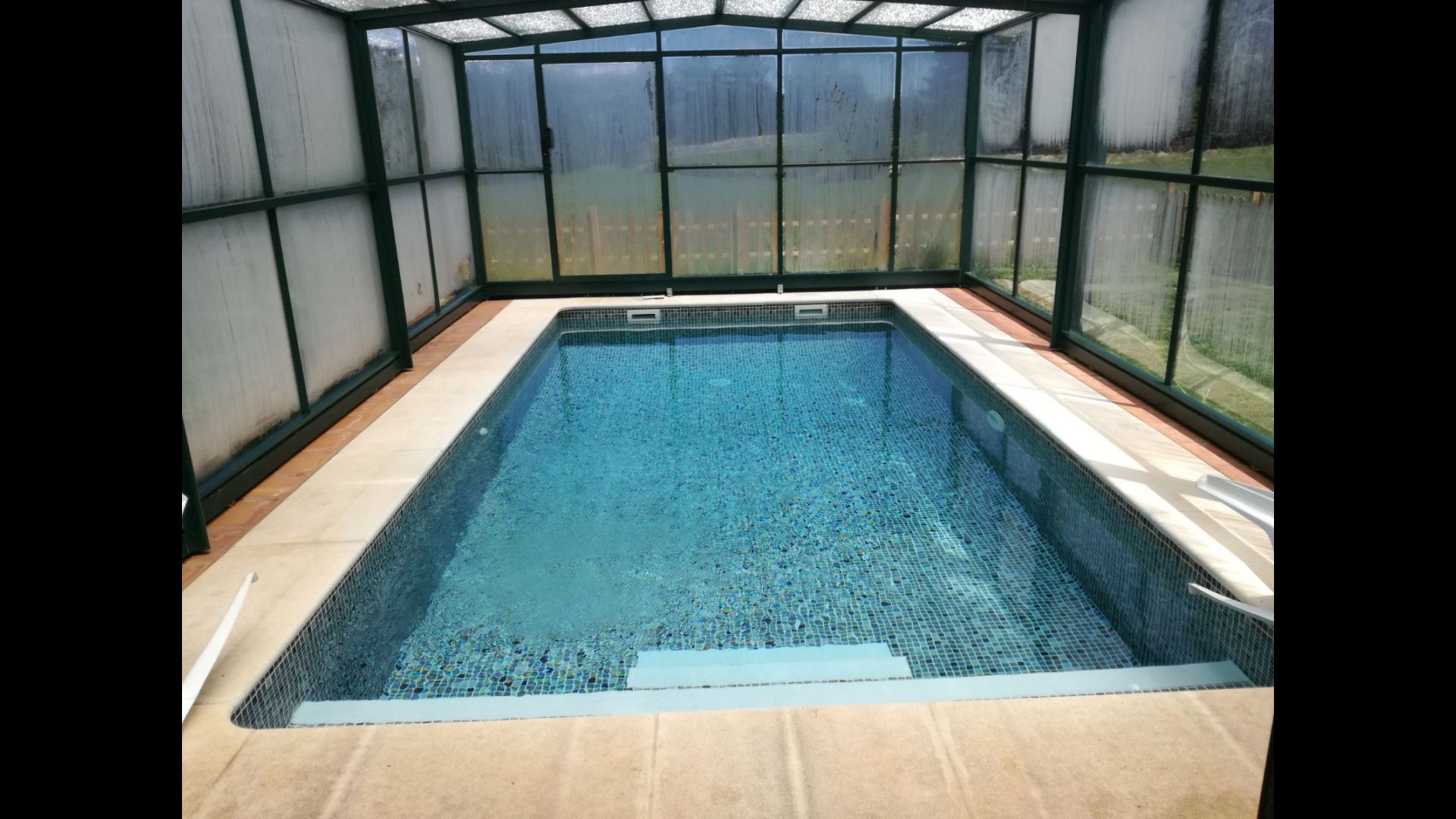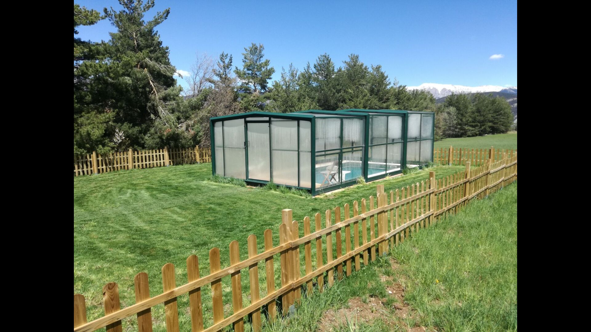 Huset er omgivet af skøn natur og grønne græsarealer, og haven er så stor, som den kan fås. I kan f.eks. bruge haven til at spille fodbold eller hvad end man nu har lyst til. Derudover er der en dejlig, overdækket pool, som man kan fjerne overdækket fra om sommeren, som altid giver en uerstattelig mulighed for både sjov og afslapning, især for de mindre i gruppen. Men hvis det ikke skulle være nok, har naboen nogle venlige hunde og katte og endda et par grise, der går rundt, hvilket uden tvivl vil være en meget attraktiv aktivitet for børnene. Desuden har huset en overdækket terrasse, hvor I kan nyde jeres måltider eller bare drikke et glas vin mens man holder øje med børnene, der leger i haven.