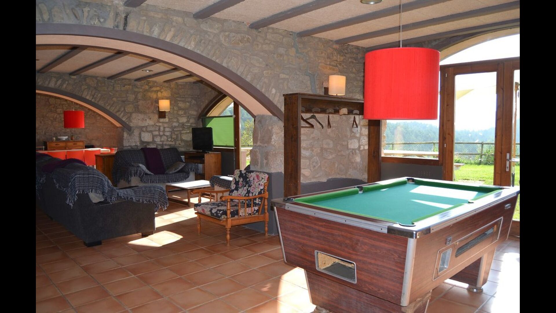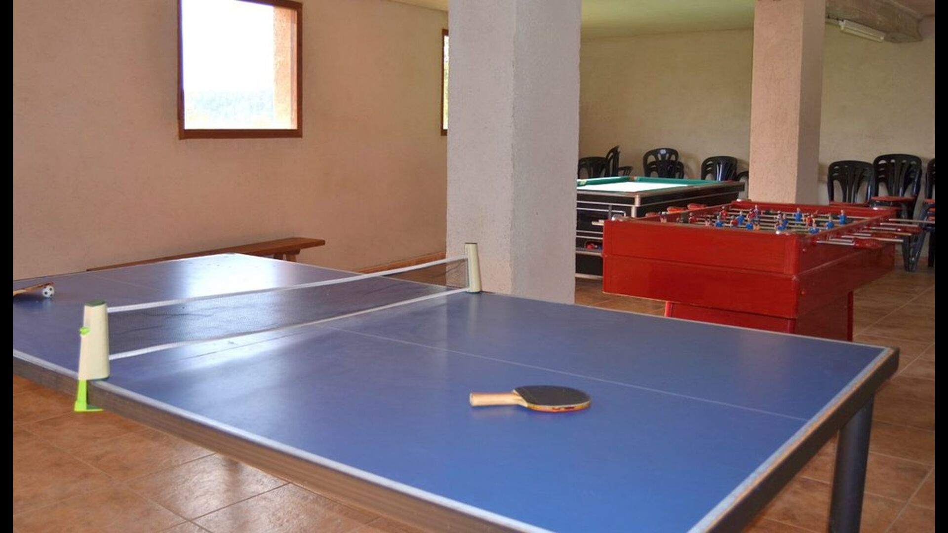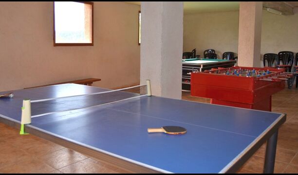 På den anden side af haven er der en hal til aktiviteter og spil, som er udstyret med bordtennis, bordfodbold og billard.
