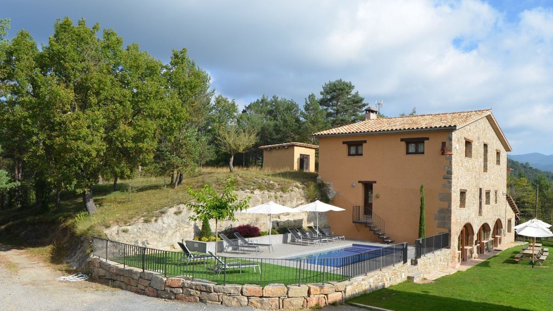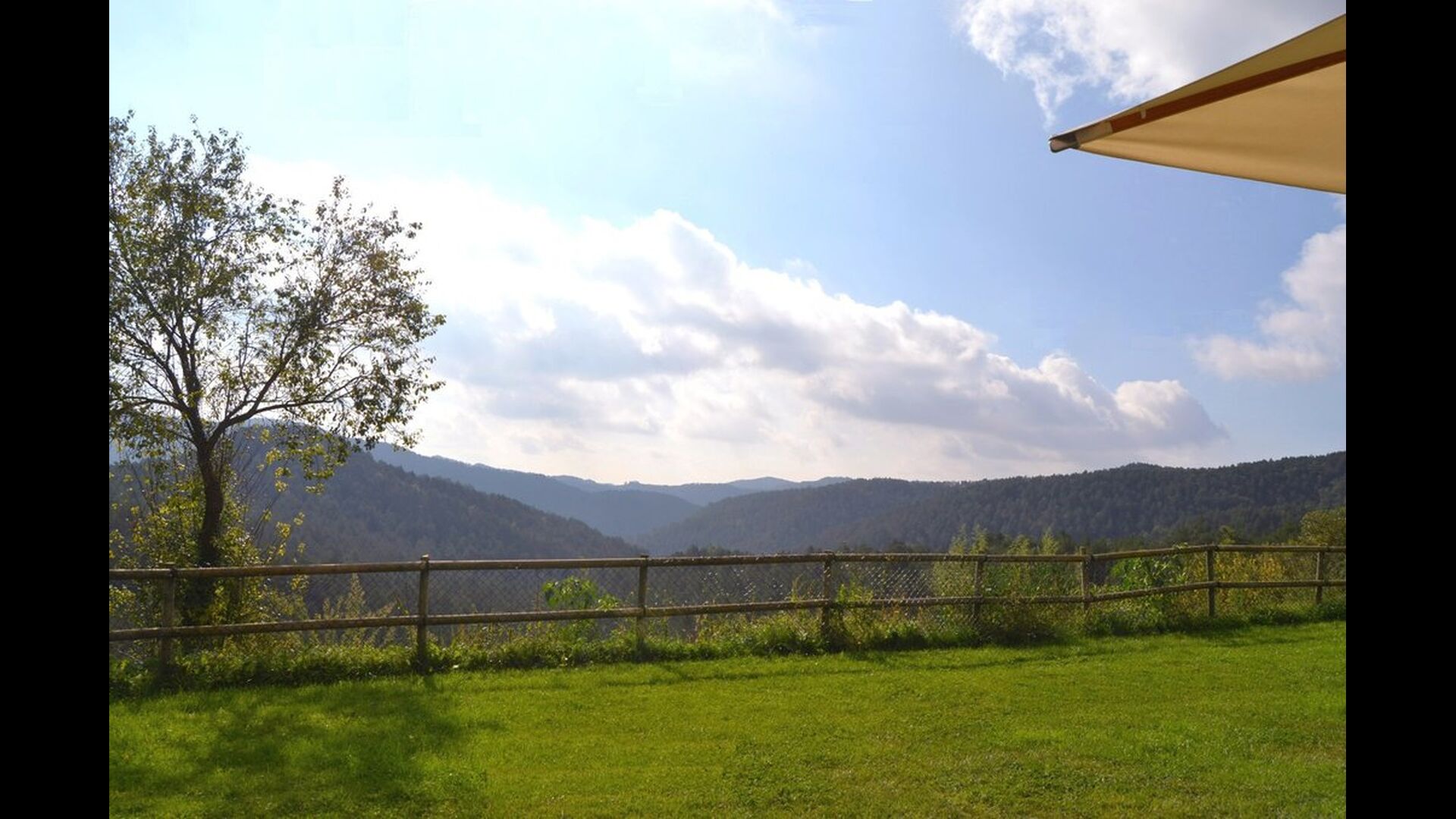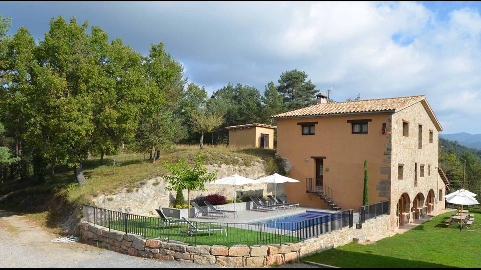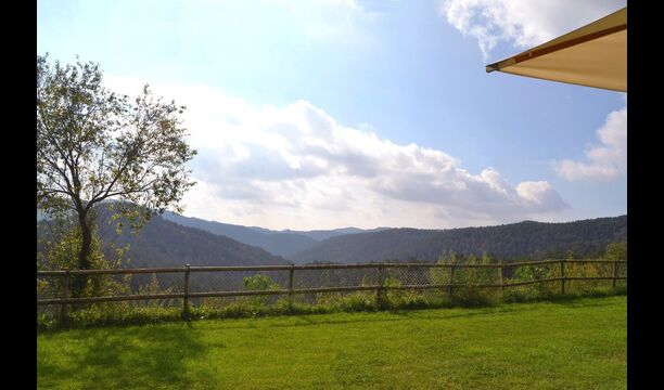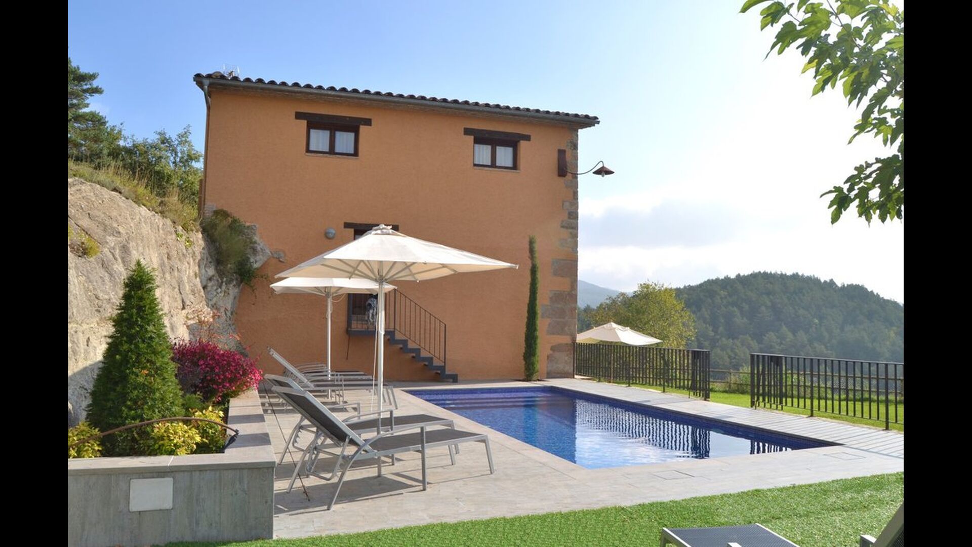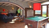 Det store plus ved dette hus er, at hele feriegruppen kan være sammen på samme tid. Alle faciliteter er placeret omkring den store have, hvor det også er muligt at spille boldspil. Man kan slappe af på terrassen, der har en grill, ved swimmingpoolen eller i spillerummet. Specielt er udsigten fra haven spektakulær, idet man kan se ud over en stor dal med skov og, i det fjerne, marker og små landsbyer.