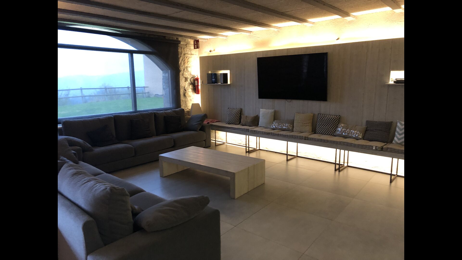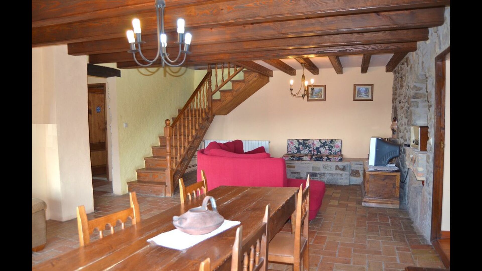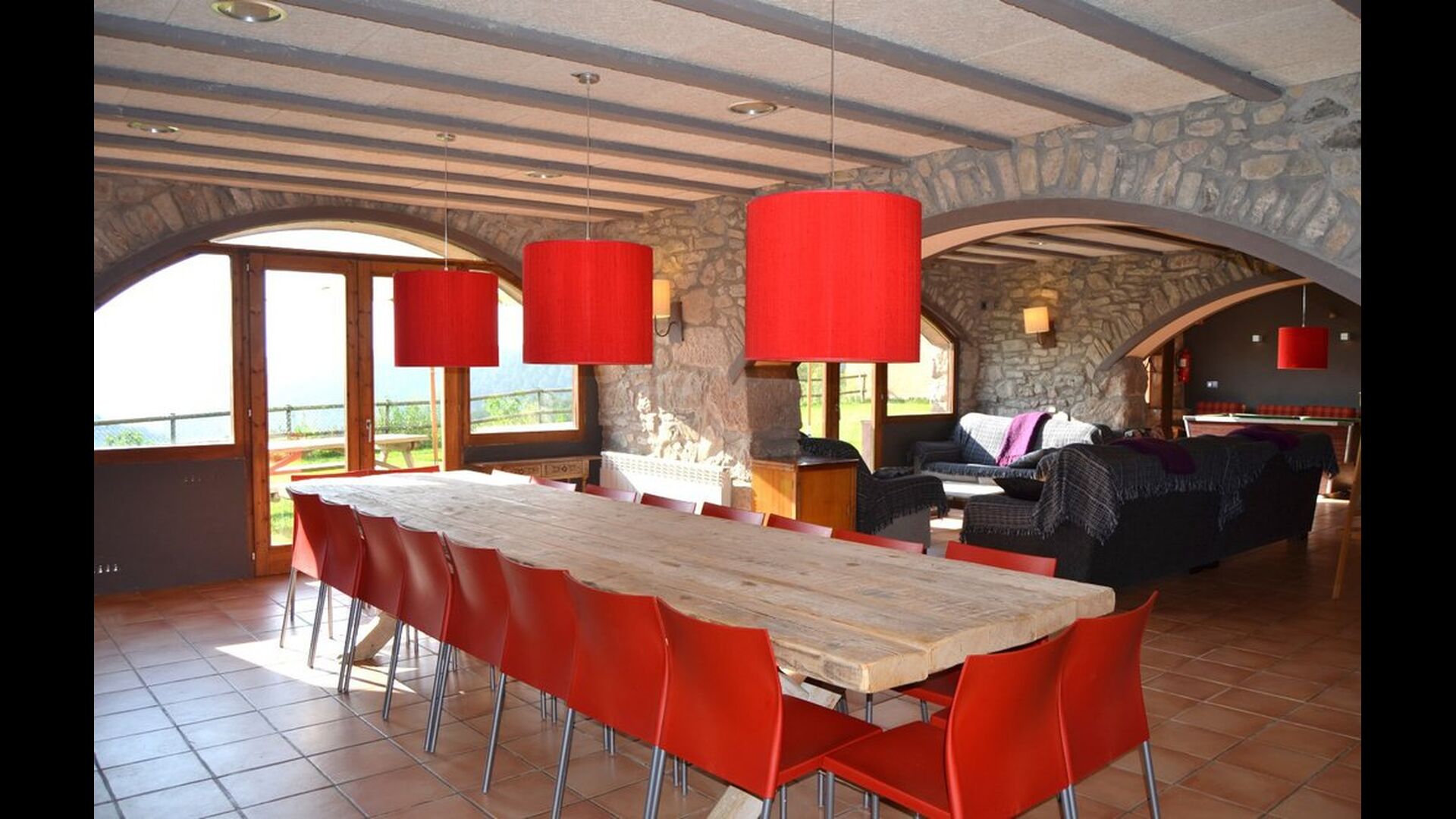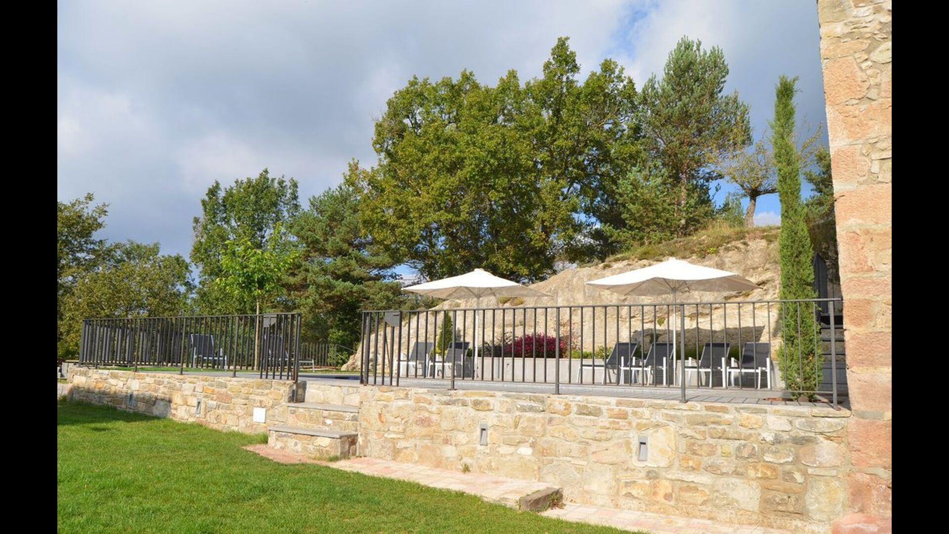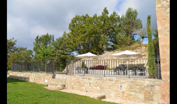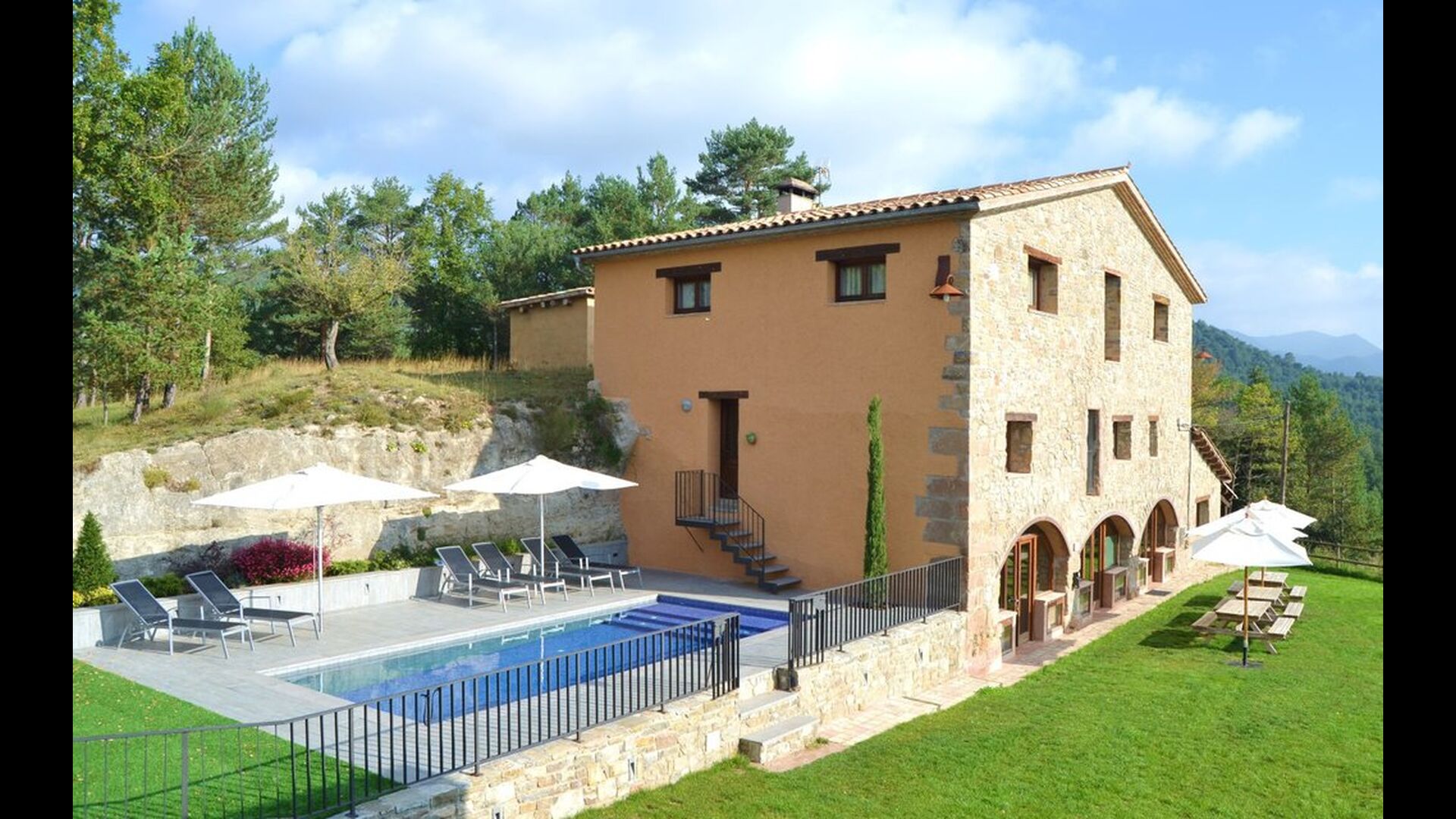 Det store plus ved dette hus er, at hele feriegruppen kan være sammen på samme tid. Alle faciliteter er placeret omkring den store have, hvor det også er muligt at spille boldspil. Man kan slappe af på terrassen, der har en grill, ved swimmingpoolen eller i spillerummet. Specielt er udsigten fra haven spektakulær, idet man kan se ud over en stor dal med skov og, i det fjerne, marker og små landsbyer.