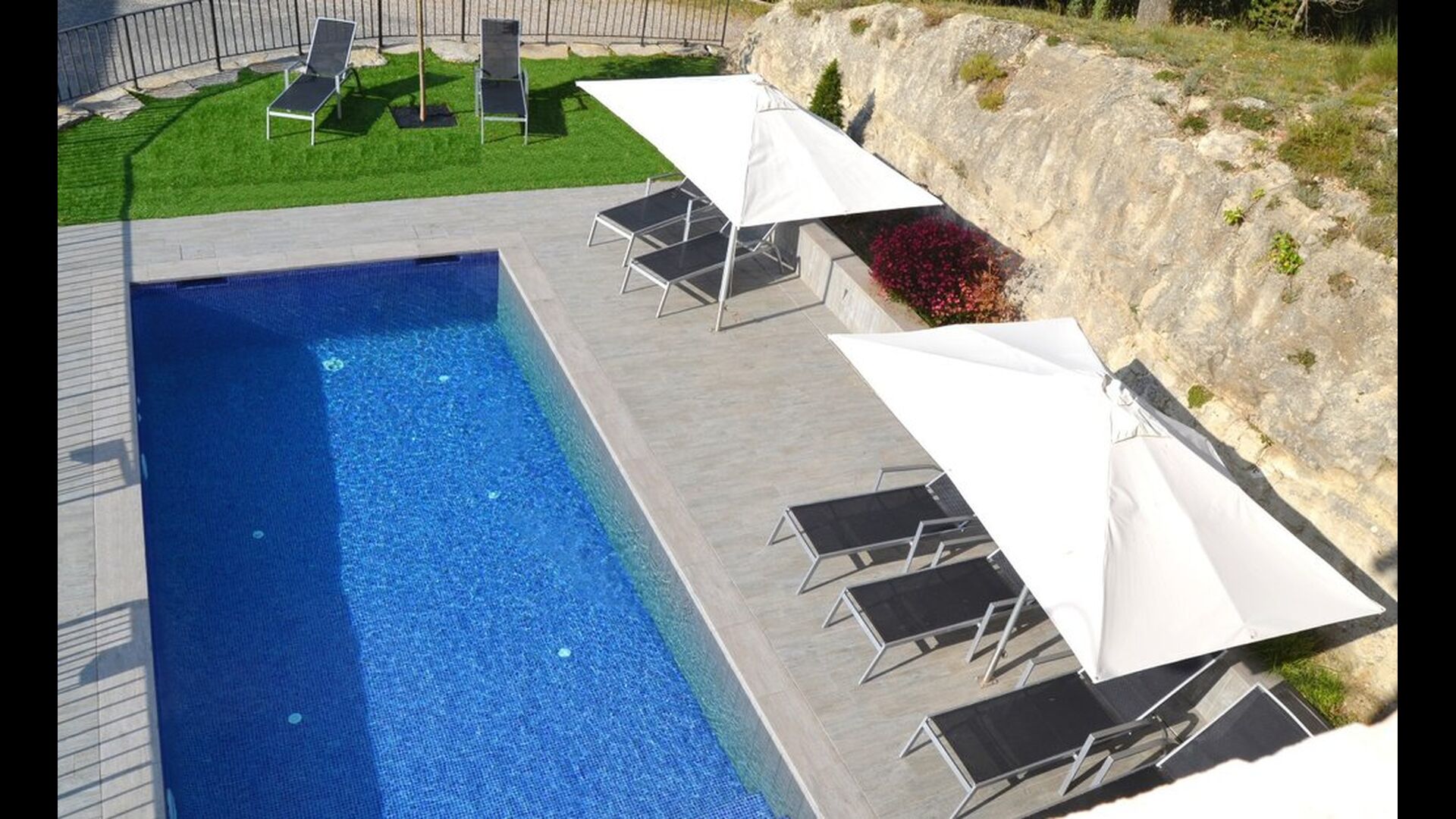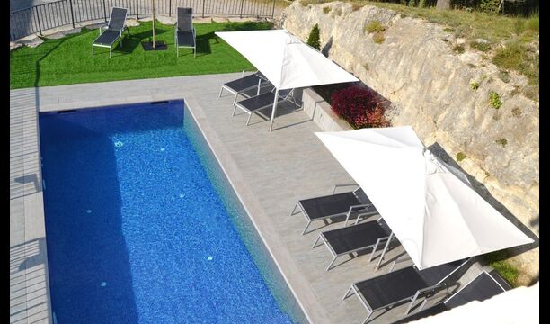 Lige ved siden af ferieboligen er det komfortable pool-område placeret. Det har en swimmingpool på 8m x 4m og er indhegnet af sikkerhedshensyn til de yngste i rejsegruppen. I den ene ende af poolen er der romerske trin, således at mindre børn kan sidde på de øverste trin. Om sommeren er der liggestole og parasoller, således at man kan nyde de varme sommerdage og bjergluften fuldt ud.