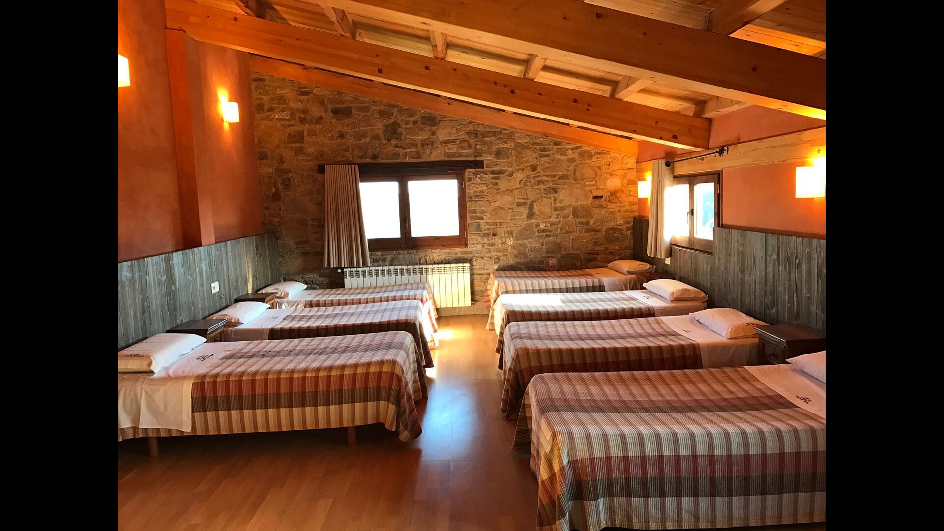 Den anden sal er opdelt i to dele. I den ene ende er der et stort værelse med syv senge, som er ideelt for børn, der ønsker at sove sammen. Til værelset hører et stort badeværelse med to håndvaske, et separat brusebad og et separat toilet. I anden ende er der to dobbeltværelser og et tredobbelt værelse - alle med badeværelser en suite.