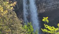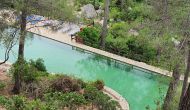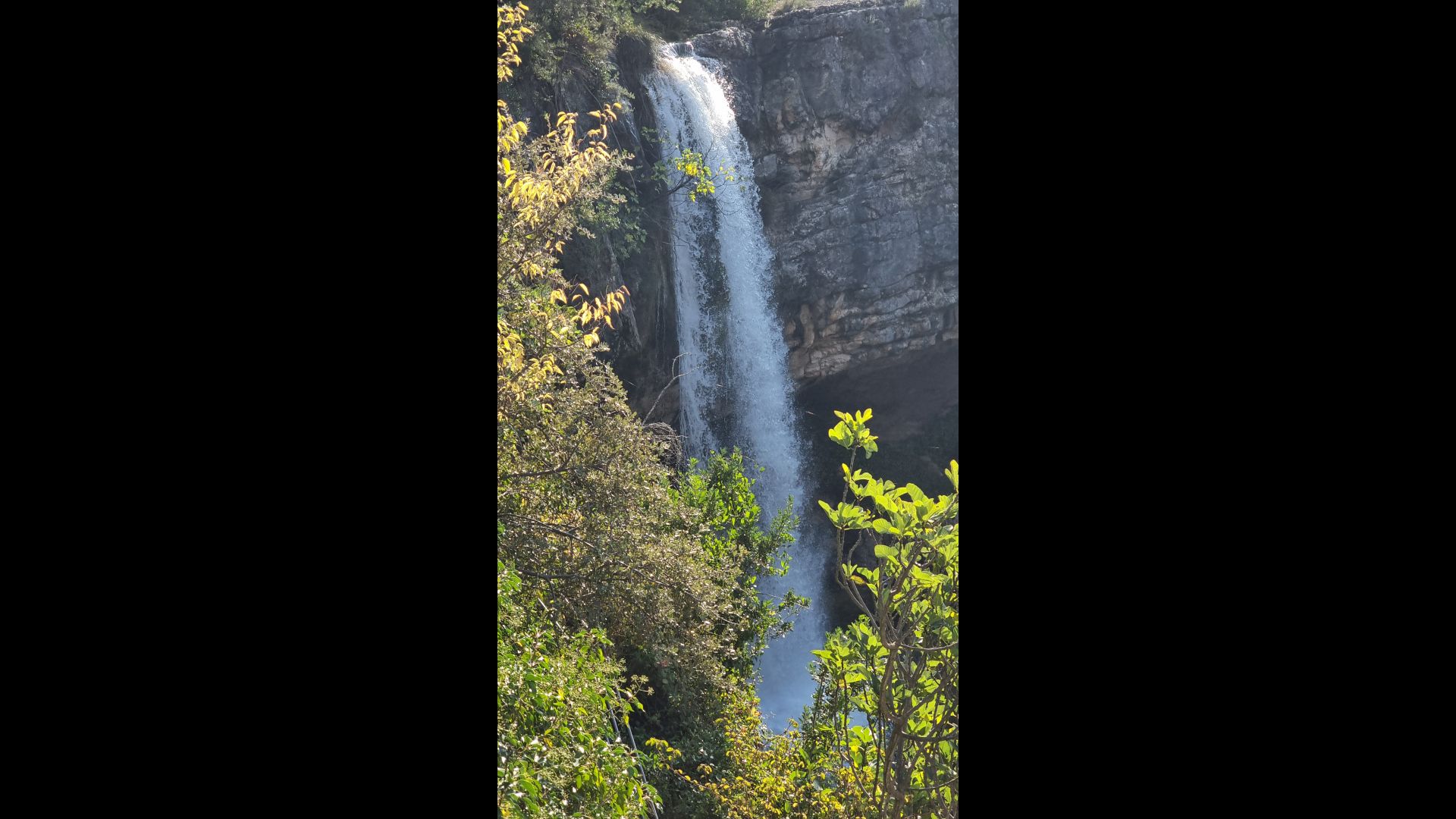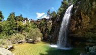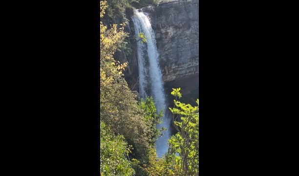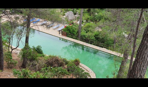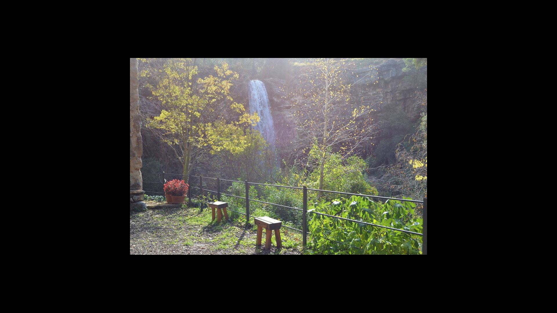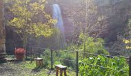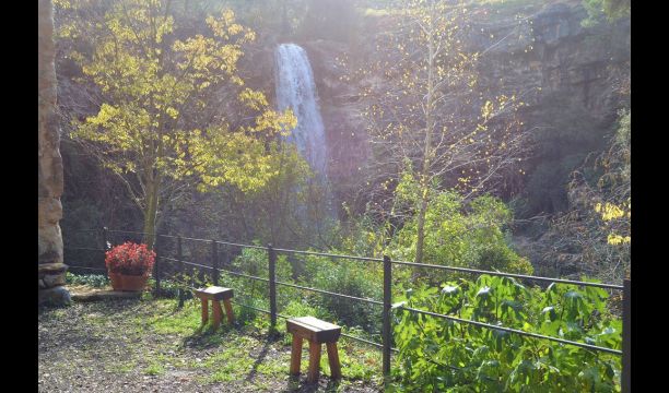 Fra hovedvejen skal man køre 4,5 km. af en snoet grusvej for at nå frem til denne naturskønne oase, som helt unikt har et vandfald lige ved siden af huset, som man kan svømme i og omkring, eller blot beundre det fra husets terrasser og soveværelser.