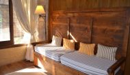 I niveauet under, er der indrettet 2 dobbeltværelser samt et badeværelse med brus, og på den øverste etage er der 2 dobbeltværelser med panorama-udsigt, et badeværelse med brus og hvis der er et par ekstra børn med, er der også en lavloftet hems med to senge.
