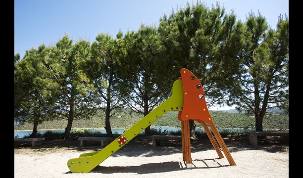 Til de små børn er der også en lille legeplads med rutsjebane og gynger.