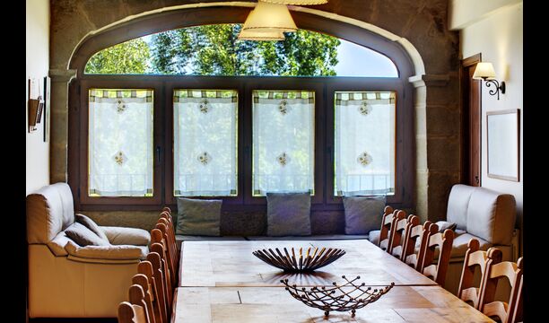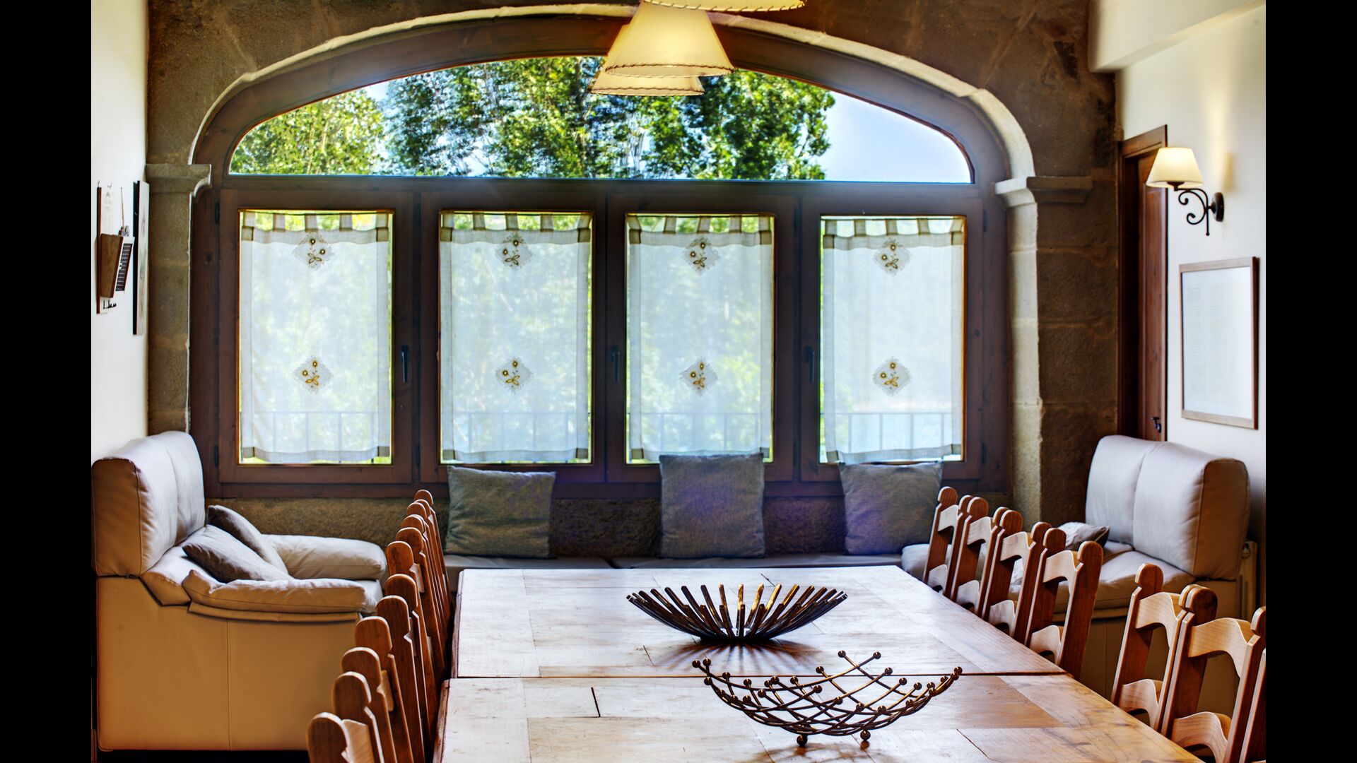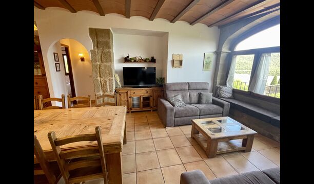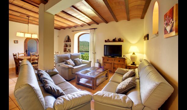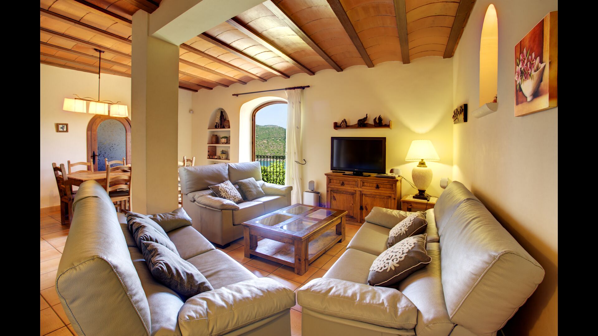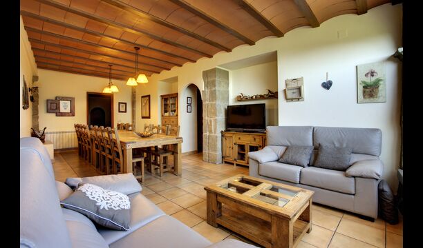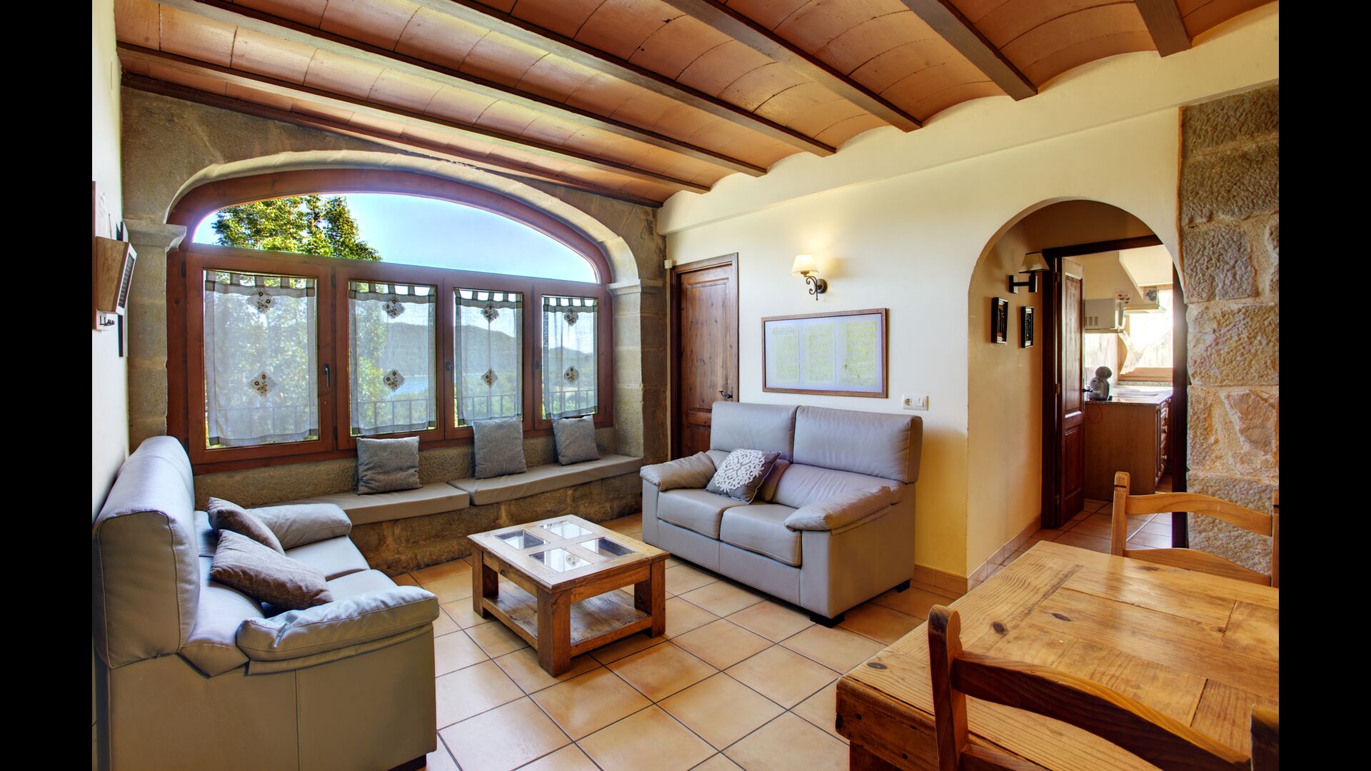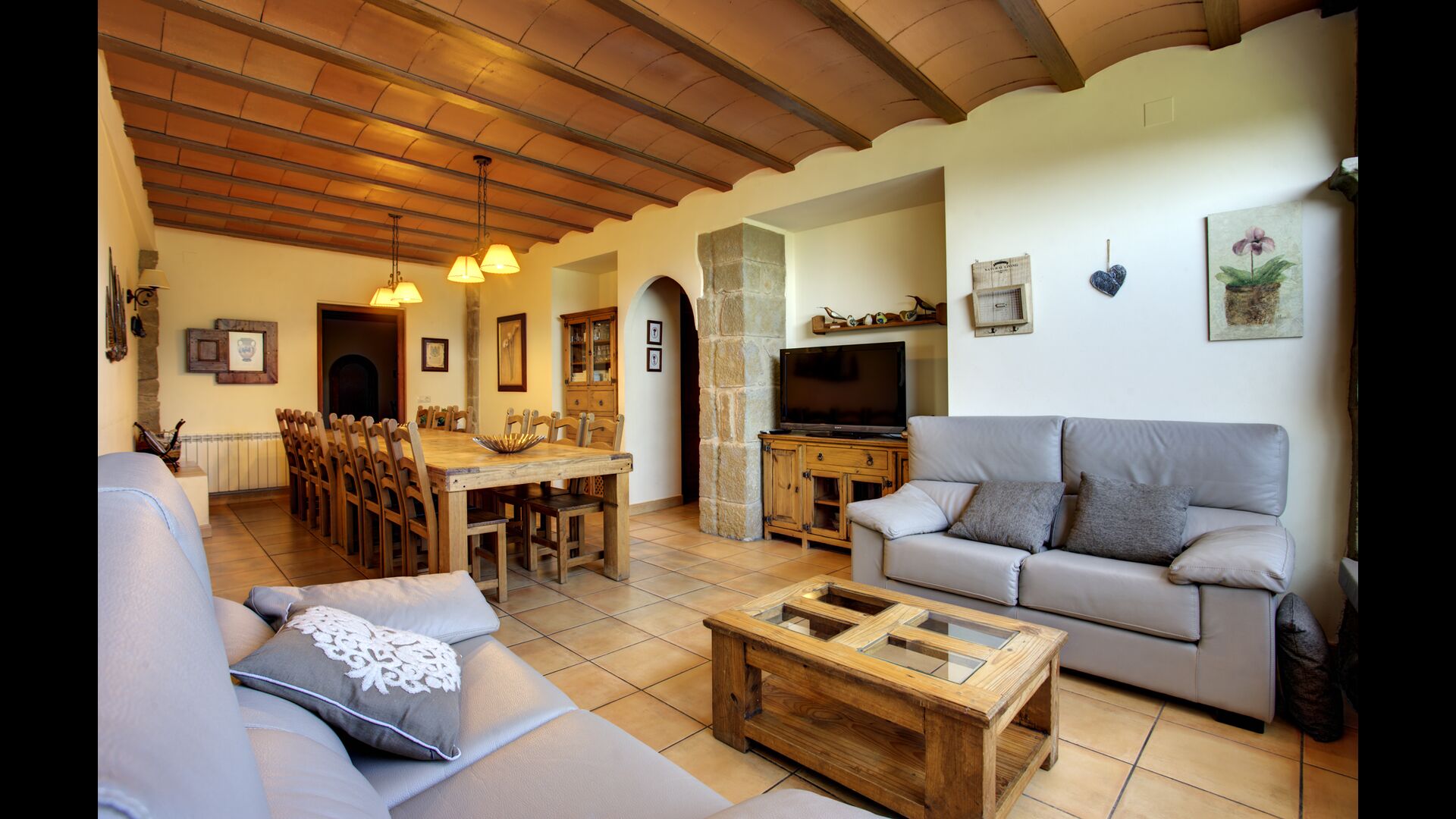 Casa Bosques stil er meget autentisk og typisk catalansk. Der er blandt andet et lille kapel ved siden af huset, og flere af de gamle stenvægge ses stadig indenfor. Dette forhindrer dog ikke ferieboligen i at være utrolig behagelig og moderne designet. Helt centralt og som naturligt samlingspunkt ligger stuen. Her er der et stort sofahjørne, hvorfra man kan se TV og samtidig nyde udsigten ud af de store panoramavinduer. Det ene køkken af de husets to køkkener, som er fuldt udstyret med alle nødvendige redskaber, er forbundet til dette alrum. Her er der bl.a. opvaskemaskine, mikroovn, ovn. Det andet køkken på anden sal er også grundig udstyret, hvortil der ligger en flot stue og et spiseområde.