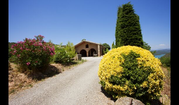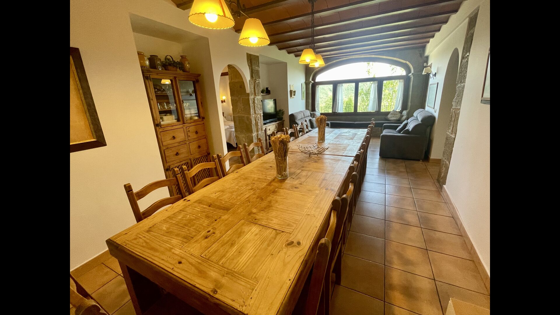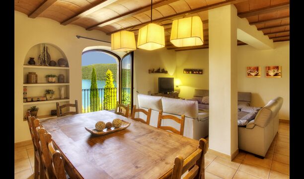 Foran huset ligger der et stort havebord med udsigt til søen. Da der er en BBQ zone med to store grill lige ved siden af, er det nærliggende at nyde de hjemmelavede måltider her. De lange og varme catalanske aftener er perfekte til dette.