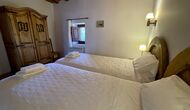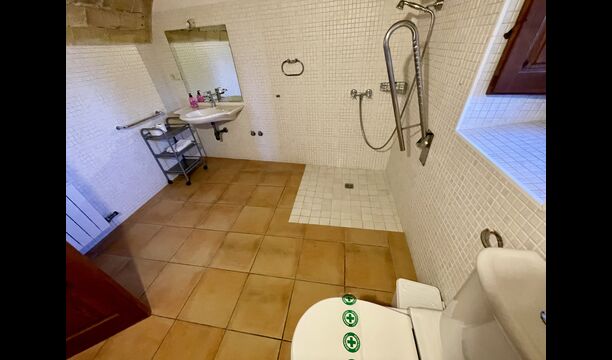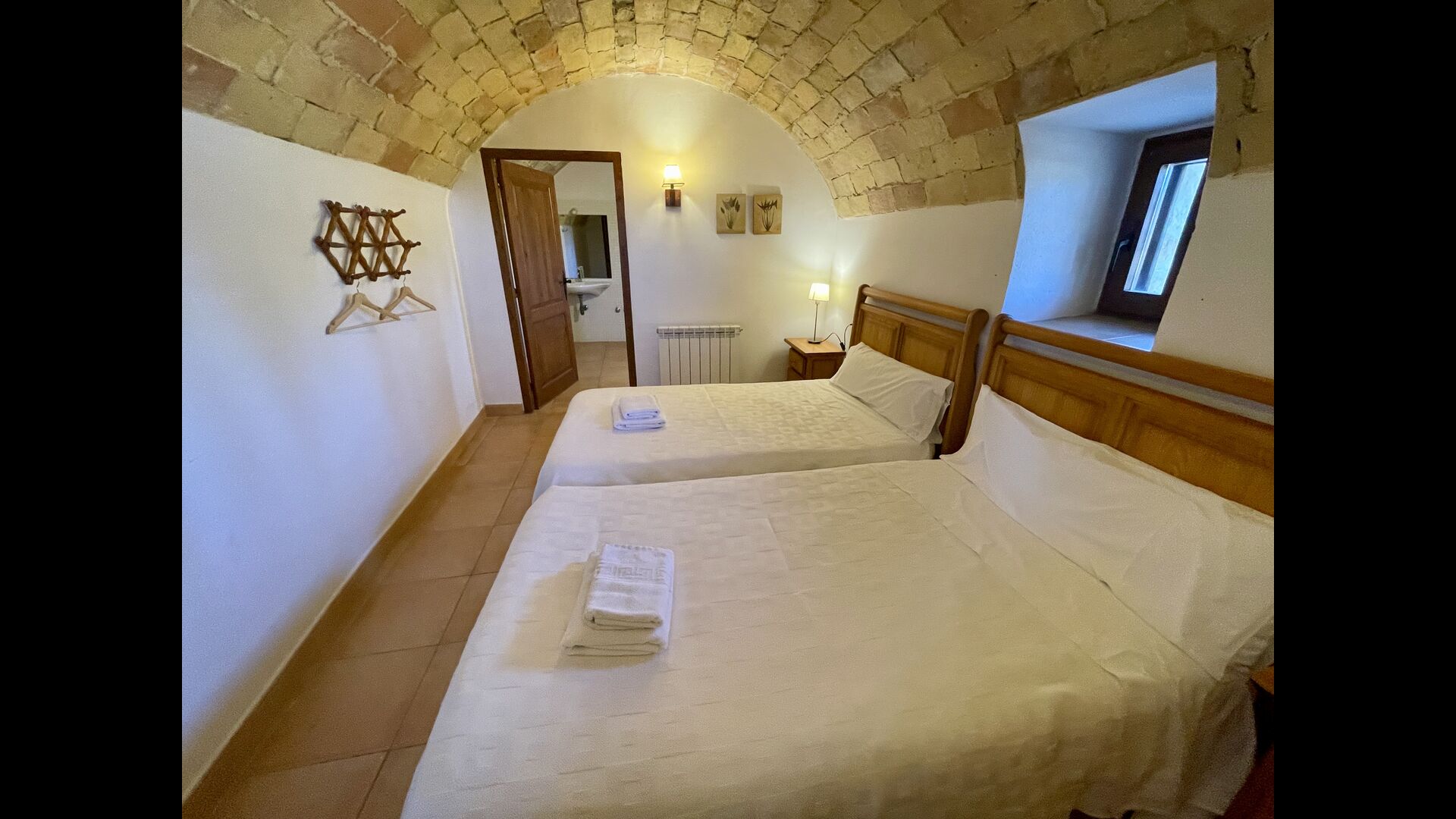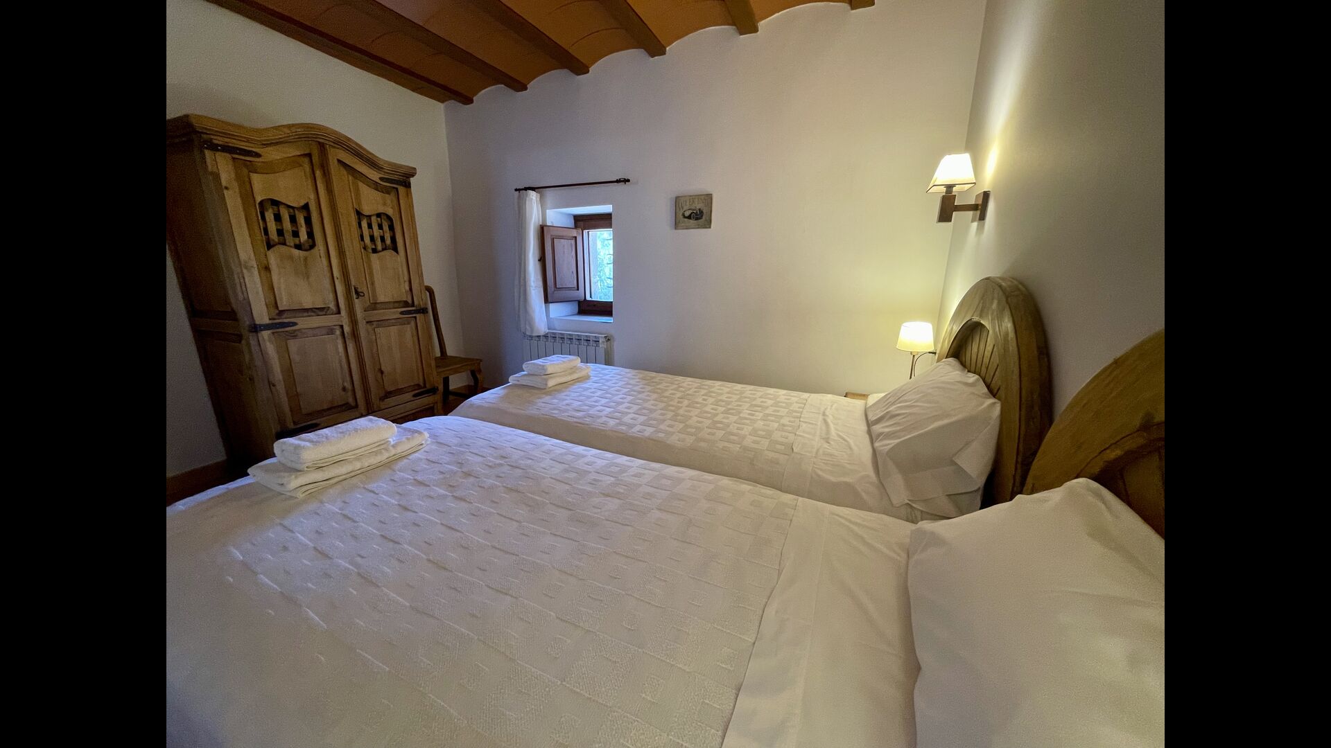 Der er i alt 9 soveværelser - alle dobbeltværelser fordelt på 8 enkeltsenge og 5 dobbeltsenge. Generelt for alle disse er den store rummelighed og rustikke, men stadig moderne, look. Soveværelserne er jævnt fordelt ud over huset: I stueetagen er der et værelse, som er tilpassede til handicappede. På første sal er der hele 5 værelser, og på anden sal er der 2 værelser. Endeligt er der i toppen på tredje sal også værelser. Alle enkeltsengene kan naturligvis skubbes sammen, hvis dette ønskes. Til alle disse soveværelser er der 4 rummelige badeværelser.