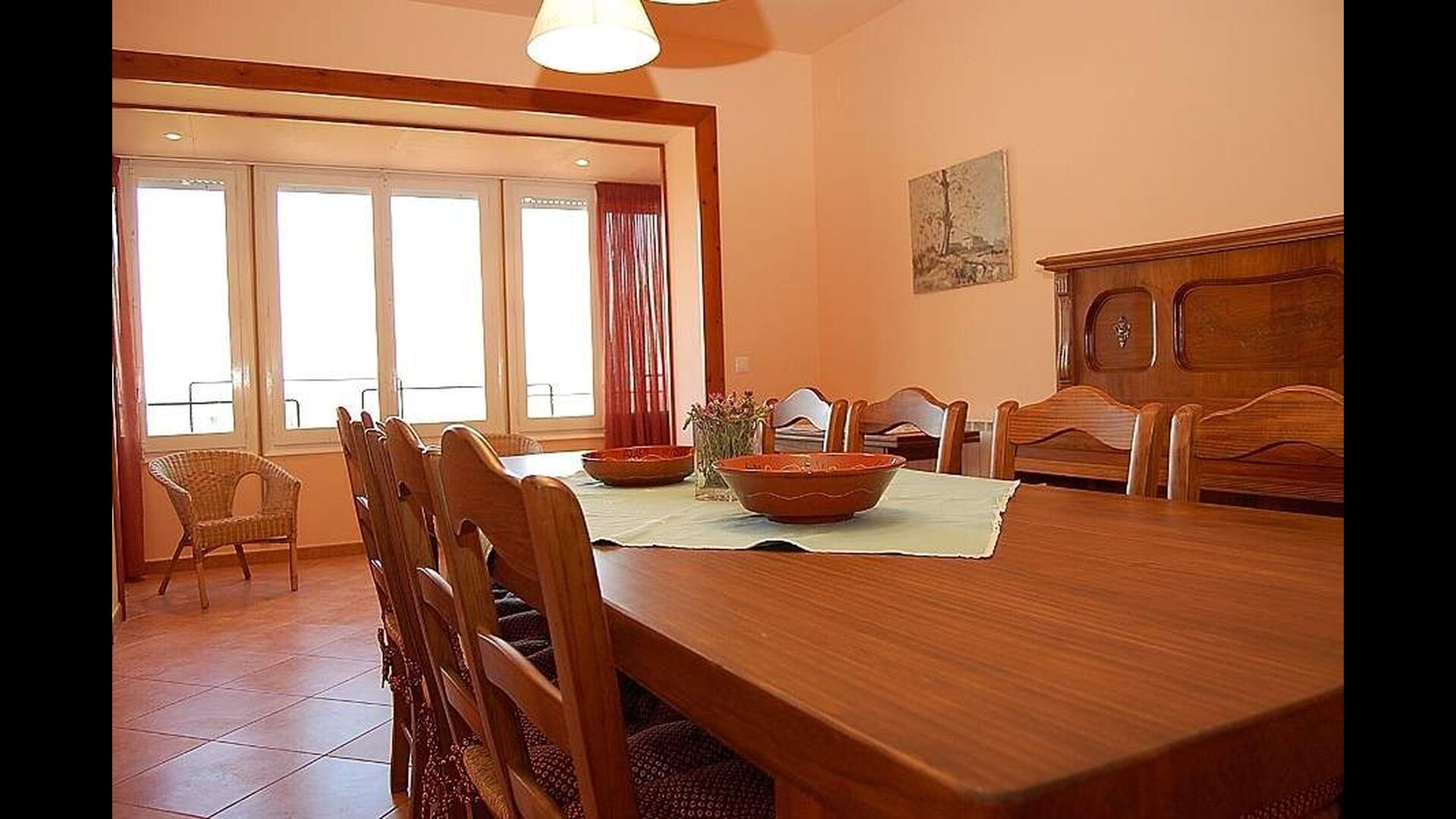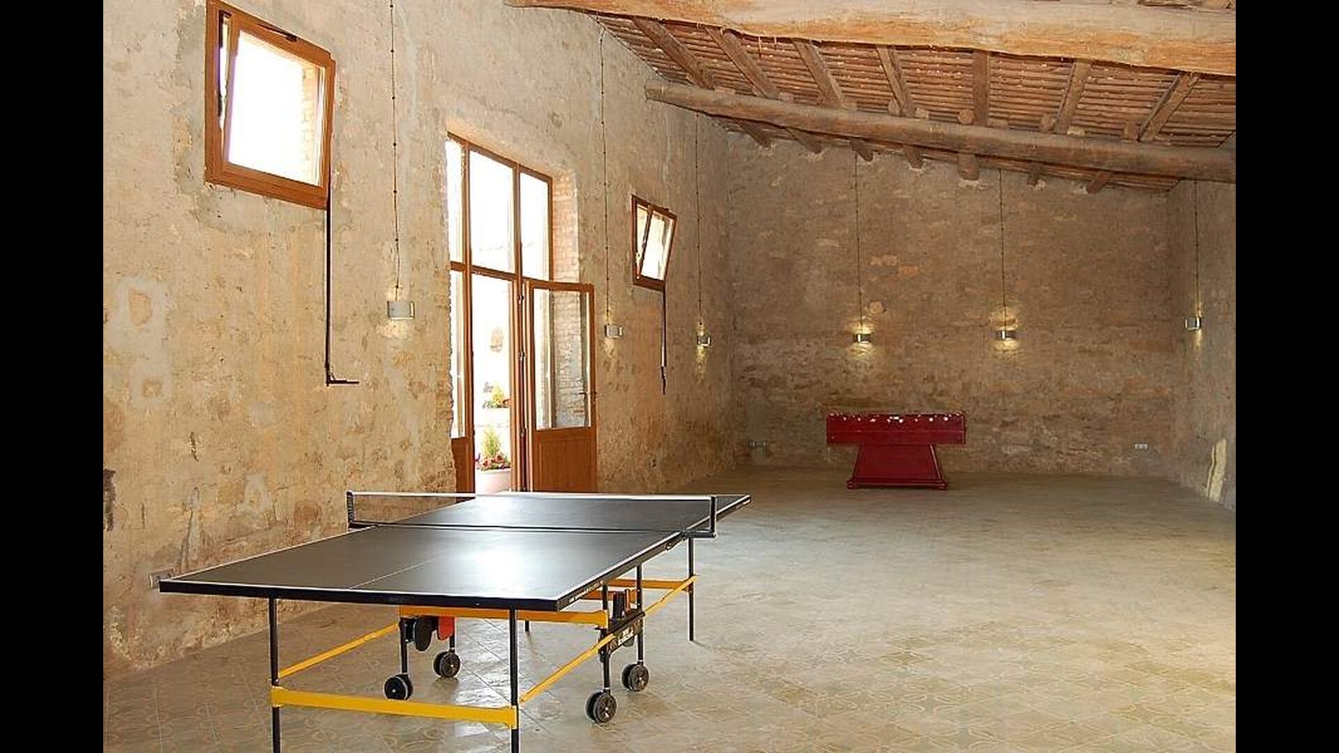 El Bosque consists has two floors. In the ground floor there is a family room (ping-pong), a service room with washing mashine, and a bathroom. In the first floor there is a dining-living room with fire place and exit to a nice terrace, with a beautiful view. Furthermore, there are four double rooms, two of them with individual beds and two of them with double beds. The rooms share two bathrooms.