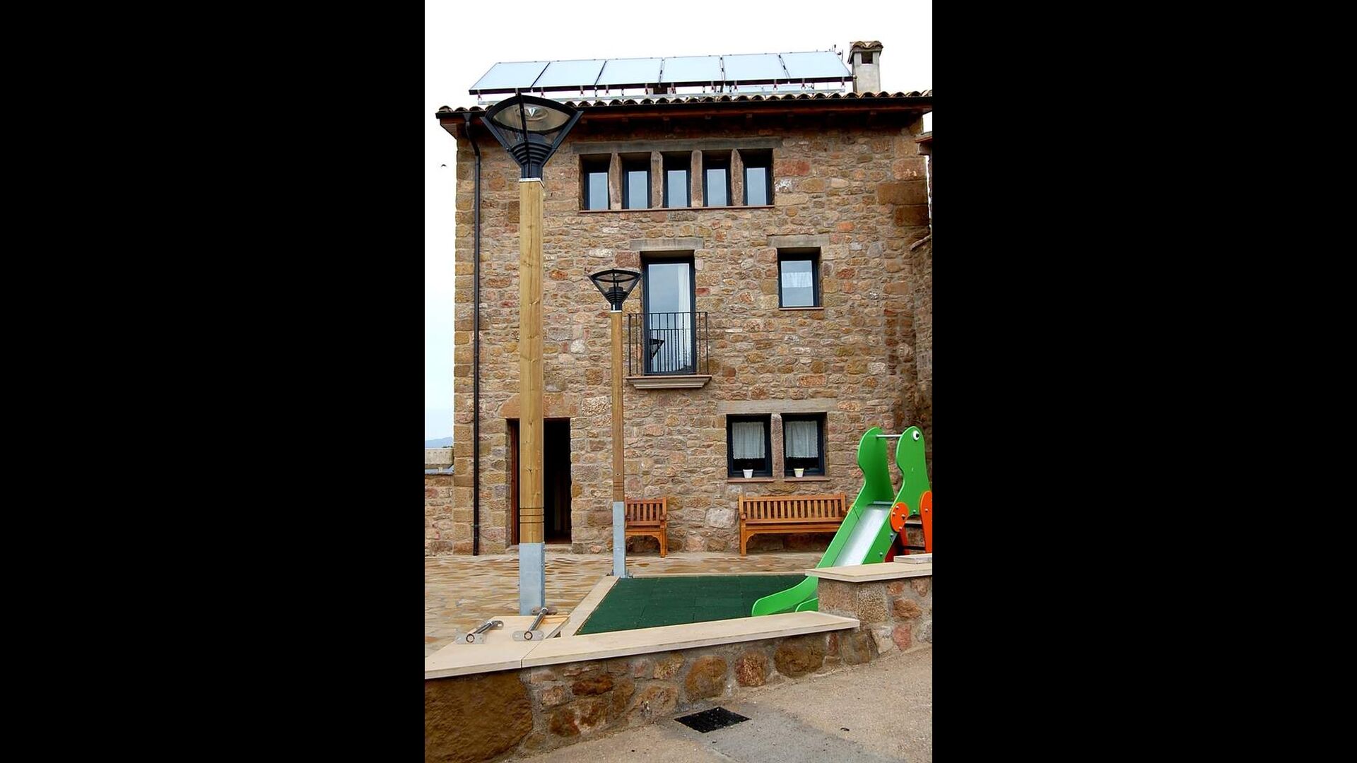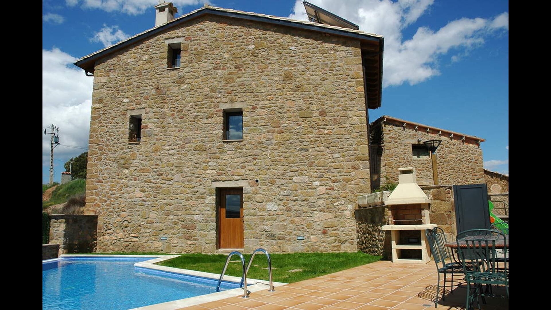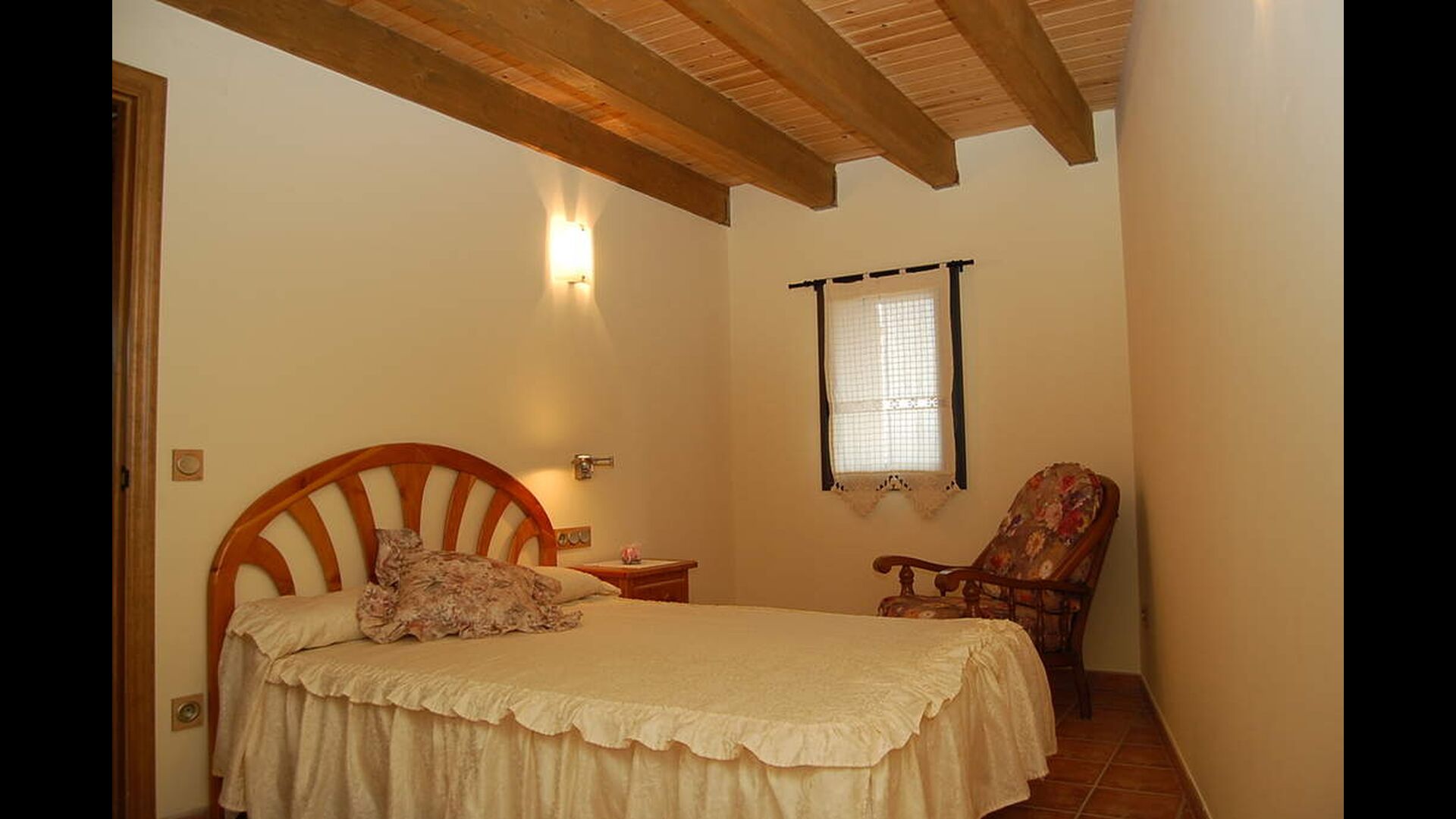 Huset har tre etager med en hyggelig indretningen. Stilen er traditionel katalansk bl.a. med kalkstensvægge og træbjælker i loftet. Det skaber en afslappet atmosfære og plads til at hygge sig. Fællesrummene findes på underetagen i huset, herunder et meget veludstyret køkken, spisestue med et stort bord og et et sofahjørne med komfortable sofaer og et tv.