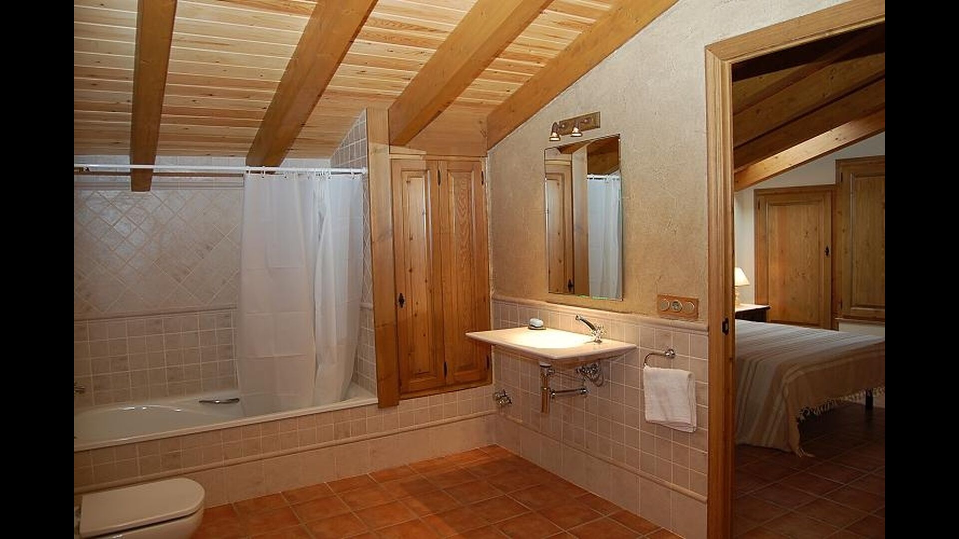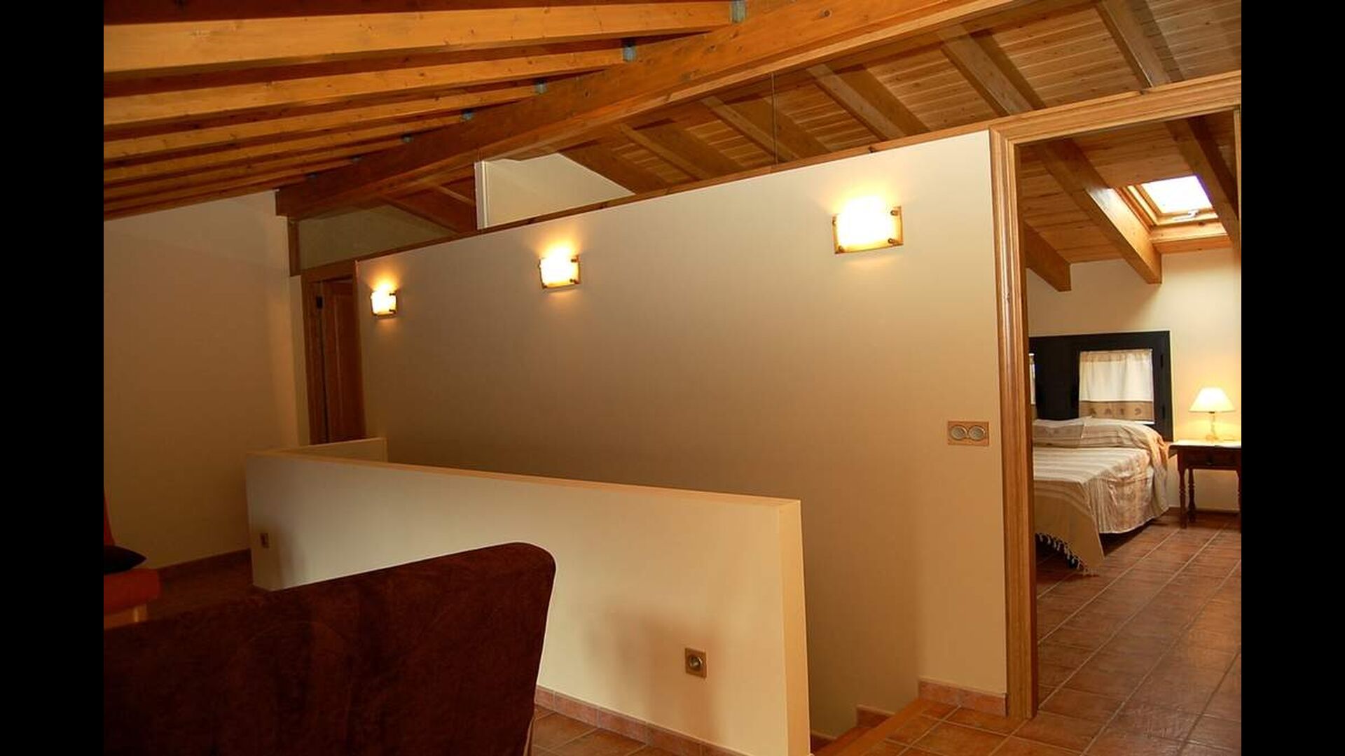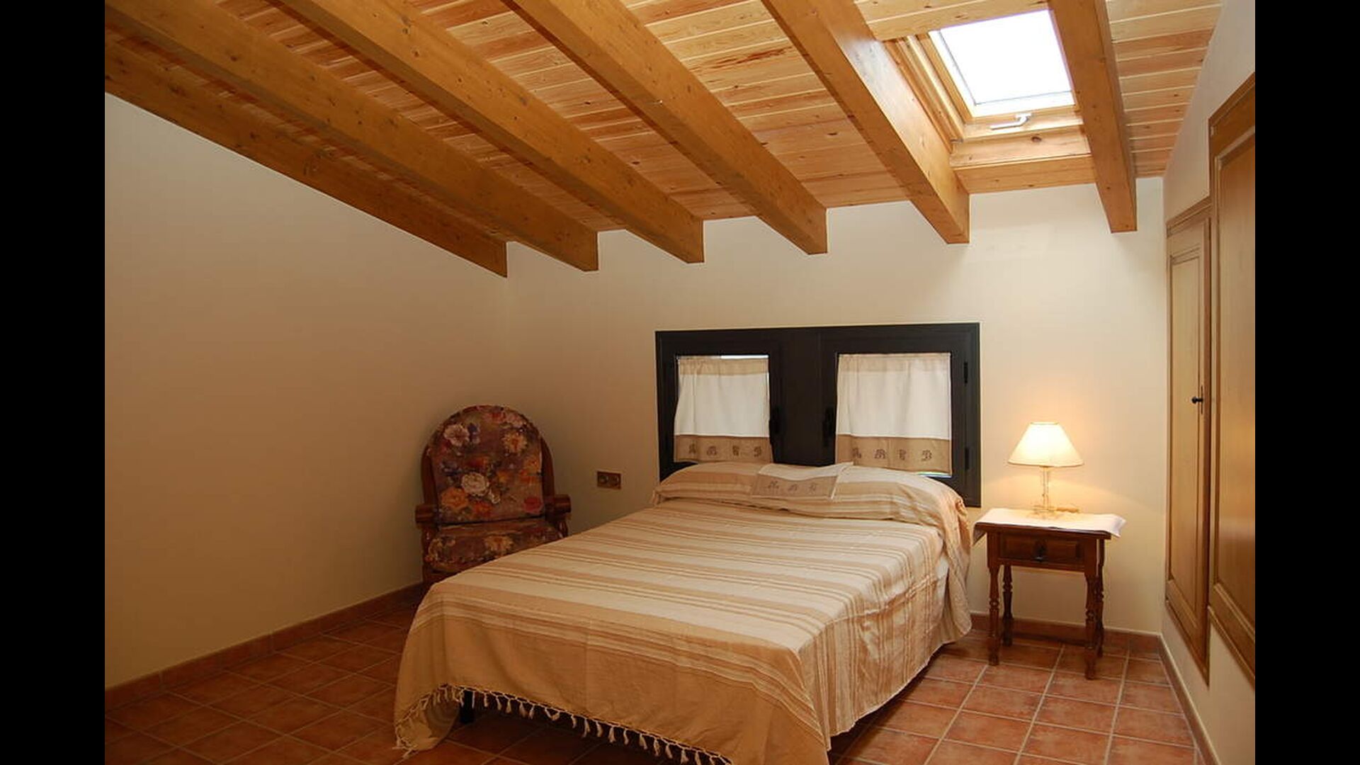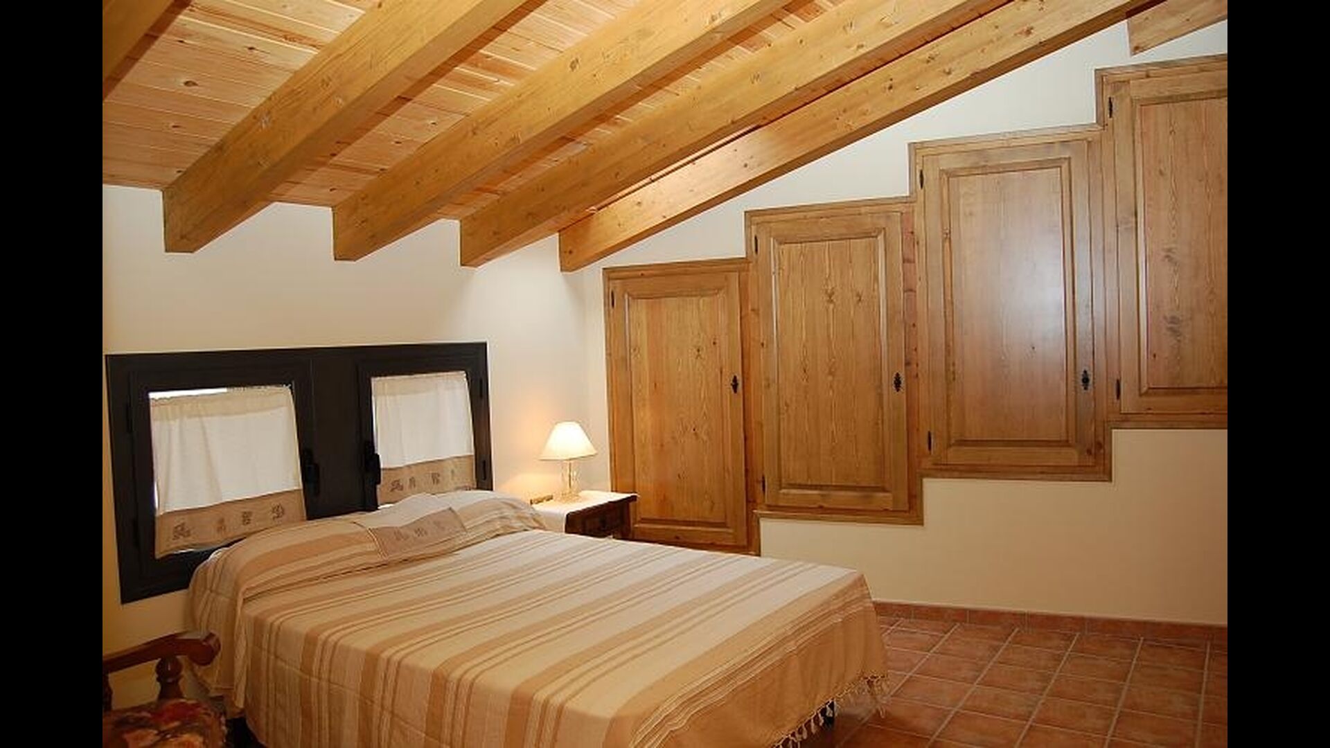 Huset har tre etager med en hyggelig indretningen. Stilen er traditionel katalansk bl.a. med kalkstensvægge og træbjælker i loftet. Det skaber en afslappet atmosfære og plads til at hygge sig. Fællesrummene findes på underetagen i huset, herunder et meget veludstyret køkken, spisestue med et stort bord og et et sofahjørne med komfortable sofaer og et tv.