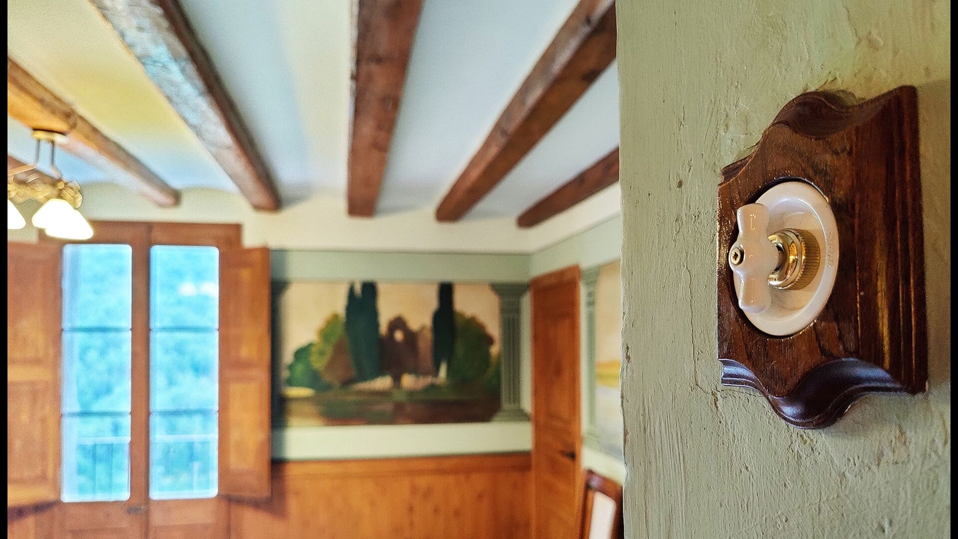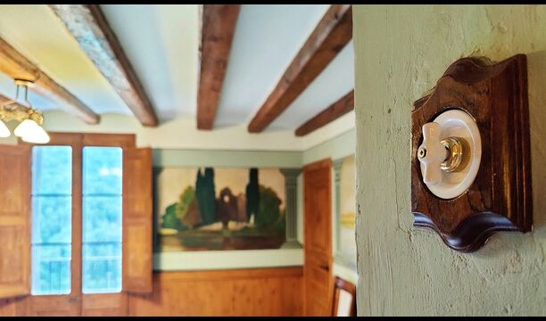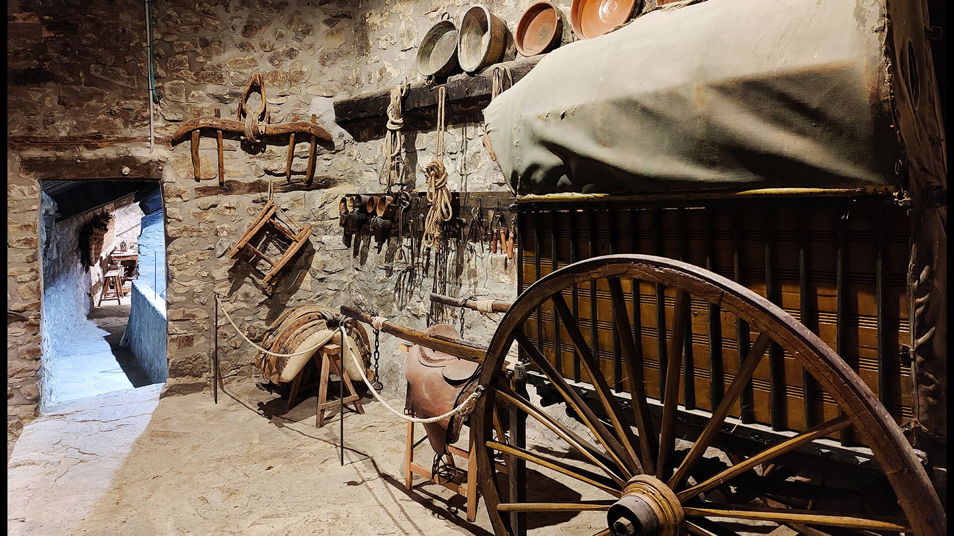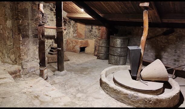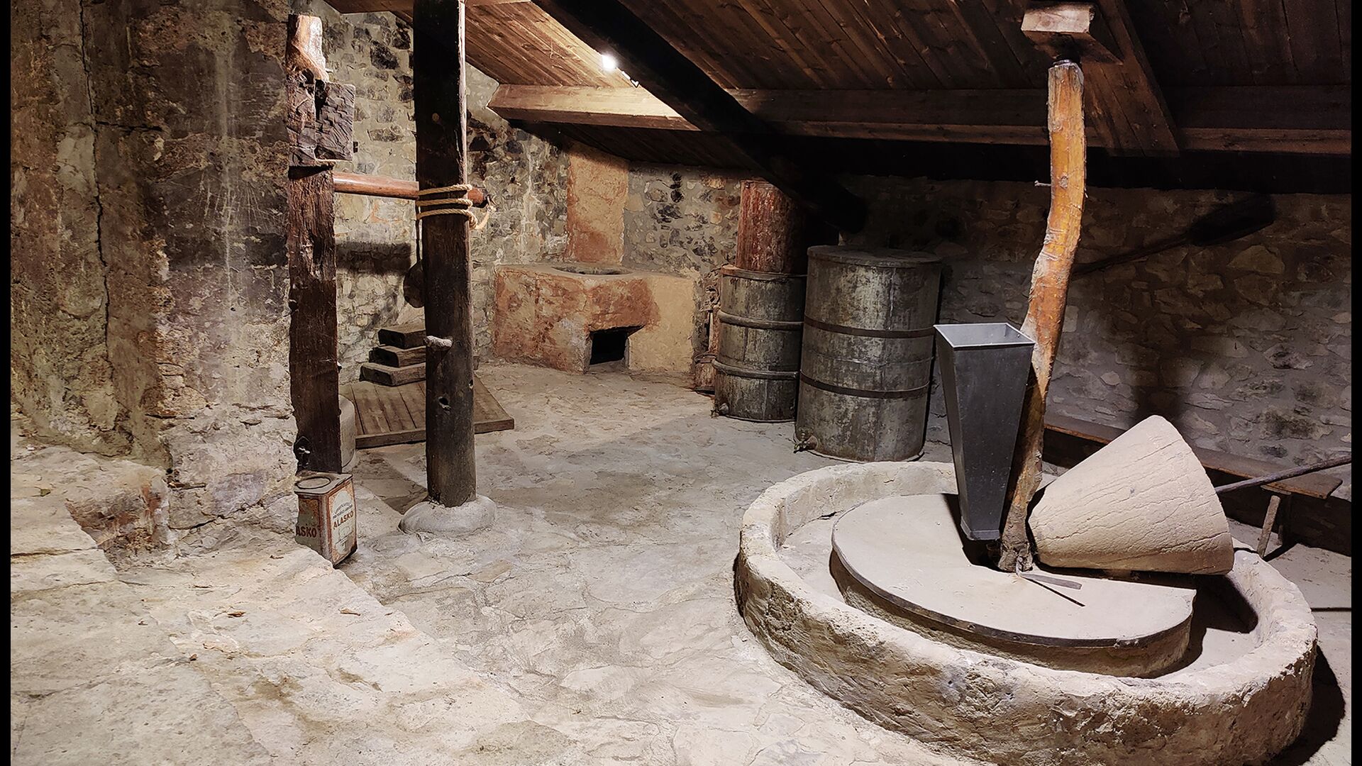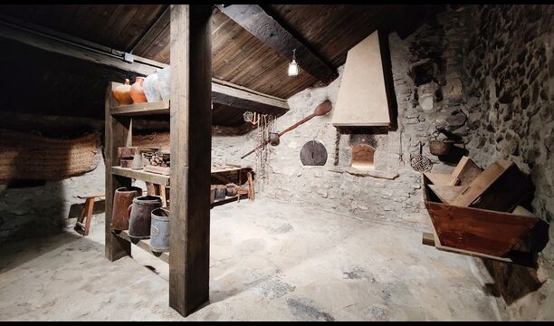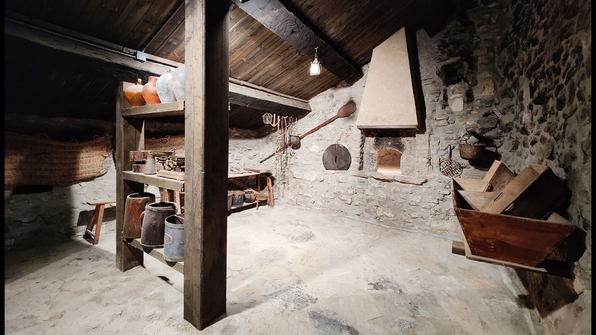 Ejendommen har tykke stenmure, en massiv træindgang og endda bevarede fresker fra det 18. århundrede, som afspejler den lange historie bag denne traditionelle landejendom. Et lille kapel og et museum i tilknytning til huset viser redskaber og rum, der illustrerer hverdagen i et selvforsynende bjerglandbrug i tidligere tider.