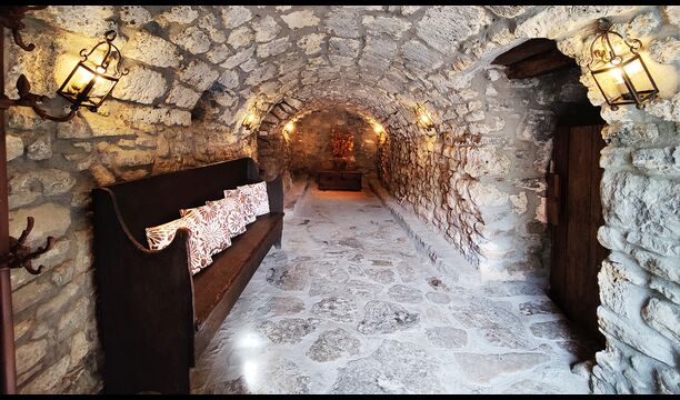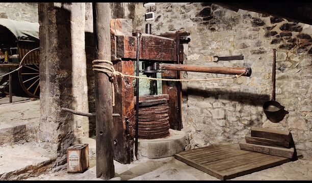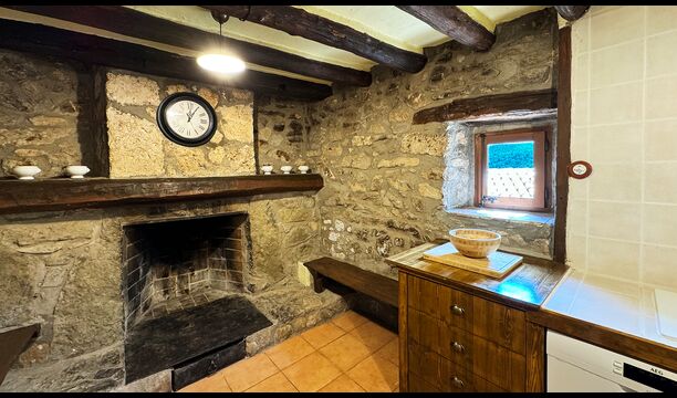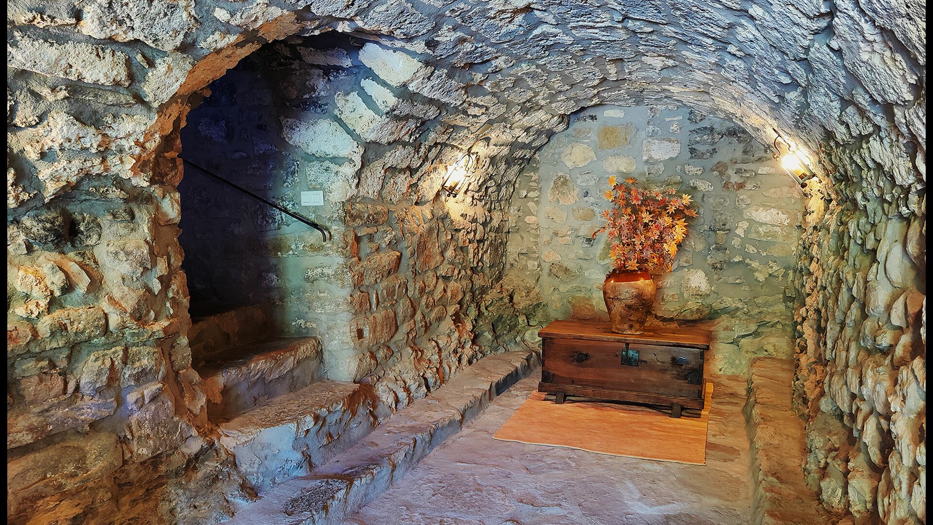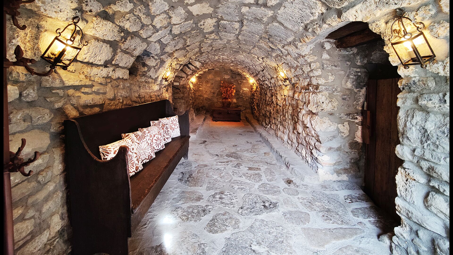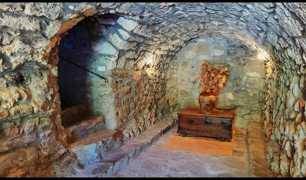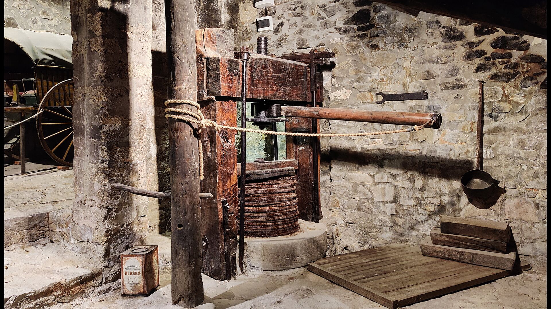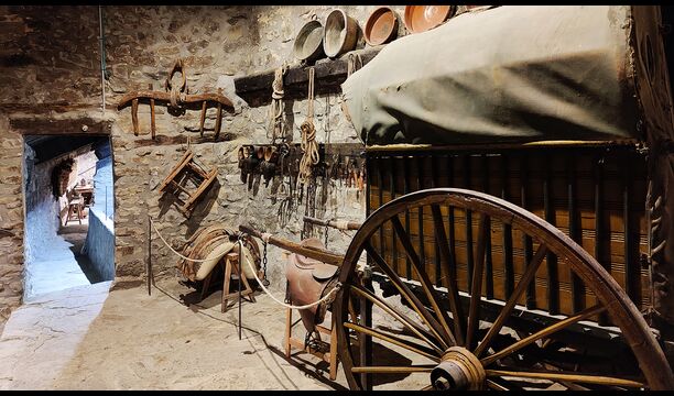 Ejendommen har tykke stenmure, en massiv træindgang og endda bevarede fresker fra det 18. århundrede, som afspejler den lange historie bag denne traditionelle landejendom. Et lille kapel og et museum i tilknytning til huset viser redskaber og rum, der illustrerer hverdagen i et selvforsynende bjerglandbrug i tidligere tider.