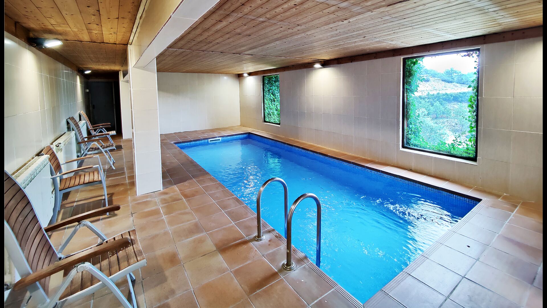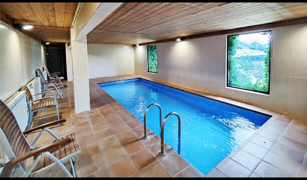 Ejendommen har en privat udendørs swimmingpool med liggestole og en have med gynger til børn. I en tilstødende bygning finder gæster også en opvarmet indendørs pool samt en overdækket grillterrasse, så man kan bade og spise udendørs hele året.