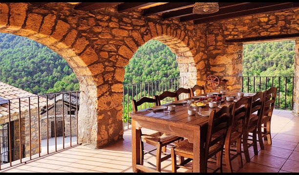 Can de Toriña er en imponerende historisk catalansk masia fra det 10. århundrede, beliggende i det smukke bjerglandskab i de catalanske Pyrenæer nær landsbyen Coll de Nargó i Alt Urgell-regionen. Huset er nænsomt restaureret og kombinerer traditionel pyrenæisk arkitektur med moderne komfort, samtidig med at det bevarer sin oprindelige charme og historiske karakter.