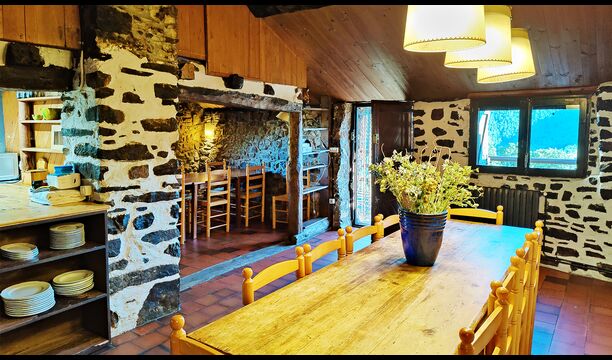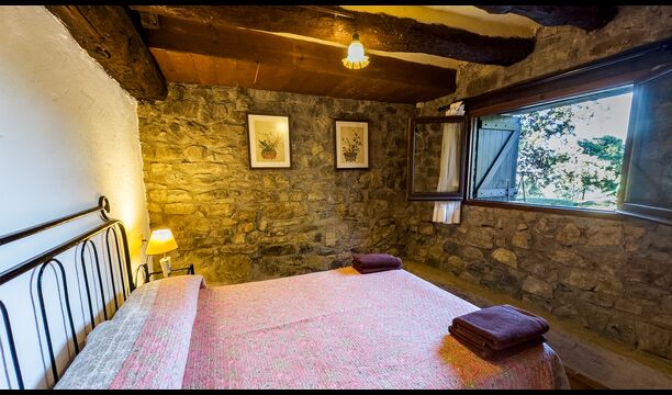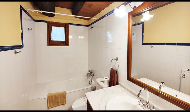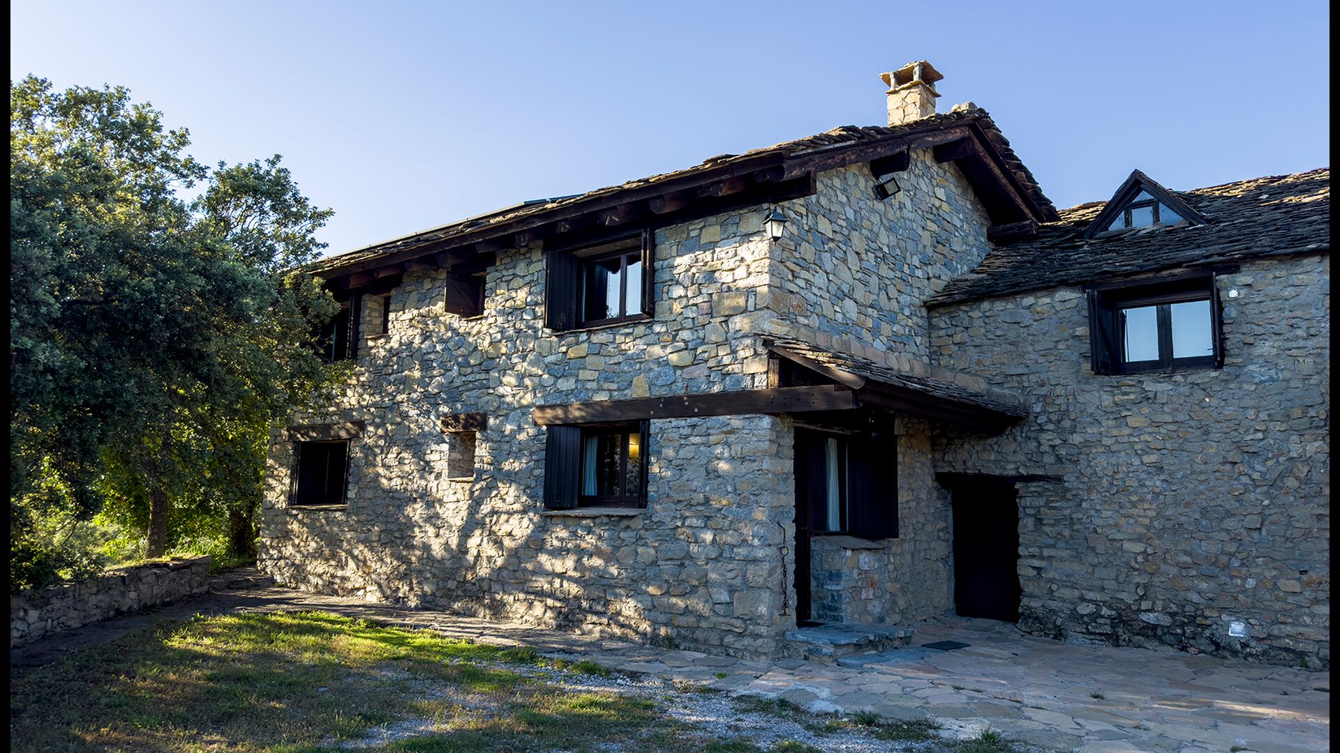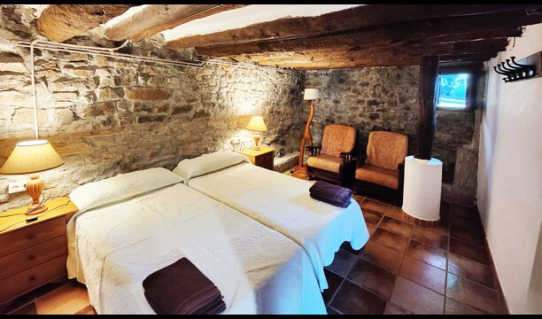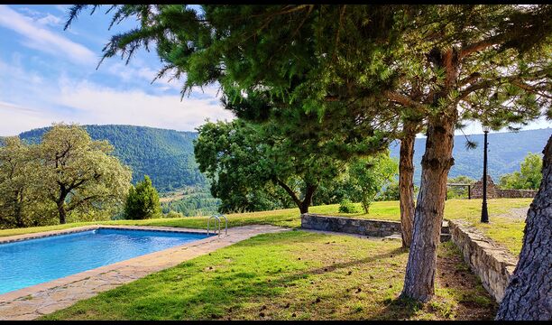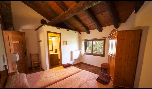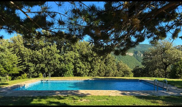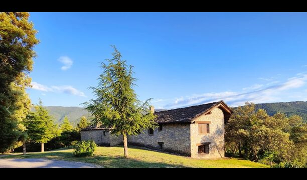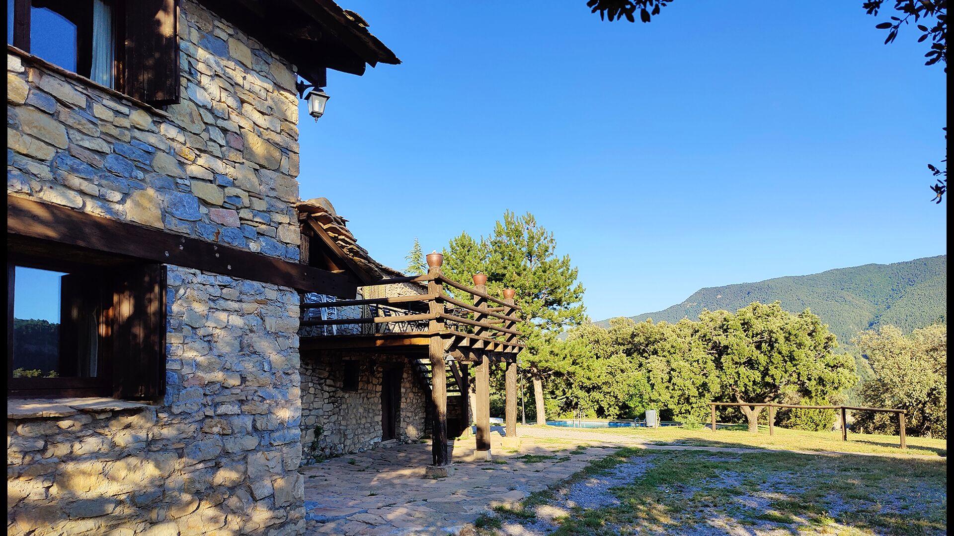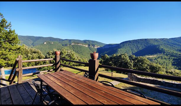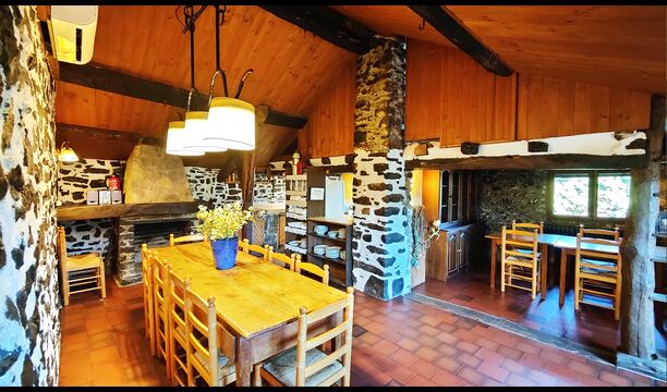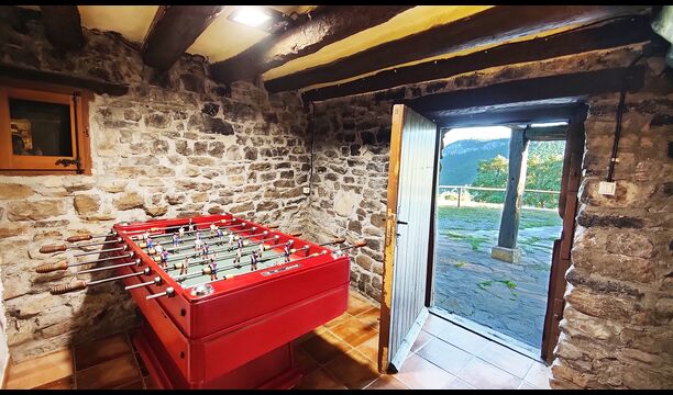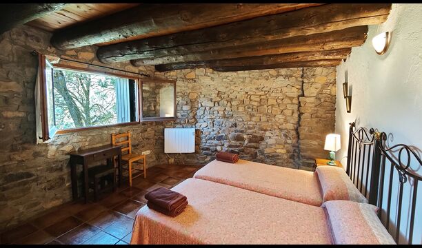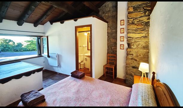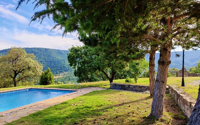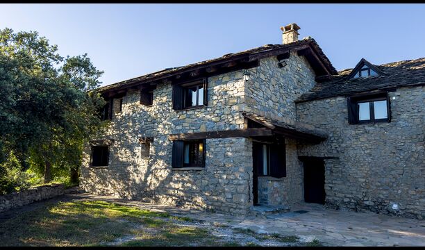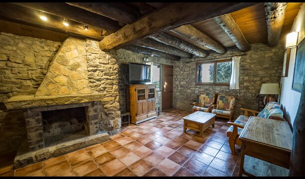 Ejendommen kombinerer traditionel pyrenæisk arkitektur – stenvægge, træelementer og varme naturmaterialer – med moderne komfort. De rummelige fællesområder og udendørs terrasser gør huset perfekt til lange sommerdage, fælles måltider og afslapning med panoramaudsigt over bjergene.