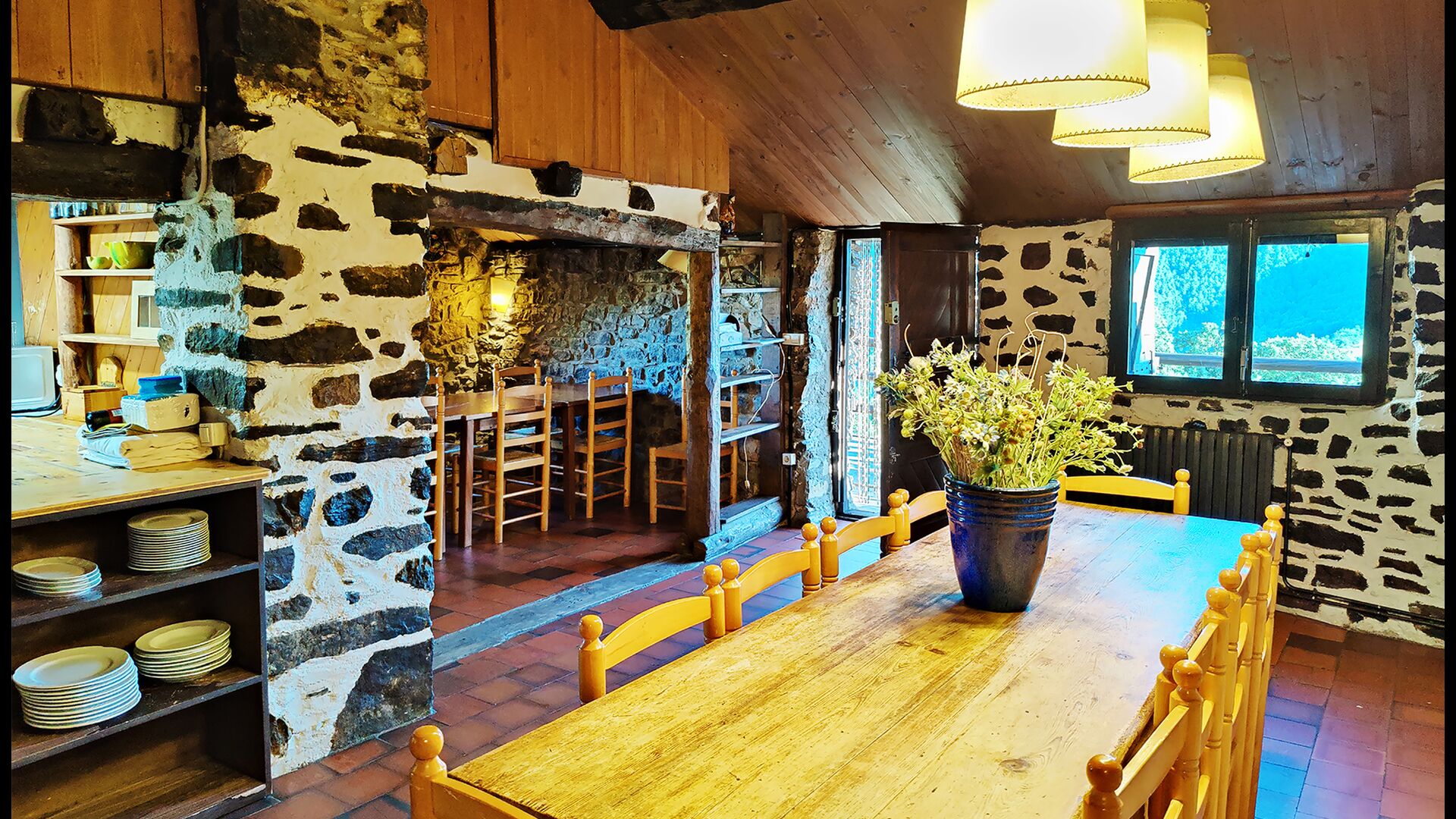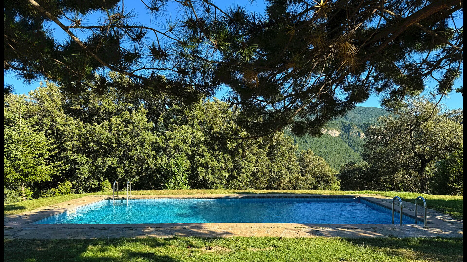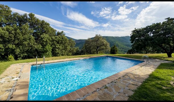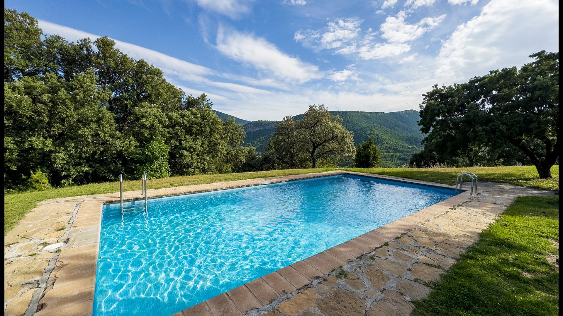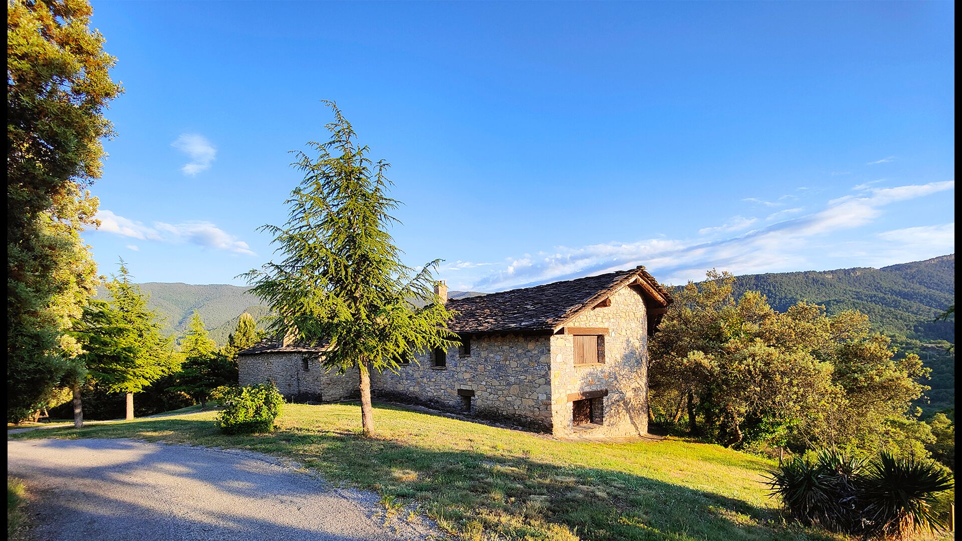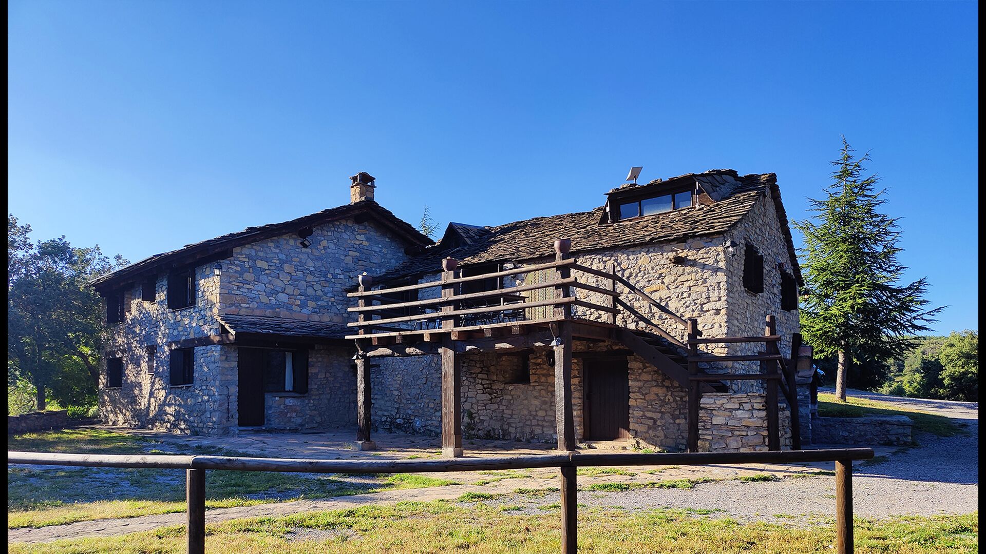 Ejendommen kombinerer traditionel pyrenæisk arkitektur – stenvægge, træelementer og varme naturmaterialer – med moderne komfort. De rummelige fællesområder og udendørs terrasser gør huset perfekt til lange sommerdage, fælles måltider og afslapning med panoramaudsigt over bjergene.
