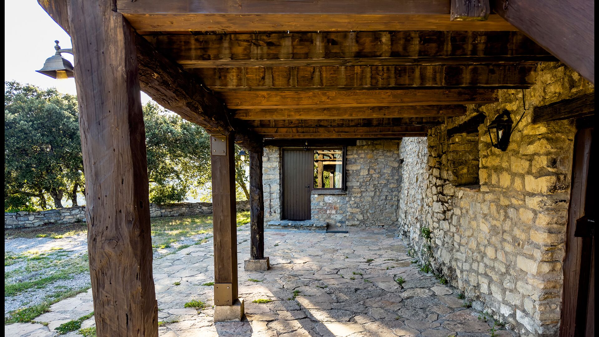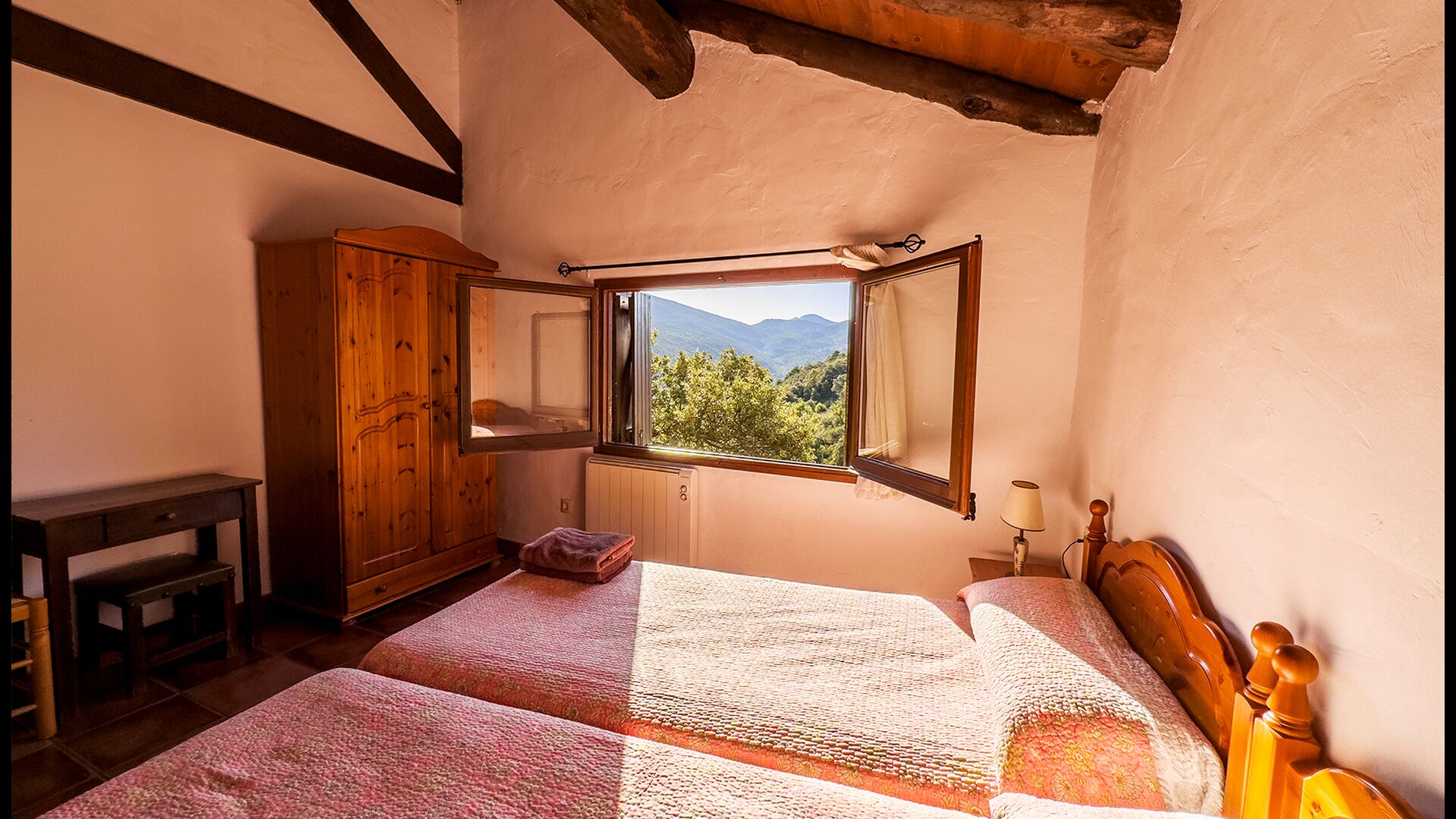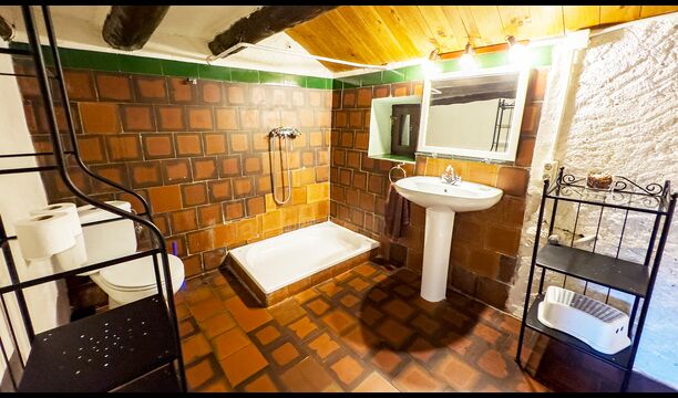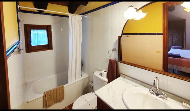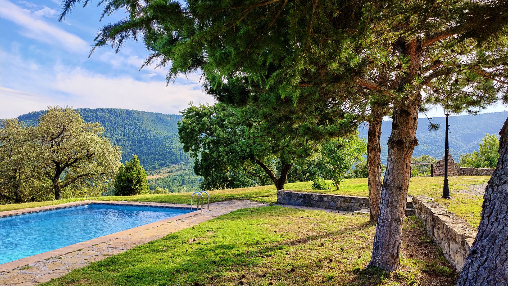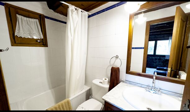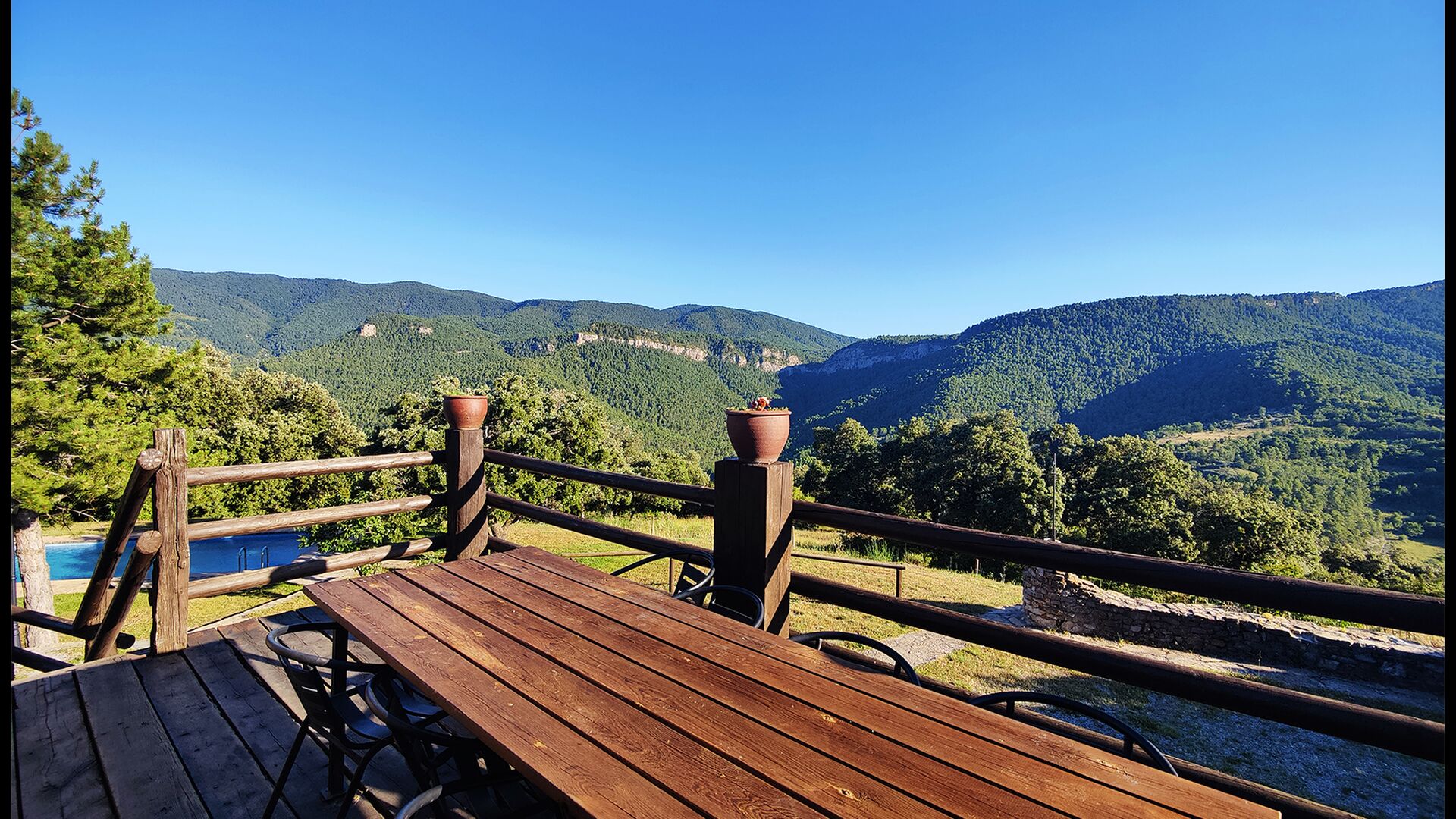 Ejendommen kombinerer traditionel pyrenæisk arkitektur – stenvægge, træelementer og varme naturmaterialer – med moderne komfort. De rummelige fællesområder og udendørs terrasser gør huset perfekt til lange sommerdage, fælles måltider og afslapning med panoramaudsigt over bjergene.