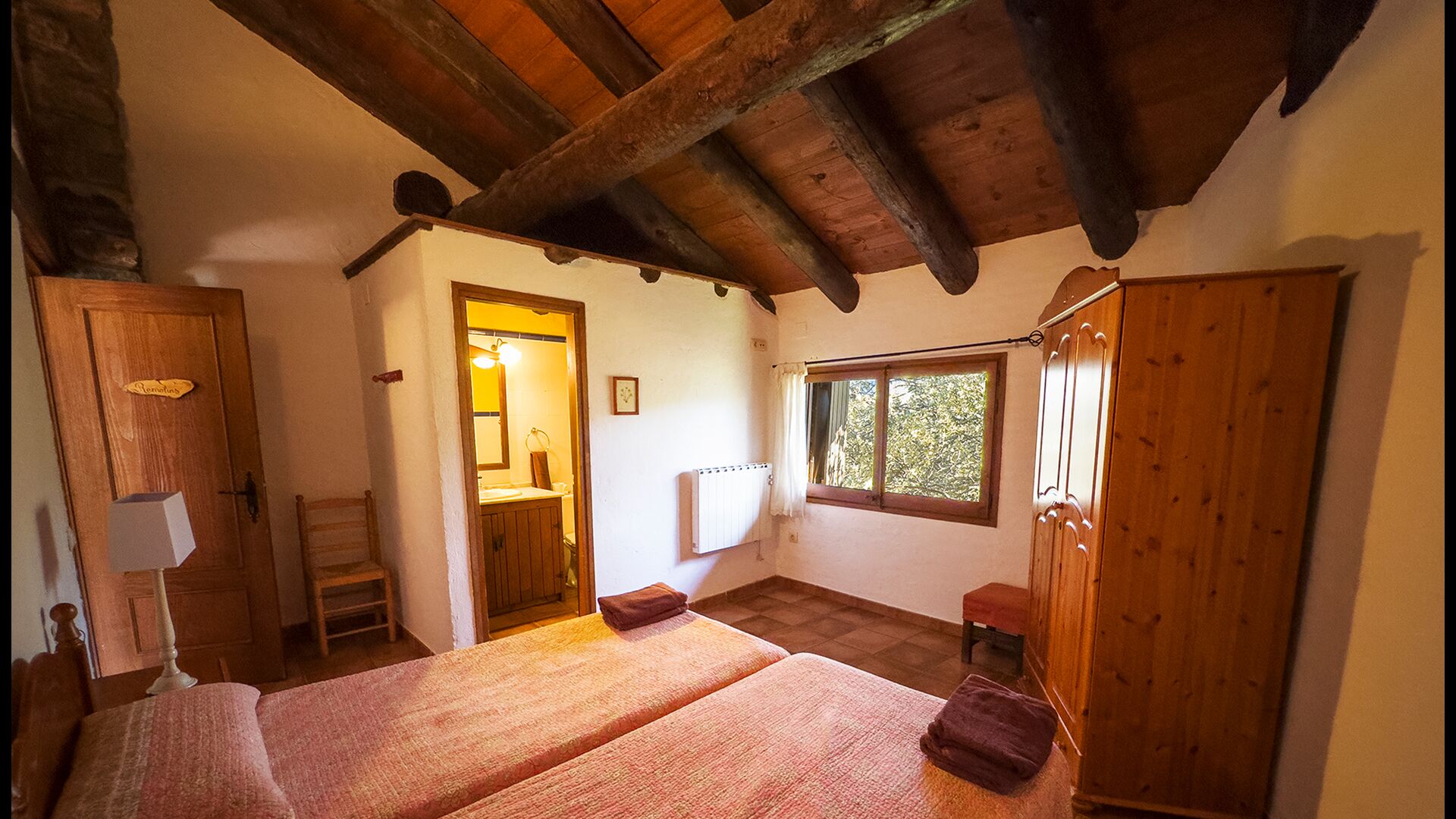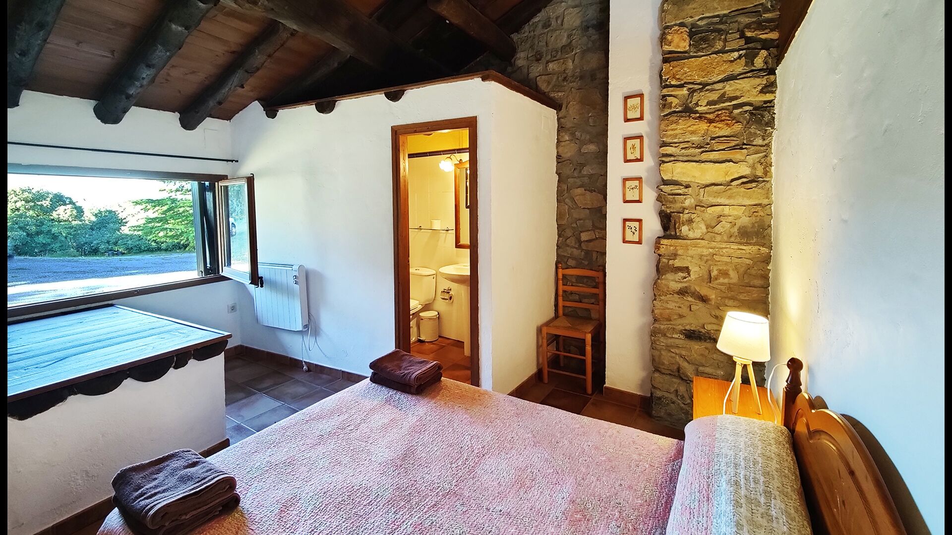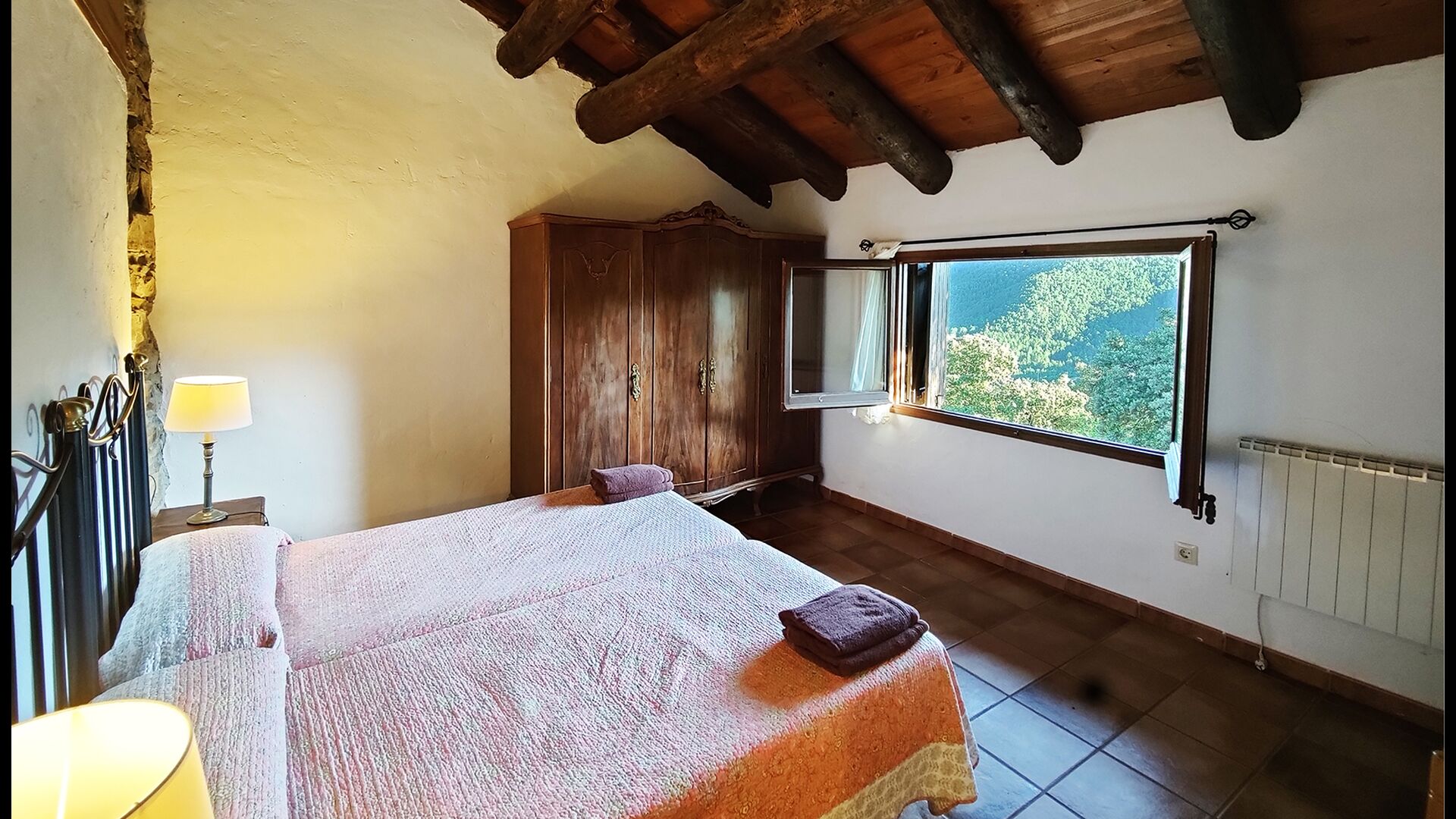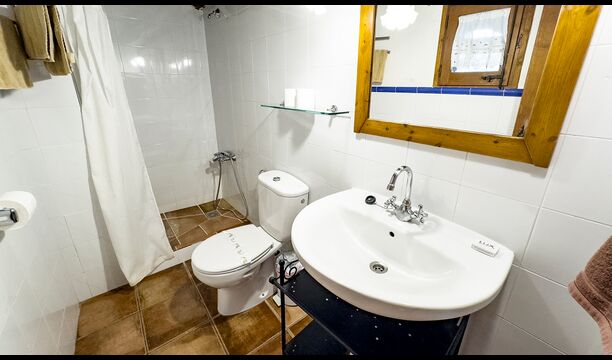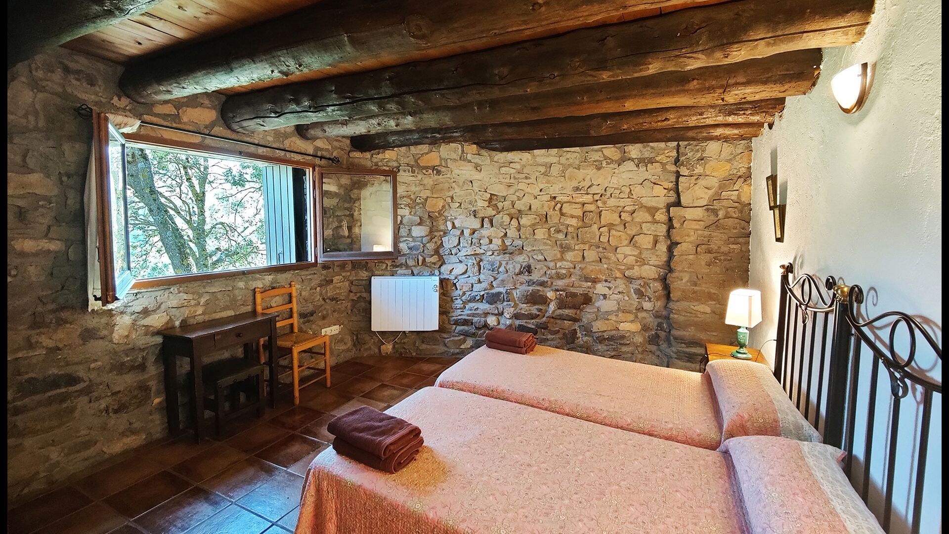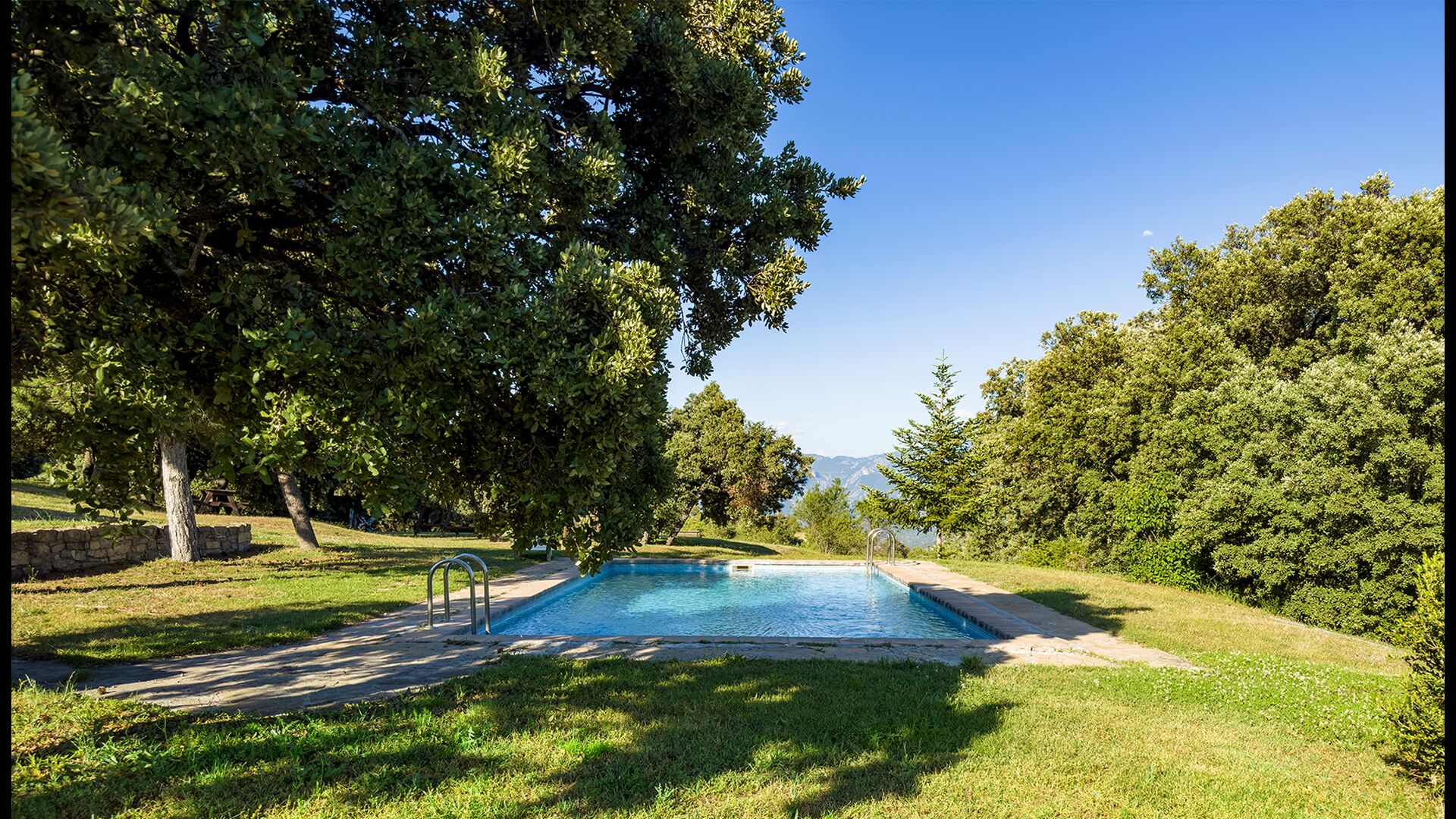 Ejendommen kombinerer traditionel pyrenæisk arkitektur – stenvægge, træelementer og varme naturmaterialer – med moderne komfort. De rummelige fællesområder og udendørs terrasser gør huset perfekt til lange sommerdage, fælles måltider og afslapning med panoramaudsigt over bjergene.