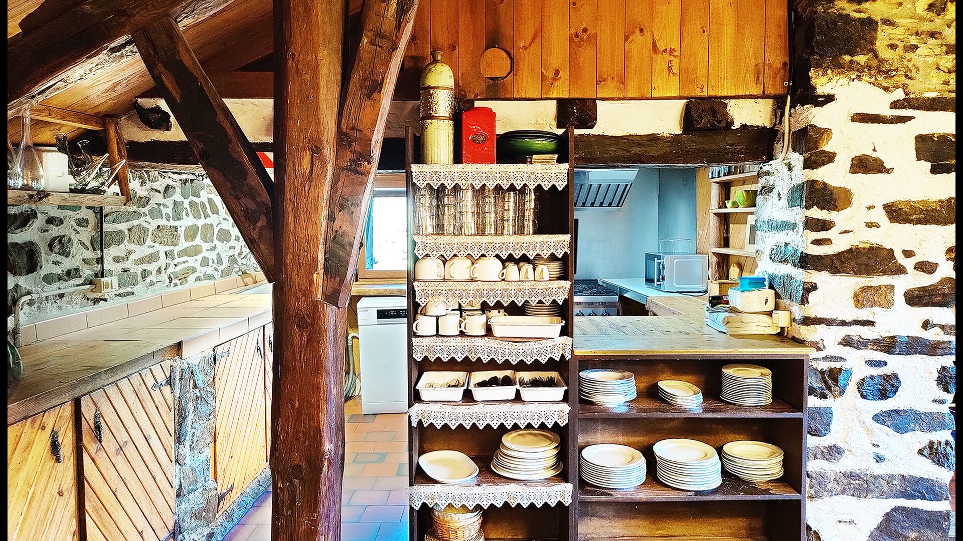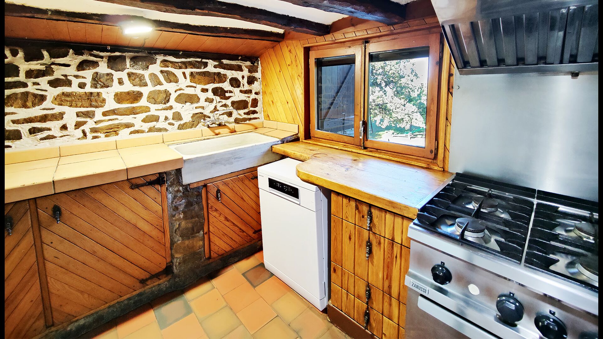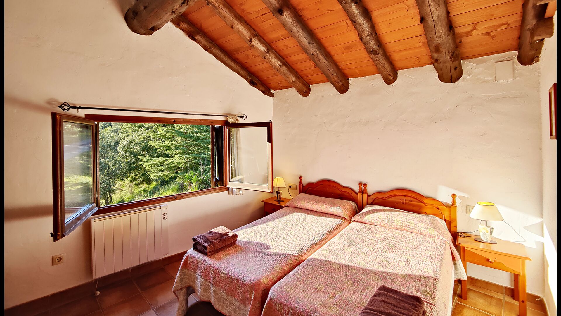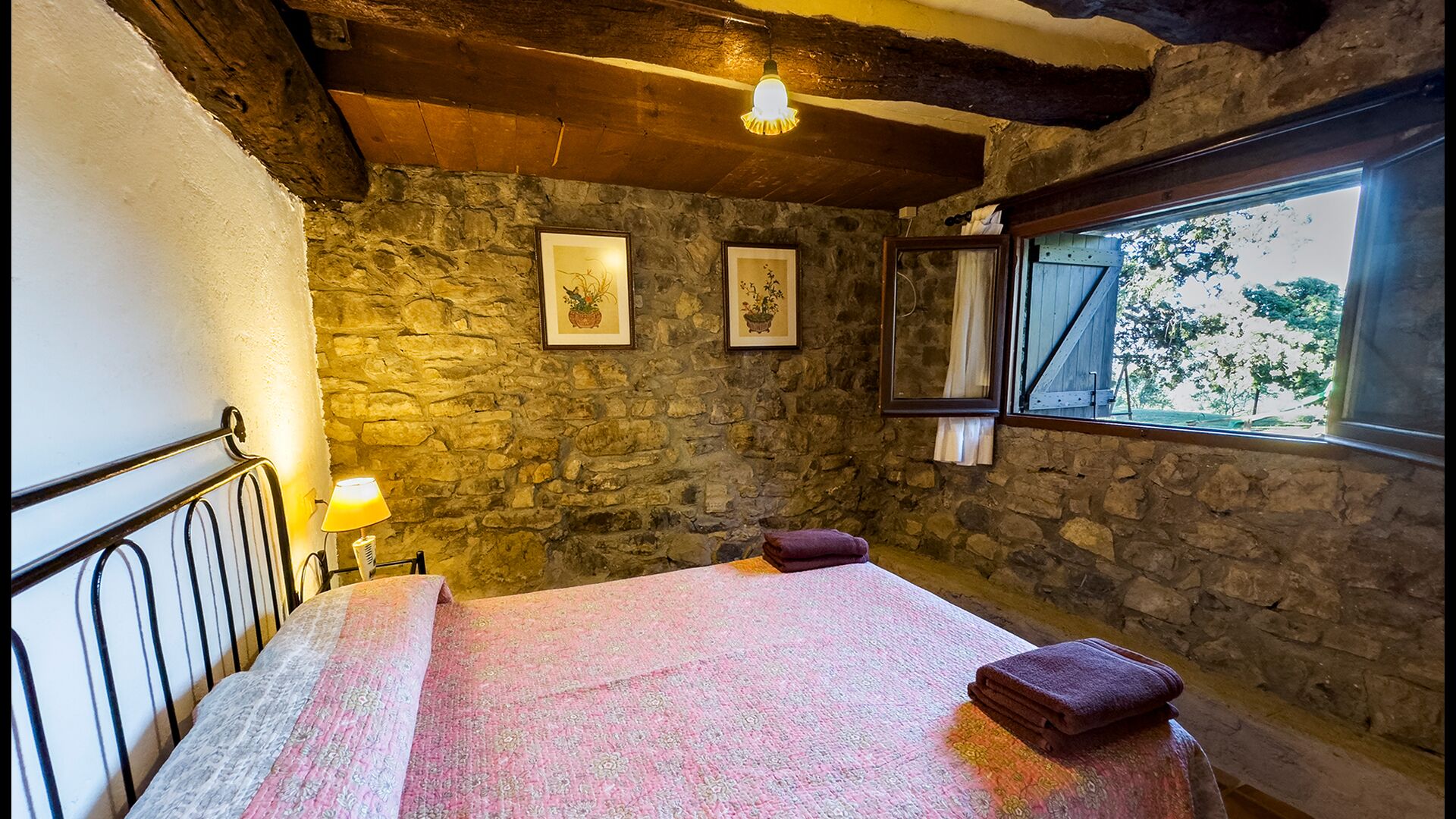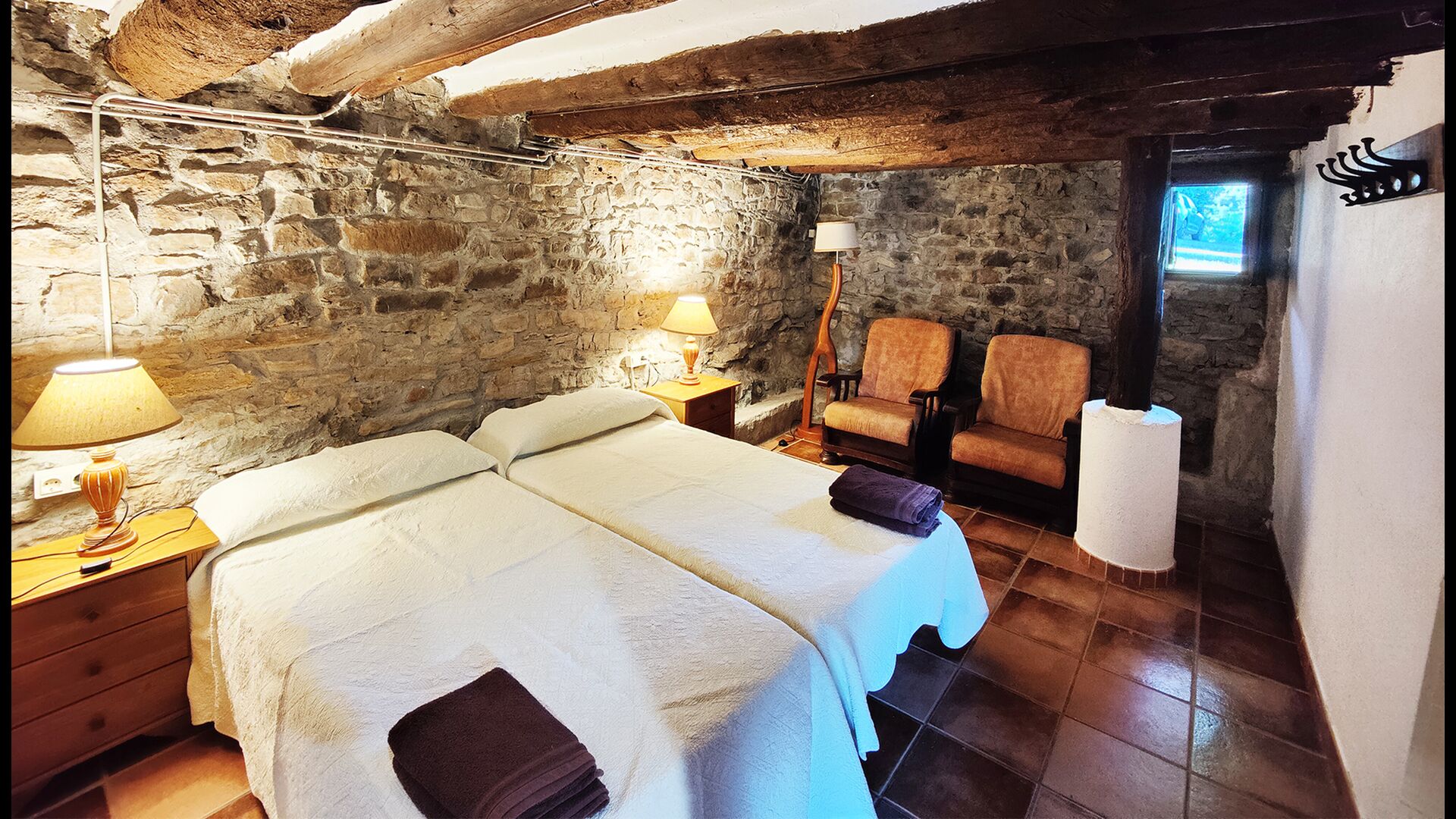 Ejendommen kombinerer traditionel pyrenæisk arkitektur – stenvægge, træelementer og varme naturmaterialer – med moderne komfort. De rummelige fællesområder og udendørs terrasser gør huset perfekt til lange sommerdage, fælles måltider og afslapning med panoramaudsigt over bjergene.