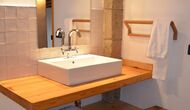 Til alle soveværelser er der en suite badeværelser. Disse er alle meget moderne og rummeligt indrettet, og der er i alt 3 badekar og 6 brusebad fordelt på de 7 badeværelser.