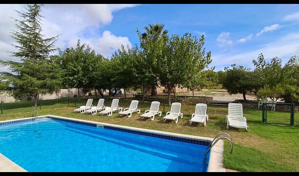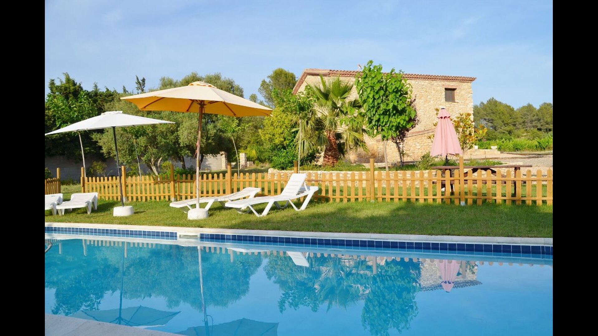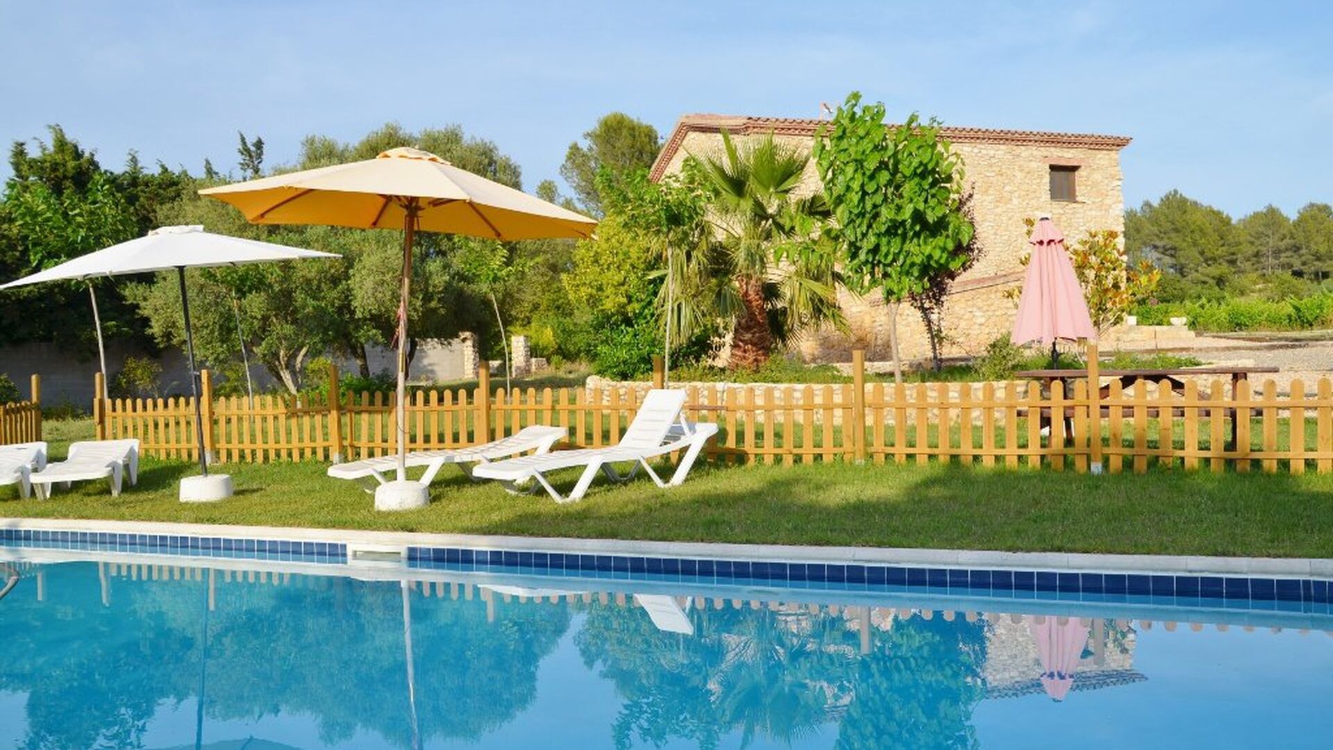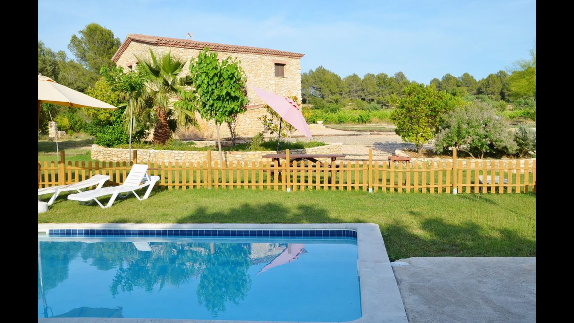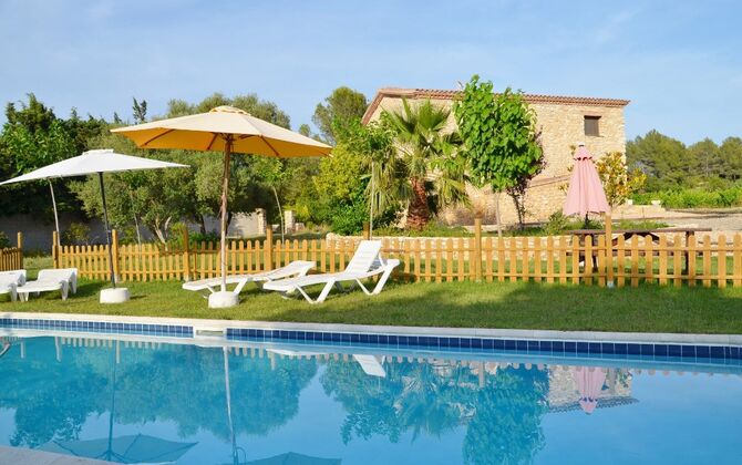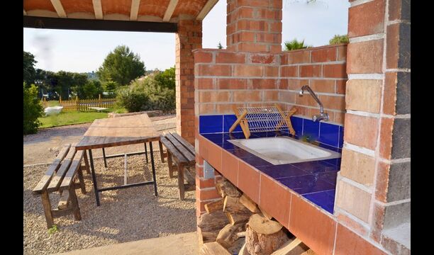 Huset, der ligger med vinmarker i baggrunden, har en flot udsigt over landskabet. Det er grundlæggende, men funktionelt udstyret. Haven er stor og flot, og der er mulighed for at spise udenfor. Derudover er der en swimmingpool på 55 m2– denne er indhegnet, så man ikke hele tiden skal holde øje med de mindste børn i feriegruppen.