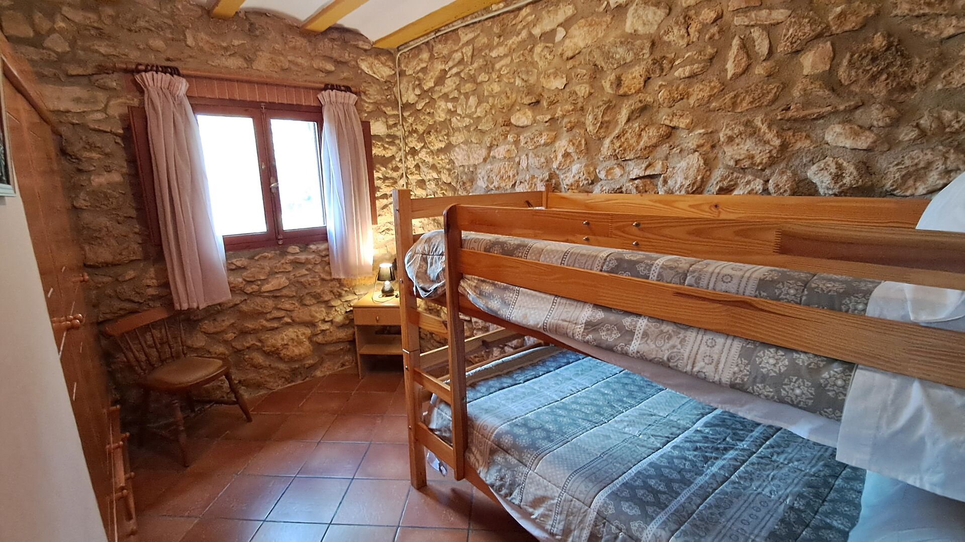 På første sal finder du de tre resterende dobbeltværelser. Et dobbeltværelse har dobbeltseng og to vinduer med en smuk udsigt over vinmarkerne. Det andet dobbeltværelse har en mindre dobbeltseng og endeligt er der et soveværelse med to enkeltsenge. Disse deler et badeværelse.