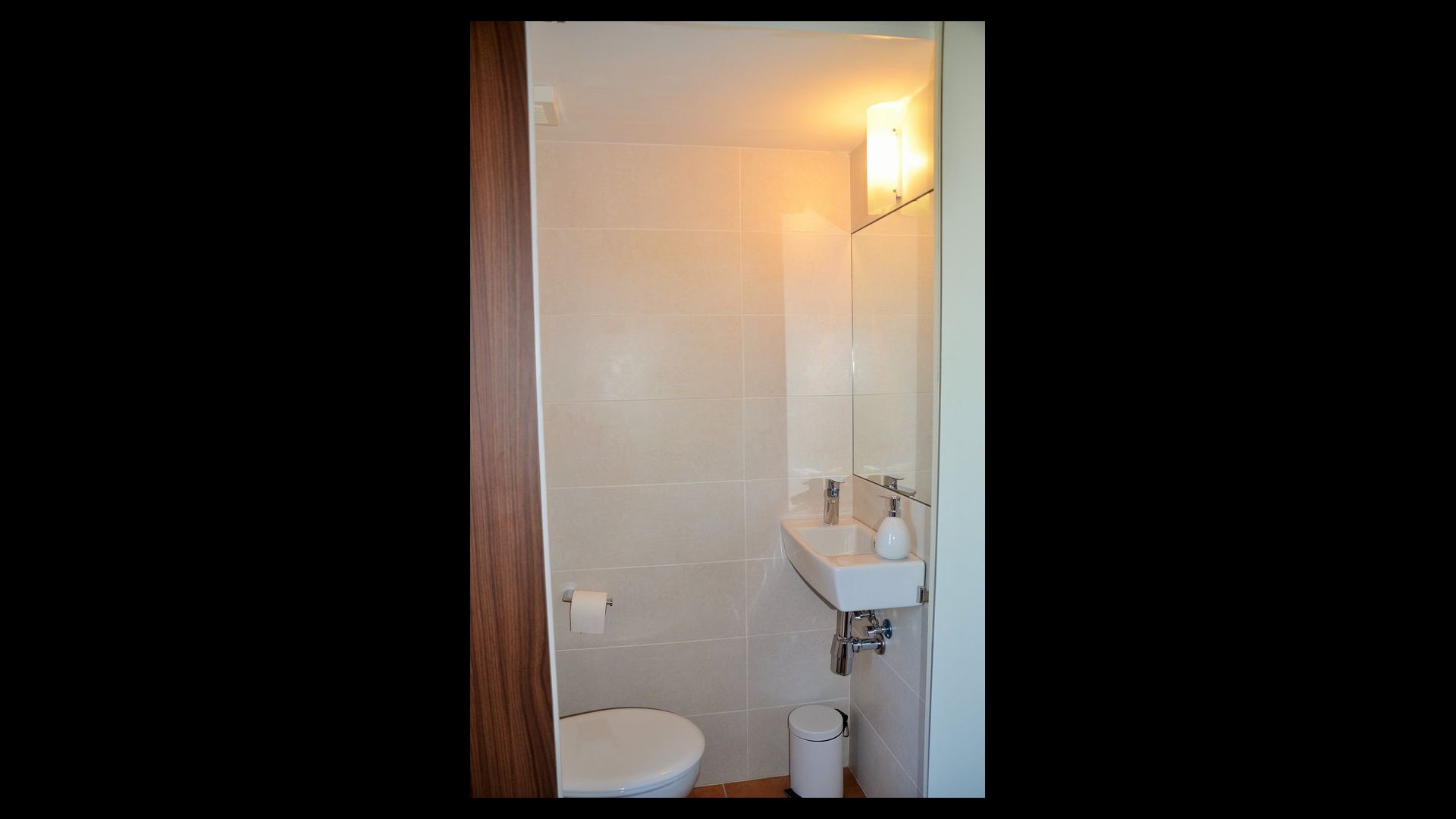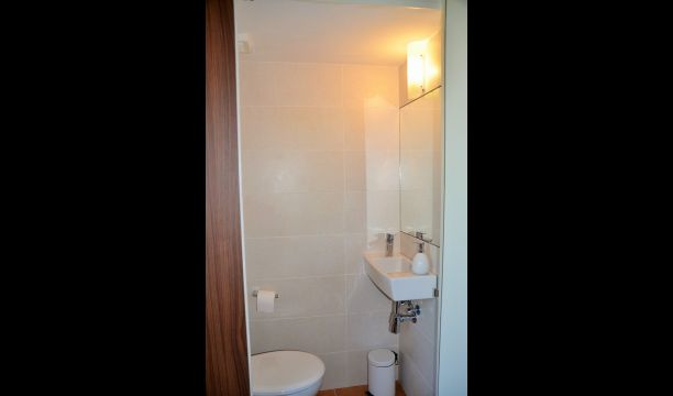 Fællesområdet befinder sig på nederste etage og er delt i to. En del til spisning med et hyggeligt og meget stort, rundt spisebord, og en anden del med en suite stue med forskellige, smukke lænestole og et tv – dette er i forbindelse med det funktionelle og fuldt udstyrede køkken. Der er også to soveværelser og to badeværelser. Derudover er der i underetagen et soveværelse med 3 enkeltsenge, og et dobbeltværelse, som er i forbindelse med en lille udestue.