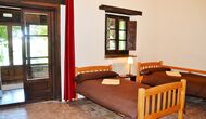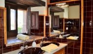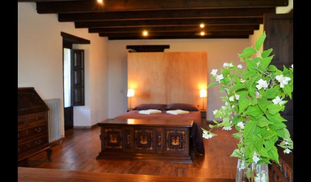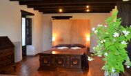 Når man kommer op på første sal, er der til venstre et meget flot soveværelse med dobbeltseng og med nogle meget smukke detaljer samt udsigt over haven. Desuden er der et lille toilet er installeret. Det næste er det største soveværelse, der har en dobbeltseng og to altaner med udsigt til poolområdet og bjergene. Skrivebordet, hvorpå der er skrevet mange bøger, er der stadig som en hyggelige påmindelse om historien huset. Hvis det er nødvendigt, er der nogle ekstra senge, der mod tillæg, kan stilles op her. Dette soveværelse har et en suite badeværelse. Endelig er der det tredje, rummelige dobbeltværelse med badeværelse en suite.