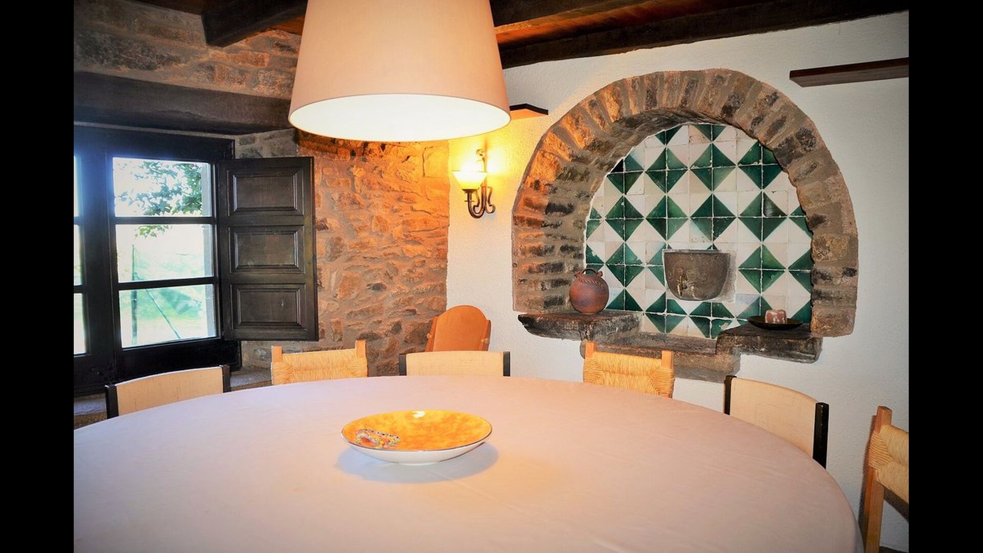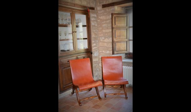 Det er let at forestille sig, hvordan faderen til den nuværende ejer, der var en berømt catalansk forfatter og filosof, fik sin inspiration. Man har under den omhyggelige restaurering af huset bevaret et strejf af dette, hvilket især ses i den hyggelige stue med smukke stole i stueetagen og det meget store soveværelse på første sal, hvor et skrivebord med udsigt over haven og dalen stadig er der.