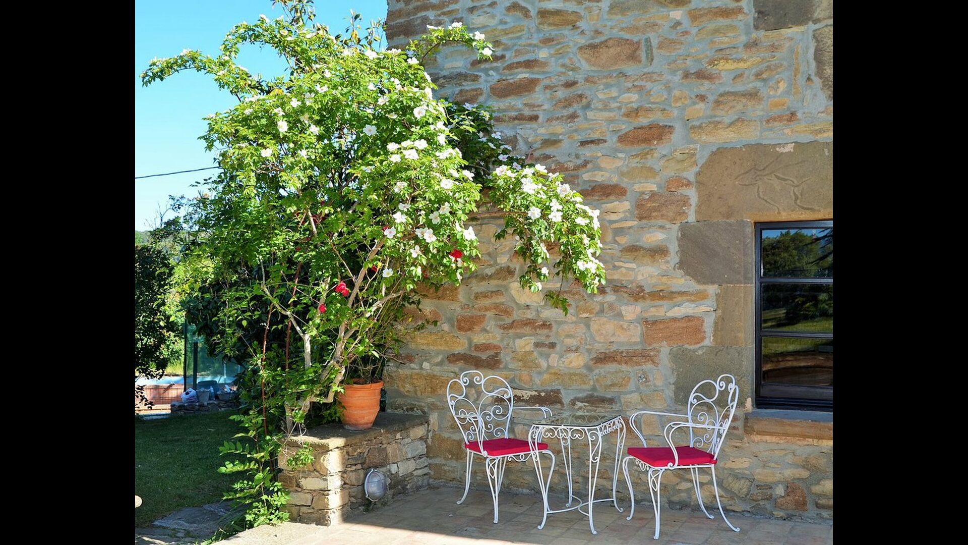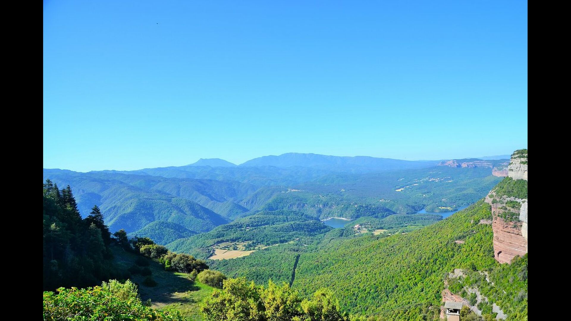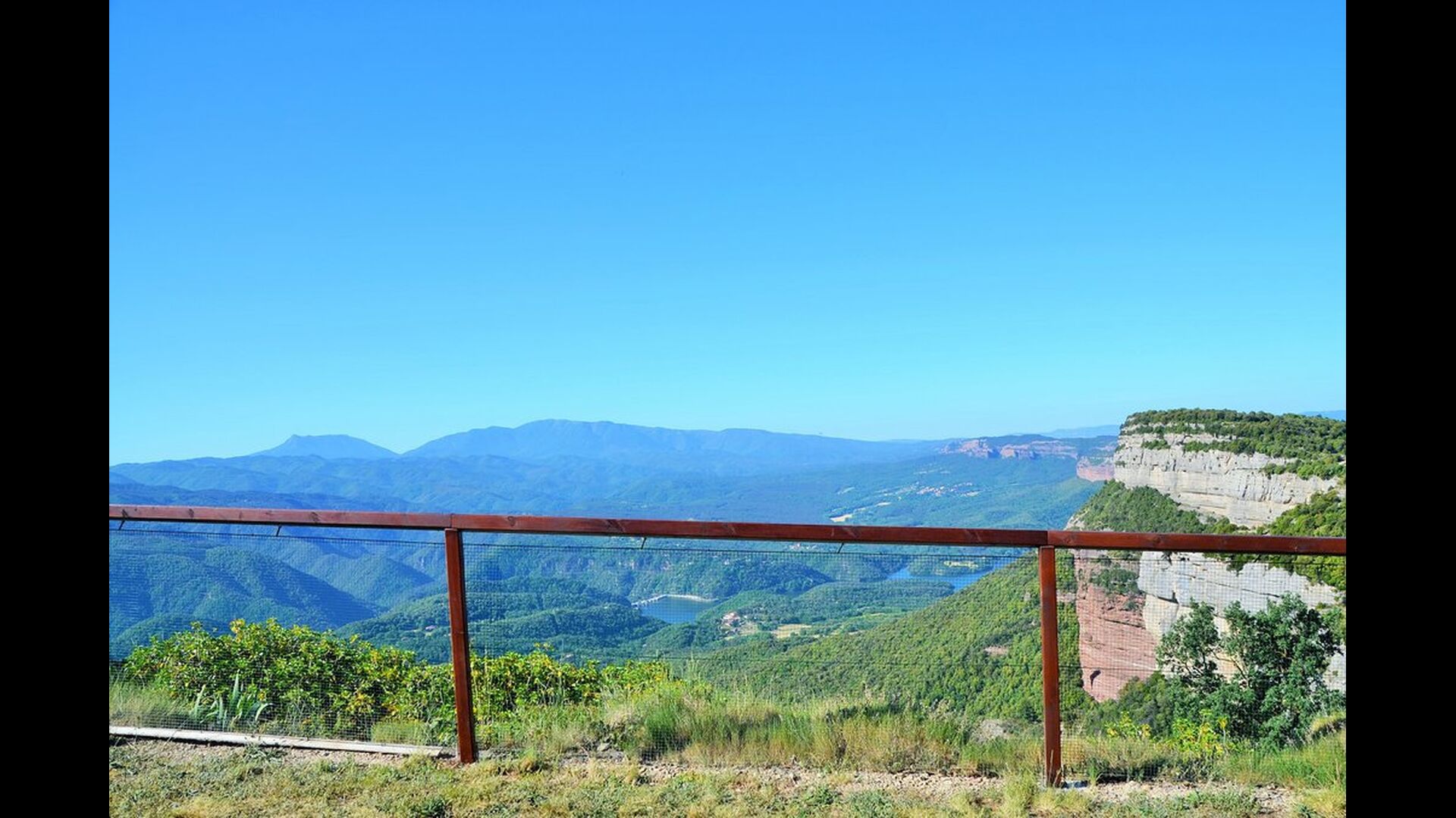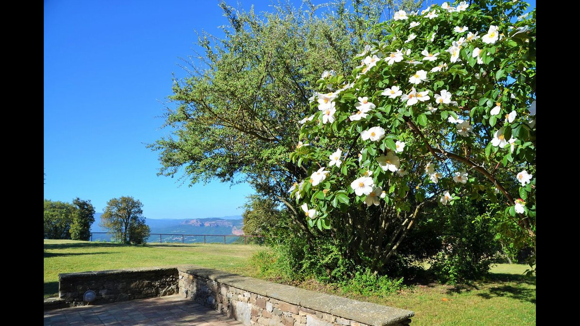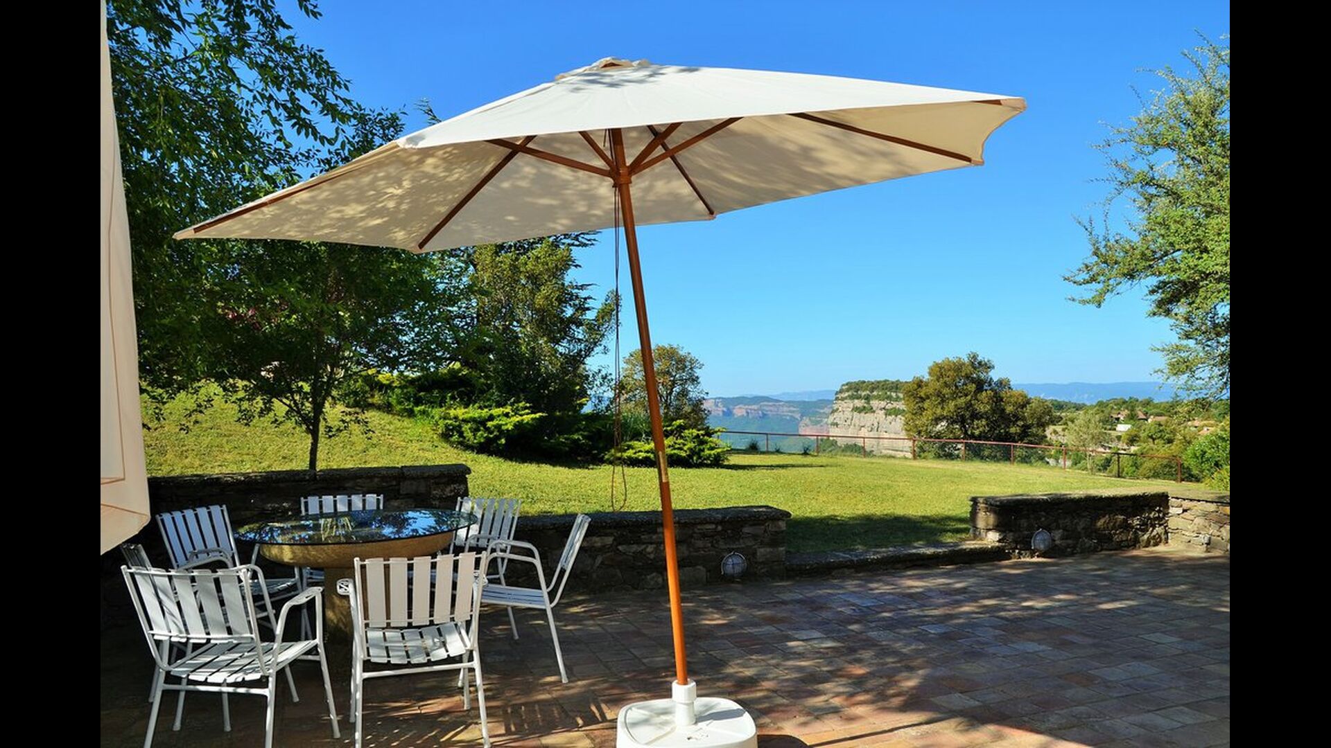 Mas Felér Vista er huset med den smukkeste udsigt, vi nogensinde har set. Ved slutningen af den meget stor græsplæne, er der en utrolig panoramaudsigt over dalen med søen Sau i bunden. Til højre ses landsbyen på toppen af bakken - ligesom som huset. Alt dette er omgivet af et smukt og farverigt bjerglandskab, og hvis du er heldig, kan du se svævende ørne.