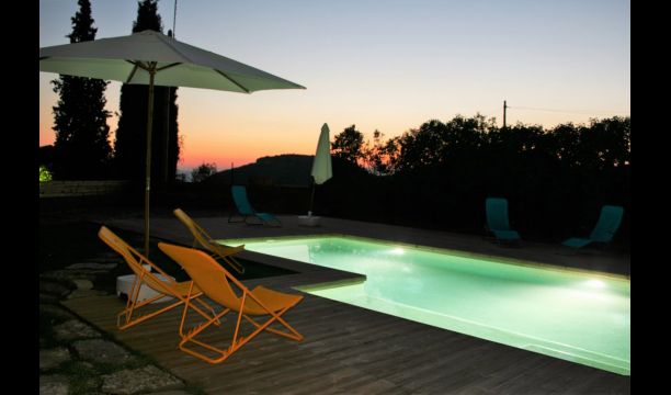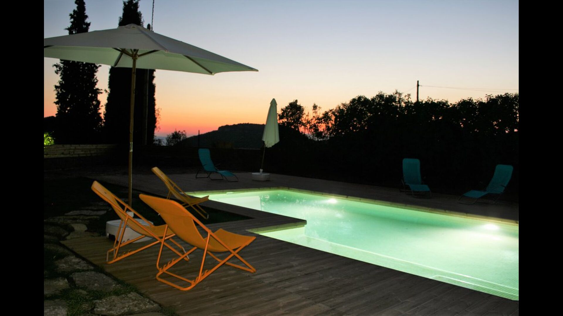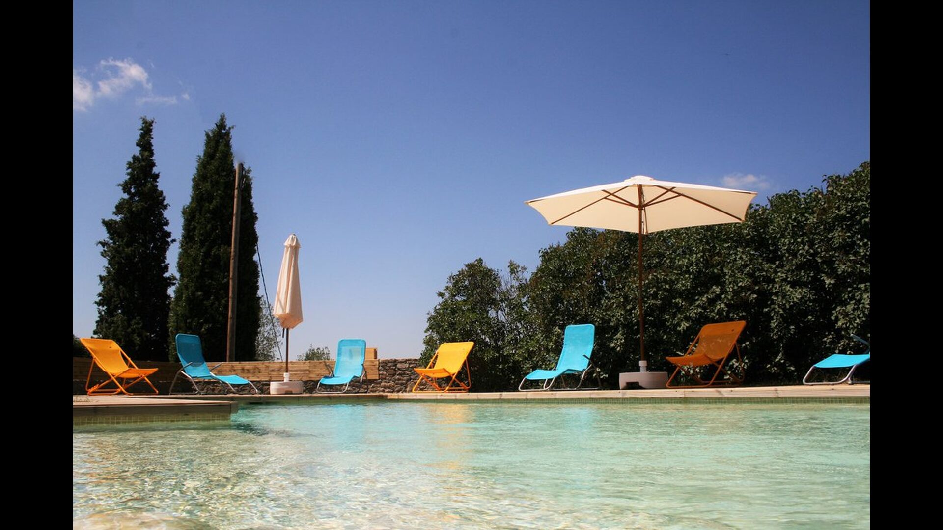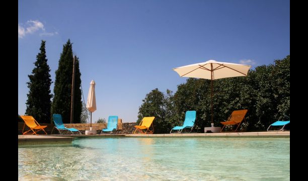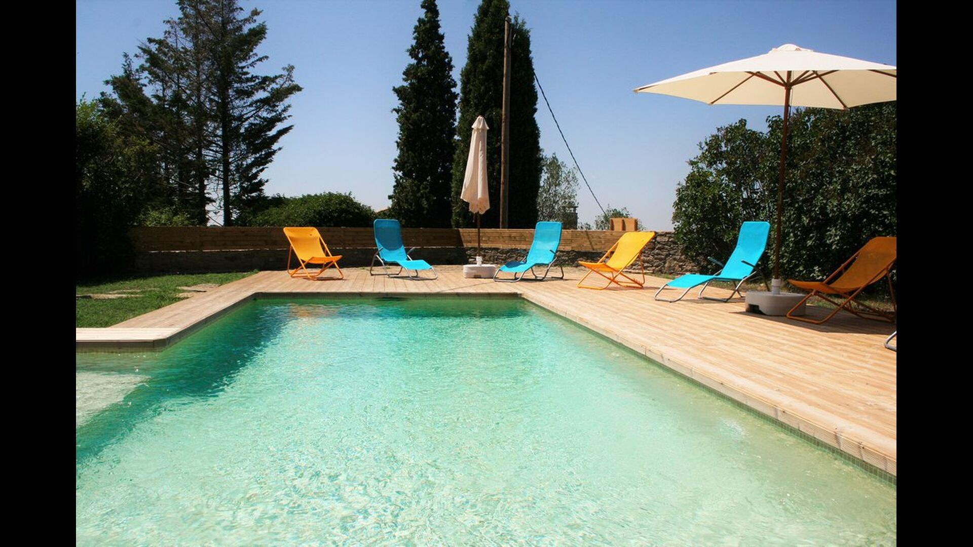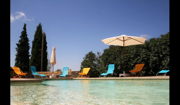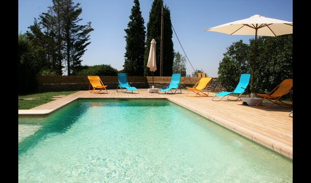 Poolområdet er den perfekte base i den varme, catalanske sommer. Det byder let de små børn velkommen, da der både er en lille trappe og et lavvandet området. Hoveddelen af poolen er 8x4 meter og dermed perfekt til en lille svømmetur. Træterrassen med liggestole er perfekt til solbadning, eller man kan vælge et skyggefuldt hjørne, hvis det bliver for varmt.